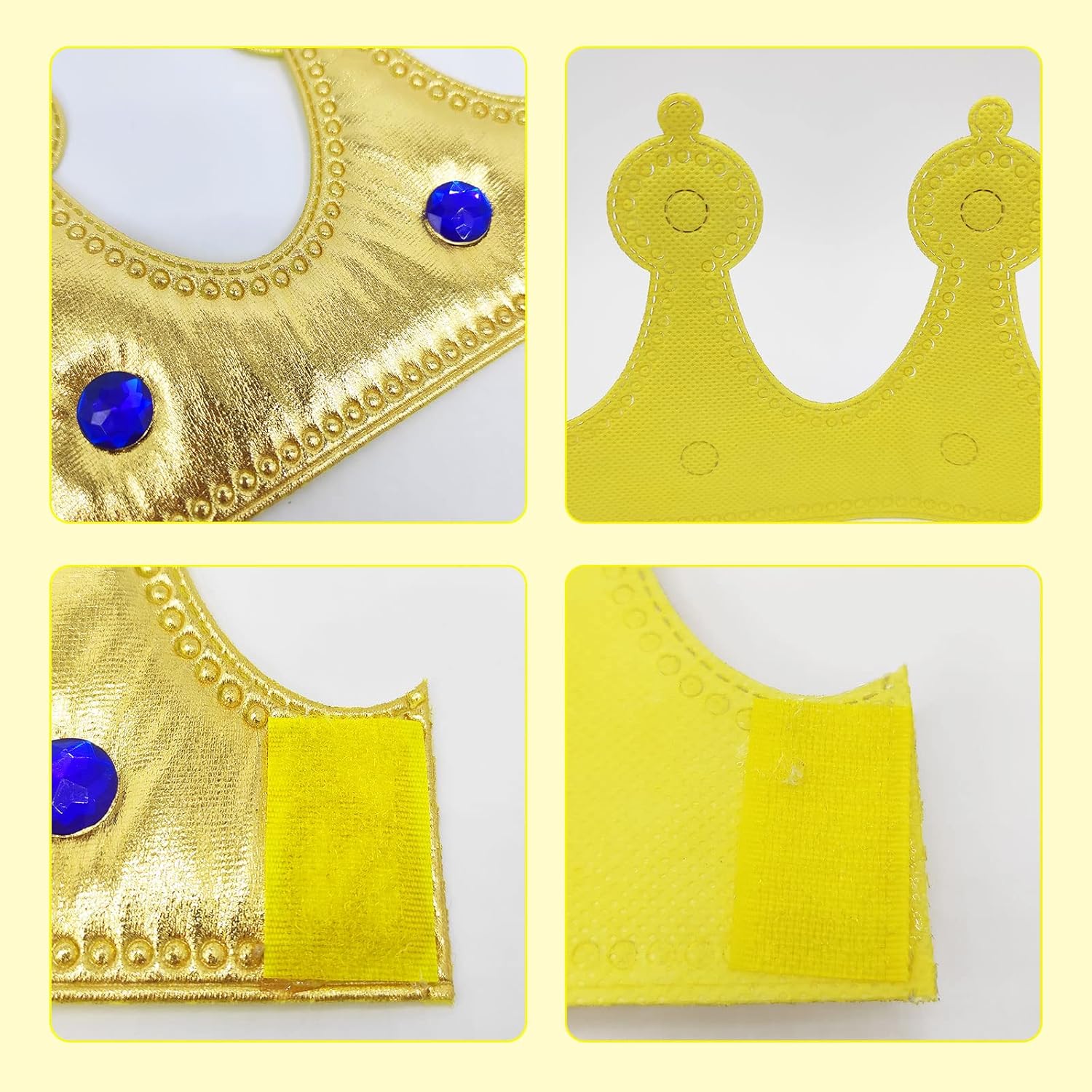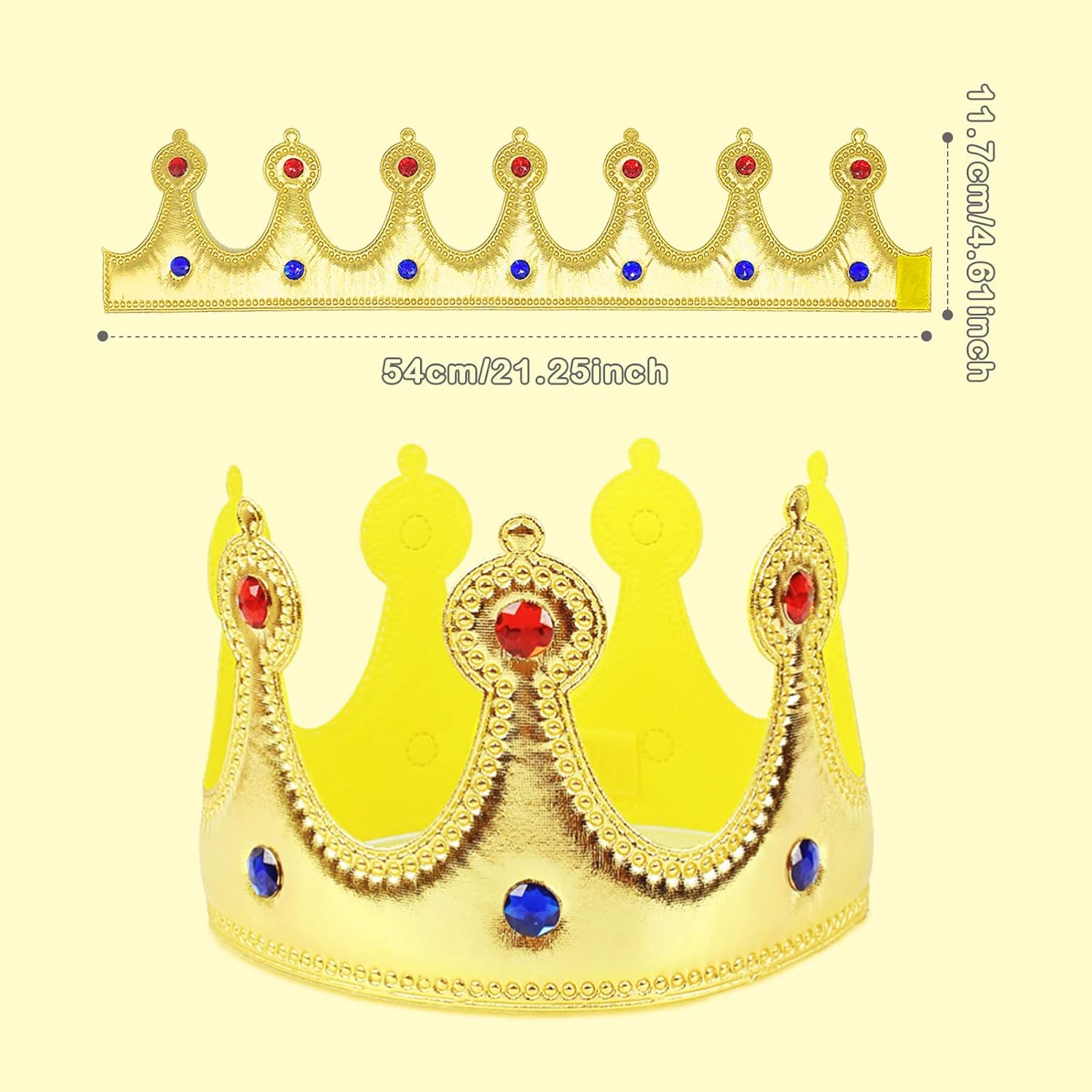 Descrizione: Materiale: Tessuto non tessuto Dimensioni: 21.26 x 4.61 pollici/54 x 11.7 cm Colore: oro Il pacchetto include: 2 x corone Nota: 1. A causa della differenza di luce e schermo, il colore dell'articolopuò essere leggermente diverso dall'immagine. 2. A causa della misurazione manuale, si prega di consentire unadifferenza di 1-2 cm.