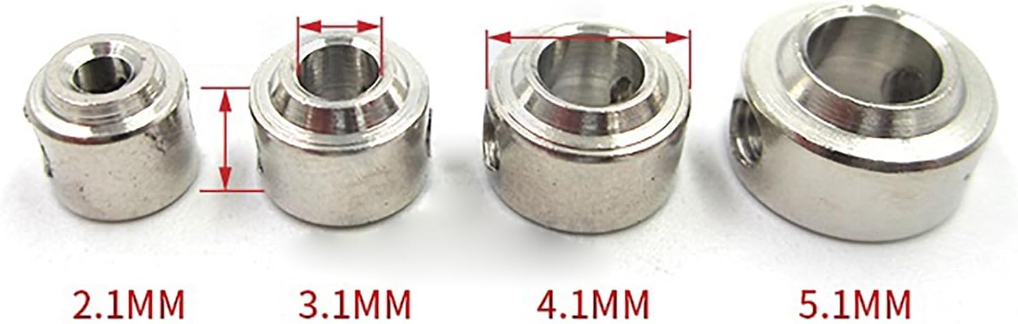 Disponibile nei diametri interni di 2,1 mm, 3,1 mm, 4,1 mm e 5,1 mm. Include vite di fissaggio M3, altezza 5,5 mm e diametri esterni variabili (6,0–10,0 mm). Blocca le ruote in modo sicuro for evitare disallineamenti o distacchi. Adatto for cavi in acciaio, assi e sistemi di carrelli di atterraggio. Garantisce una rotazione regolare e un funzionamento stabile.