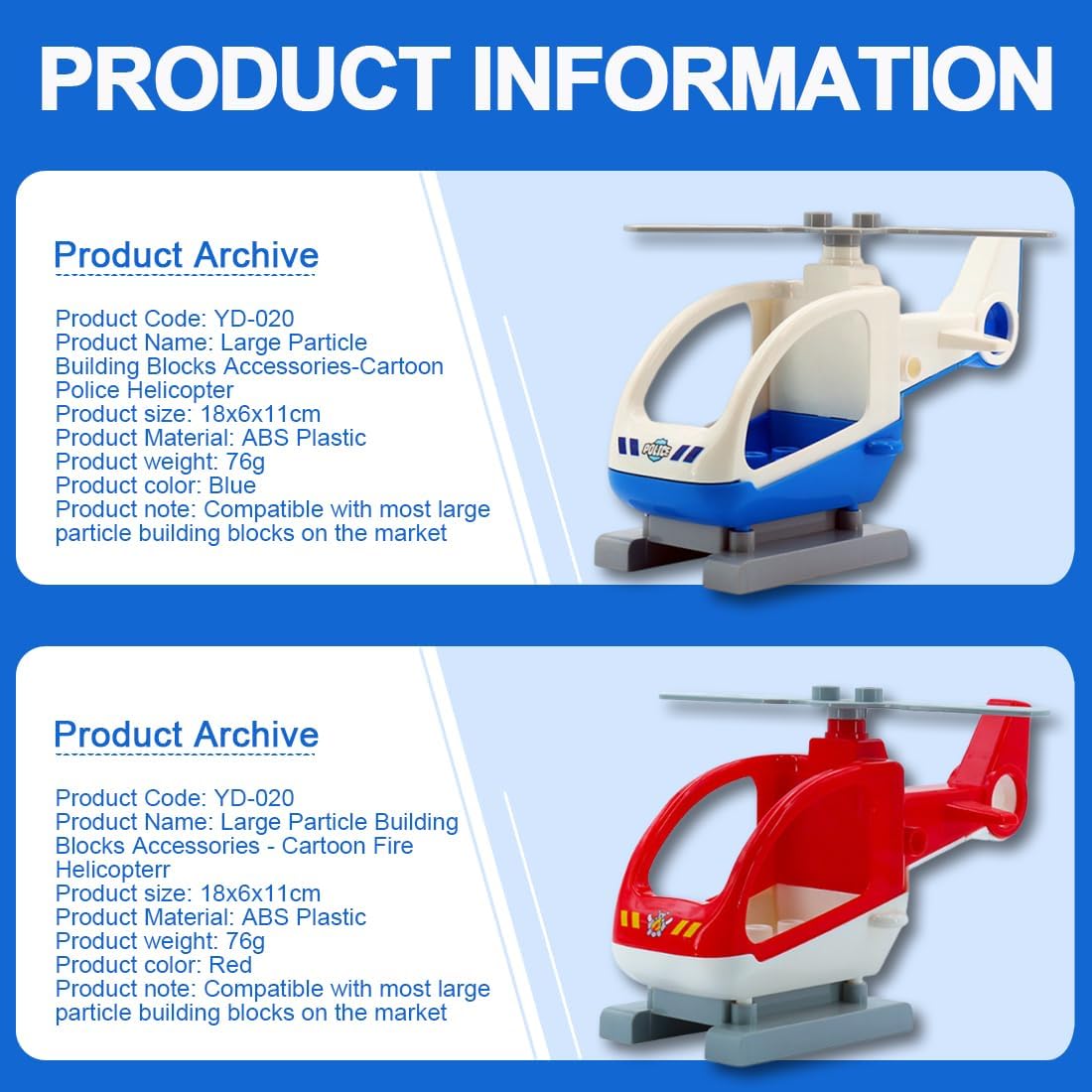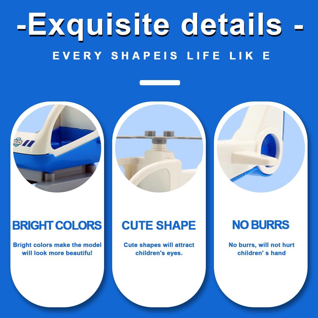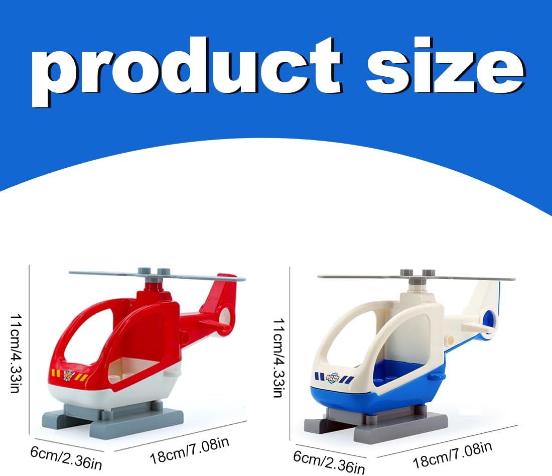 Accessori per mattoncini di grandi dimensioni: il set di 2 aeroplani giocattolo include un aeroplano blu acqua e un elicottero dei pompieri, adatti a vari scenari come città, basi aeree e natura. I mattoncini grandi sono perfetti per i bambini e stimolano il gioco creativo. Materiali di alta qualità: i componenti dei mattoncini sono realizzati in robusto plastica ABS, senza spigoli vivi, e possono essere puliti semplicemente con un panno umido, garantendo ai vostri bambini condizioni igieniche, pulite e sicure per giocare e imparare. Compatibilità con il marchio: questo giocattolo componibile può essere combinato perfettamente con altri mattoncini per creare scenari diversi. Ogni aereo è abbastanza grande da contenere il modellino. Il rotore e le ruote rotanti simulano un movimento di volo realistico. Assemblaggio rapido: il set di mattoncini per veicoli è perfetto per le mani dei più piccoli ed è composto da componenti semplici e facili da assemblare, come ruote, base, carrozzeria e accessori, che aumentano il senso di soddisfazione. Questo gioco è divertente e adatto a bambini e bambine dai 4 anni in su. Regalo ideale: questo set multiplo è un'ottima aggiunta alla collezione di giocattoli per bambini per le festività o le occasioni speciali. È un regalo perfetto che offrirà ai bambini un divertimento infinito e giocattoli di trasporto creativi da assemblare.