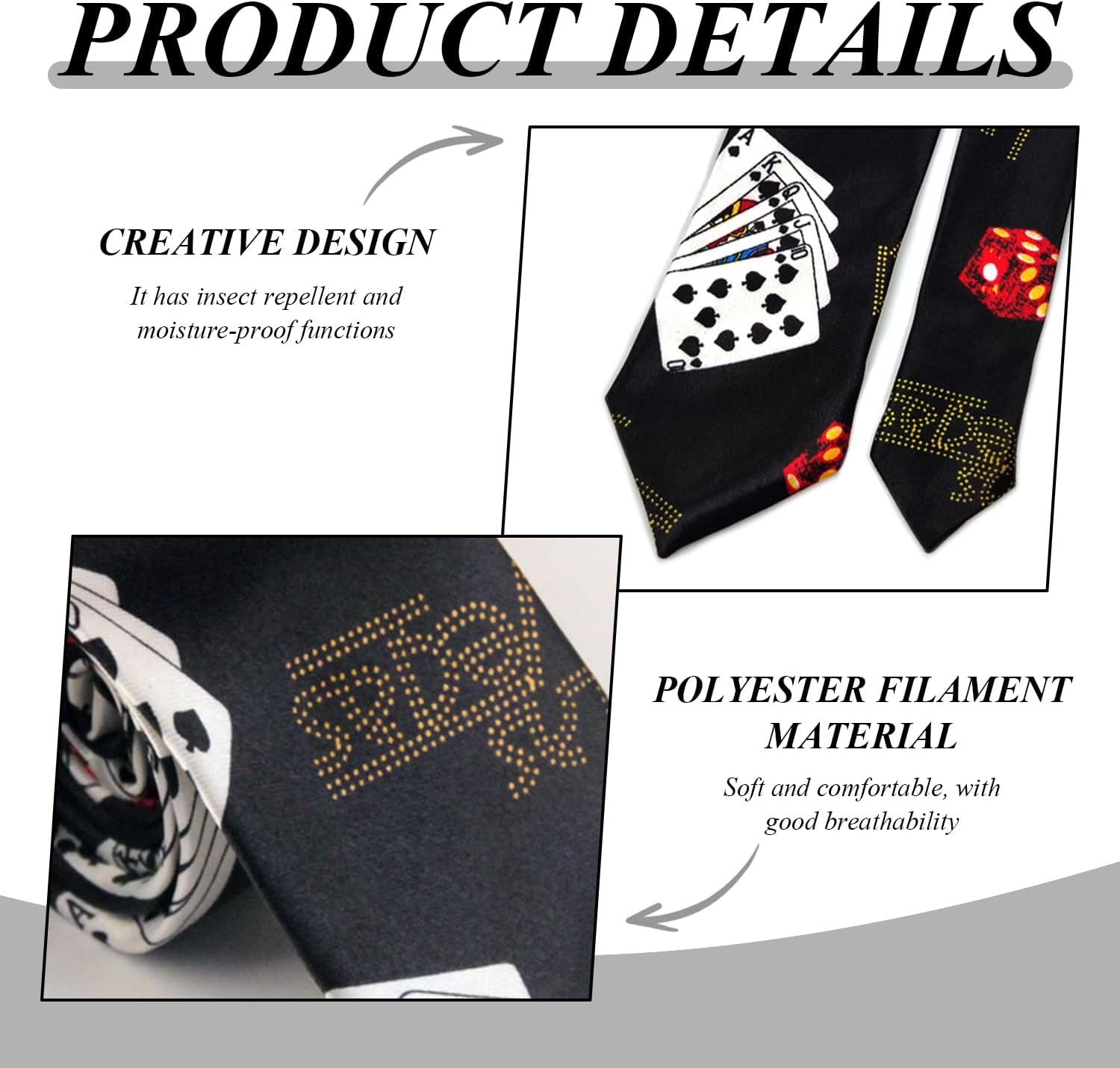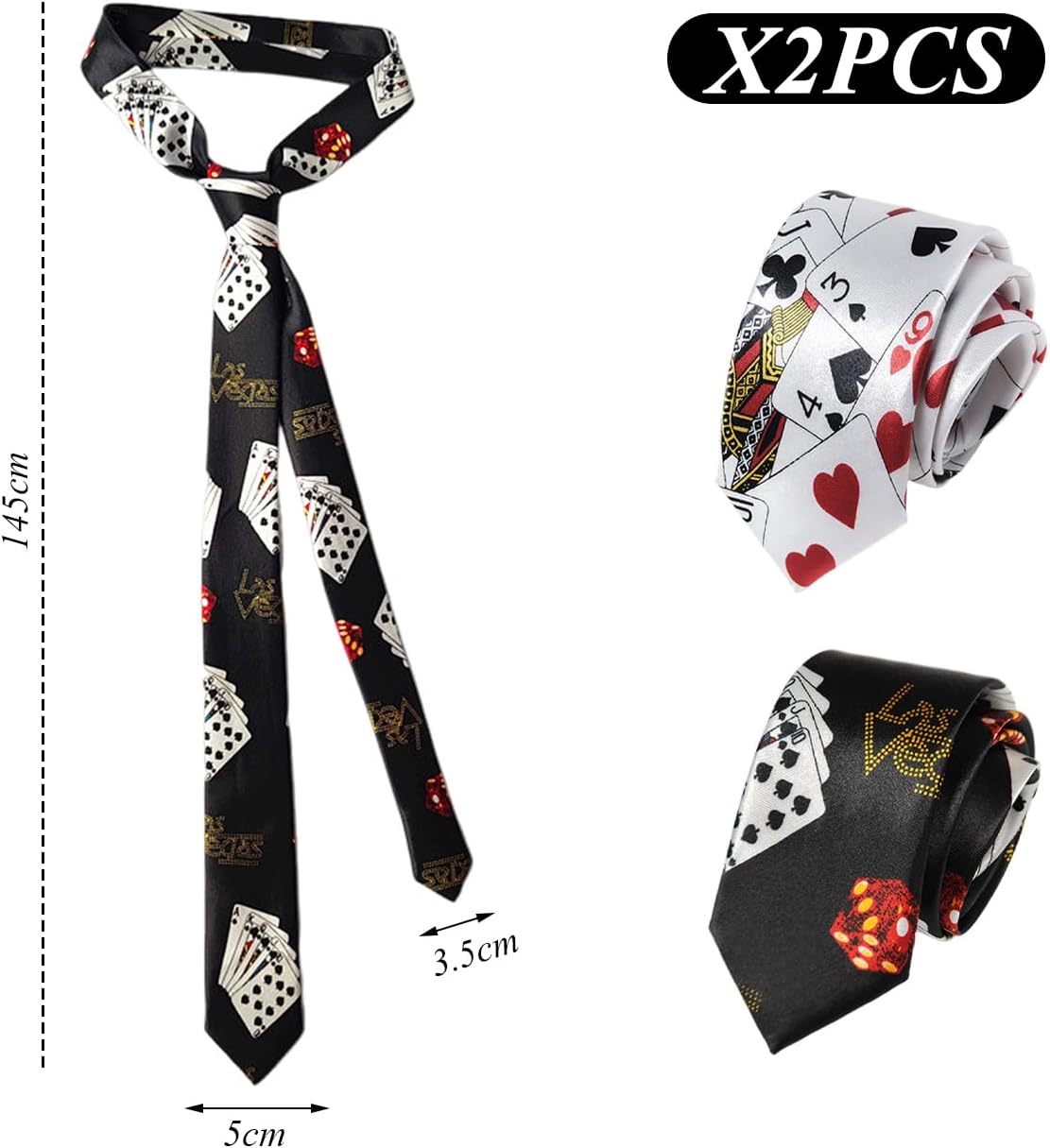 【Contenuto Del Prodotto】 Riceverai 2 Cravatte Da Gioco. Ogni Cravatta Misura 145*5 Cm Di Colore Ed È In Bianco E Nero, Adatto Per Il Gioco Di Ruolo, Feste O Usura Quotidiana. 【Materiale Del Prodotto】 Questo Prodotto È Realizzato In Seta Poliestere, Morbida E Confortevole, Traspirante, Resistente E Di Facile Cura. Il Materiale Del Filo In Poliestere Dà Alla Cravatta Una Buona Lucentezza E Un Drappeggio E Non È Facile Da Raggruppare. 【Design Creativo】 La Cravatta È Fatta Di Carte Da Gioco E Ha Motivi E Colori Unici, Che È Molto Accattivante. Che Sia Usato Per Il Gioco Di Ruolo O Come Accessorio Di Moda, Aggiunge Personalità E Divertimento Al Tuo Look. 【Uso Multifunzionale】 Questo Prodotto Non È Solo Adatto Come Accessorio Di Ruolo, Ma Anche Molto Adatto Per Feste, Eventi E Abbigliamento Quotidiano. In Coppia Con Camicie O Altri Abbigliamento, Può Mostrare Un Senso Di Moda Unico. 【Facile Da Mantenere】 Questo Prodotto È Facile Da Pulire E Mantenere E Può Essere Lavato A Mano O Lavare La Macchina, Mantenendo I Colori E I Motivi Originali Dopo La Pulizia. Il Materiale Del Filo In Poliestere Rende Meno Probabile Rughe E Può Essere Facilmente Organizzato Dopo L'Uso.