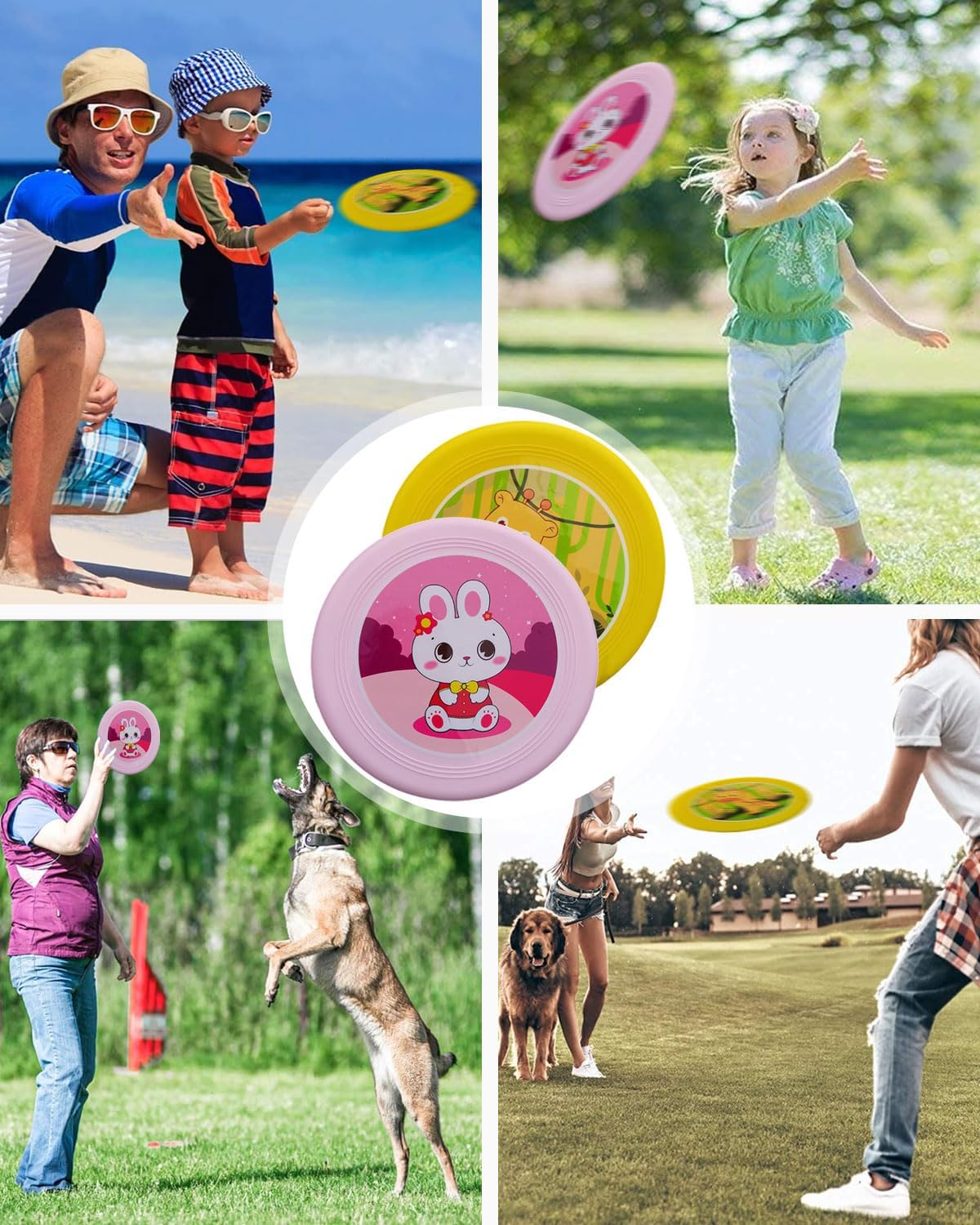 Progettato per i bambini: il disco volante colorato fatto a mano con simpatici motivi a cartoni animati di giraffa e piccolo coniglio bianco è appositamente progettato per i bambini, con lavorazione pregiata e senza sbavature, che non graffierà le mani dei bambini Materiali ecocompatibili: realizzati in PU/poliuretano ecologico, atossico, pieghevole, resistente all'usura e morbido Dimensioni/peso: 20 cm di diametro, 2 cm di spessore/65 g. Giocattolo portatile per bambini, adatto per gli sport all'aria aperta, ideale per i giochi all'aperto tra genitori e figli. Nota: è normale che un prodotto nuovo abbia un leggero odore. Si prega di posizionare il frisbee in un luogo ventilato e l'odore scomparirà gradualmente. Inoltre, questo frisbee è adatto solo per bambini, non per cani o altri animali. Garanzia e servizio clienti: tutti i nostri prodotti sono sottoposti a rigorosi controlli di qualità. In caso di problemi di qualità o insoddisfazione, non esitate a contattarci. Vi forniremo la soluzione migliore.