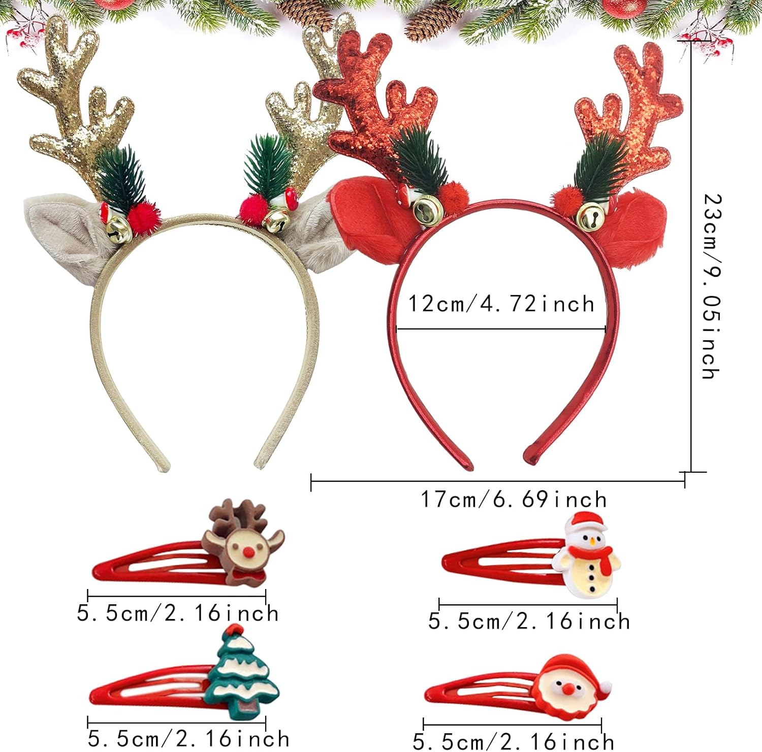Descrizione del prodotto Fascia per capelli natalizia, fascia per capelli natalizia, fascia per capelli natalizia, fascia per capelli con alci, accessori per capelli per feste di Natale, cosplay, decorazioni natalizie, accessori natalizi, accessori natalizi, fascia per capelli con corna di renna, accessori natalizi per bambini e adulti, fasce per capelli per feste di Natale Caratteristiche: 1. Fascia per capelli con corna di Natale adatta a tutte le dimensioni della testa (normale), ideale per bambini e adulti. 2. Elementi natalizi come corna di renna ramificate, aghi di pino, campanelli, ecc. 3. Nuovi regali per la festa di Natale, accessorio essenziale per le feste festive 4. Molto adatto per accessori per capelli per feste come Natale, feste in maschera, giochi di ruolo, spettacoli, carnevale o altre occasioni. Decora gioielli per capelli per creare facilmente un'atmosfera natalizia. 5. Le bellissime fasce natalizie sono regali di Natale ideali per bambini, amici e familiari. Specifiche: Nome del prodotto: fascia natalizia. Dimensioni: vedi foto. Colore: rosso e oro. Quantità: 6 pezzi (2 fasce e 4 forcine). Confezione: 1 anello per il pene. 2 fasce natalizie. 4 forcine natalizie. Avviso di sicurezza n