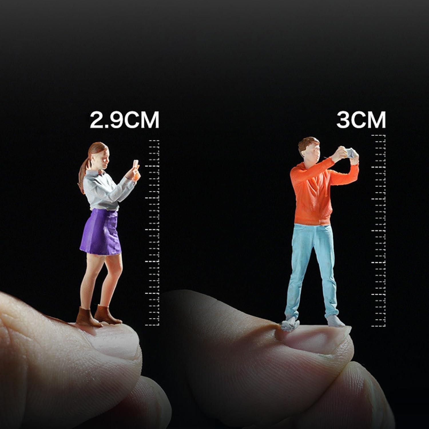 Precisa compatibilità in scala 1:64: progettata specificamente per diorami e display in scala 1/64, garantendo una corretta proporzione con modellini di veicoli, edifici ed elementi paesaggistici Struttura in resina dipinta a mano: realizzata in resina resistente con dettagli dipinti a mano meticolosi che catturano caratteristiche realistiche del viso e texture dell'abbigliamento Applicazioni versatili da esposizione: ideale per modelli di treni, espositori architettonici, scene di case delle bambole, progetti fotografici e decorazioni per la scrivania Proporzioni realistiche: la figura femminile misura 2,9 cm di altezza, la figura maschile misura 3 cm di altezza, fornendo un'autentica rappresentazione in scala per scene dettagliate Il set completo include: la confezione contiene una figura maschile e una figura femminile, offrendo un abbinamento equilibrato per vari diorama e scenari di visualizzazione