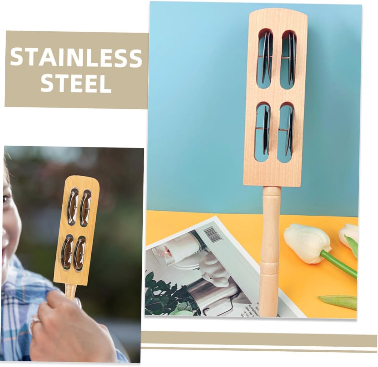 Hand Jingle Bell - Con una vasta gamma di toni musicali, questo strumento offre opportunità di espressione creativa ed esplorazione musicale, Strumenti musicali Strumento musicale per - Questo strumento aiuta anche i bambini a migliorare la coordinazione occhio-mano, Piccole campanelle a mano Giocattoli musicali per bambini in età prescolare - Uno strumento versatile che può essere utilizzato per scuotere o picchiettare e produce un suono chiaro e piacevole, Jingle Bell Instruments Strumenti musicali per bambini piccoli - Questo strumento Progettato per migliorare le abilità musicali e migliorare la coordinazione occhio-mano Strumento musicale per - Realizzato in legno e acciaio inossidabile, questo strumento è durevole e un strumento a percussione per