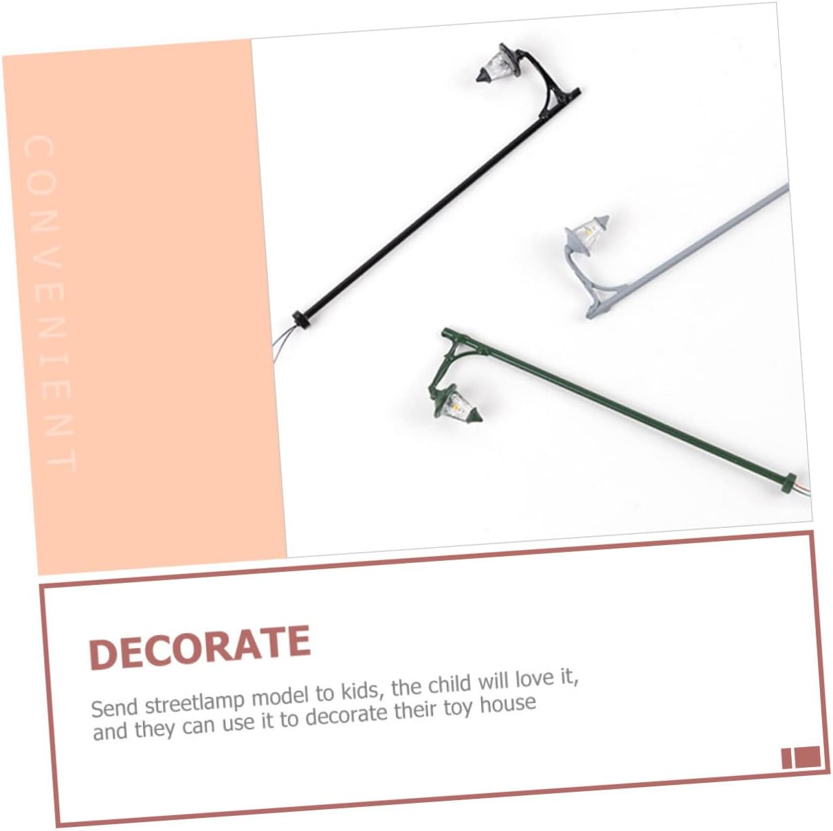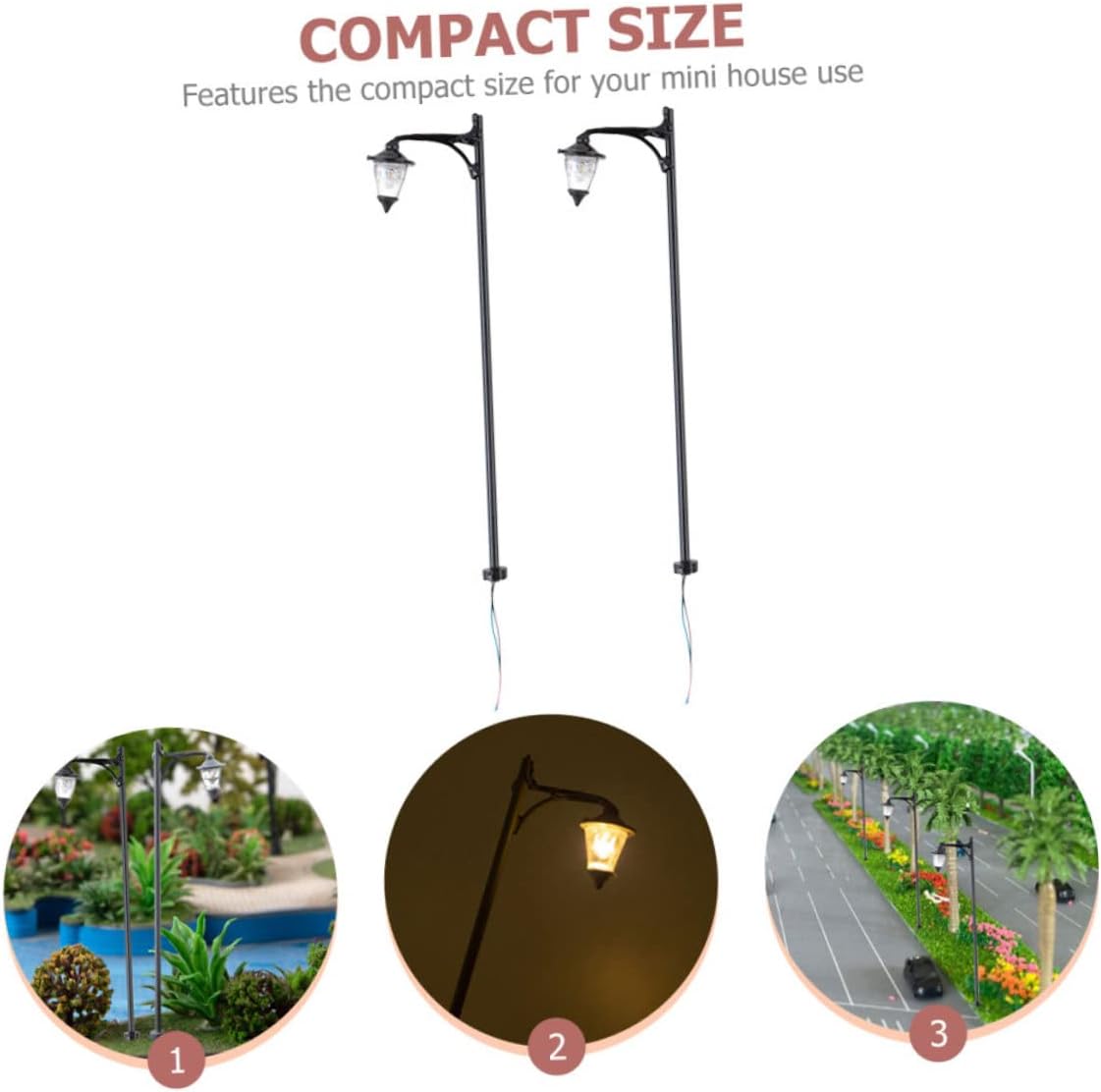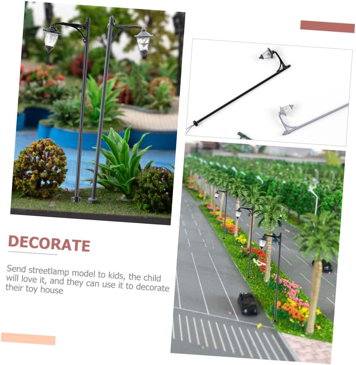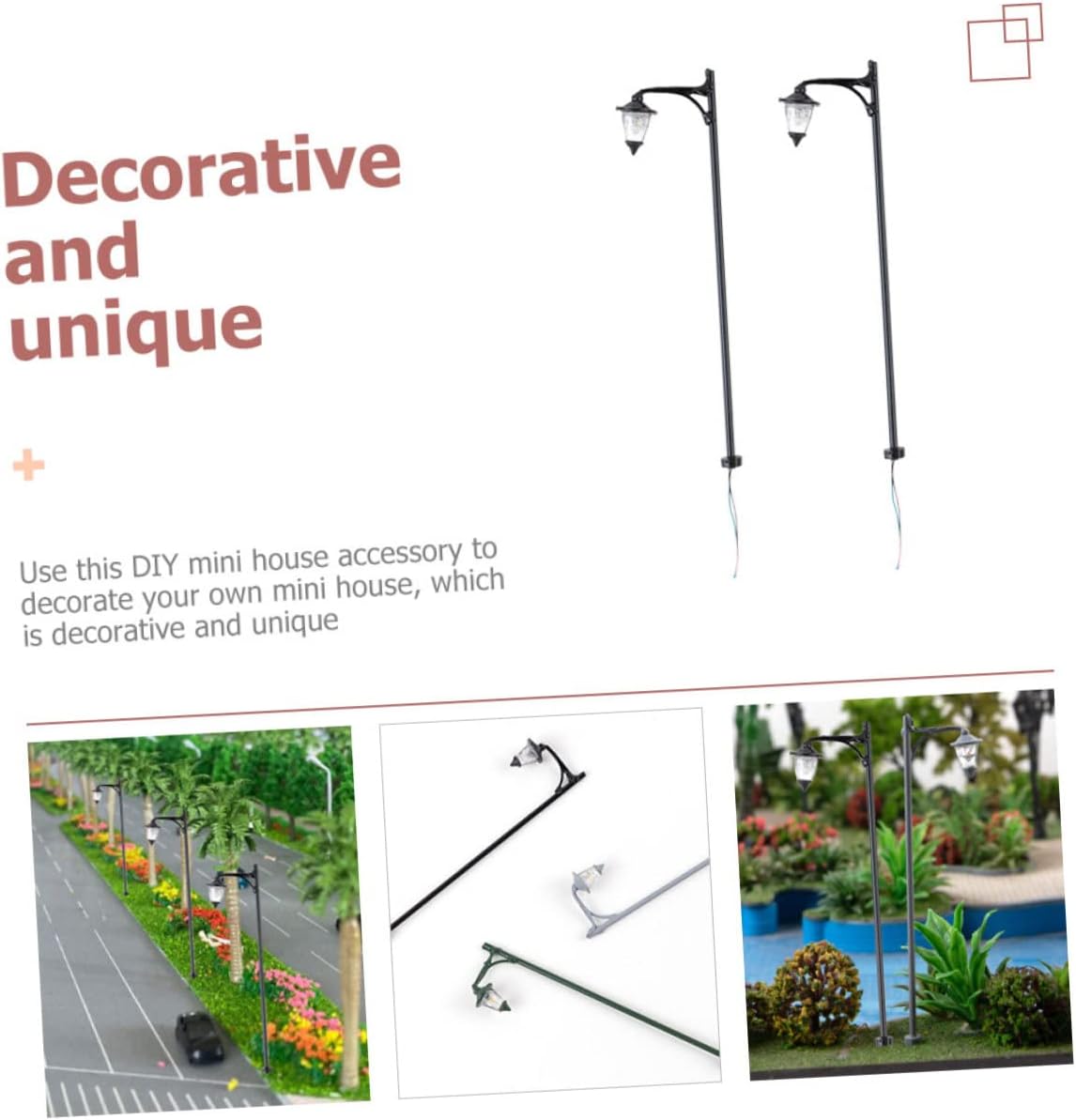 Decorazione da giardino: generalmente utilizzata per la decorazione di scene, per aumentare l'effetto del livello della scena del tavolo di sabbia, decorazione del modello della lampada Mini statua di lampada: modelli di lampioni con design unico e realistico, la tua mini casa sembra più calda e alla moda, decorazione paesaggistica Modello di lampada da giardino: questo mini modello di lampione può essere l'ornamento decorativo per il modello di interni della tua mini casa, ornamento in miniatura Mini modello di lampione stradale: sono abbastanza resistenti, non si deformano o si rompono facilmente e possono durare a lungo, modello di lampione stradale Decorazione per la camera da letto: invia un modello di lampione ai , i lo adoreranno e potranno usarlo per decorare la loro casa dei giocattoli, decorazioni in miniatura