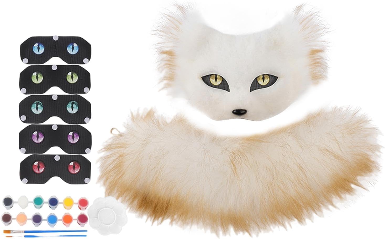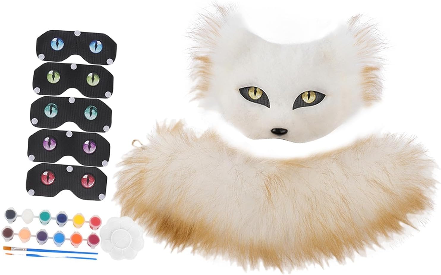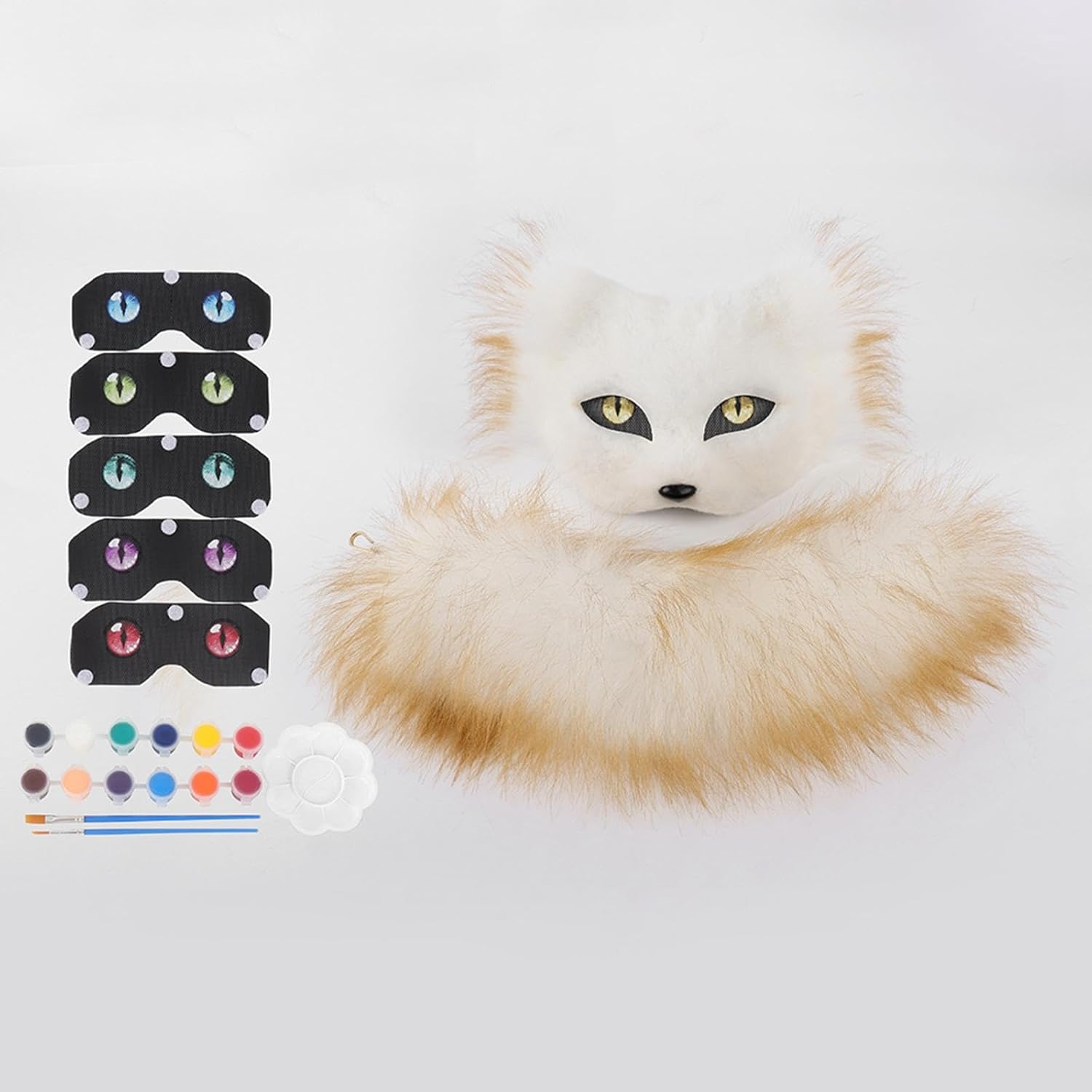 2 Pezzi Maschera Da Kit Accessori con Coda in Pelliccia Sintetica Mascherina per Dipingere Il Proprio Stile Adatto per Donne E Ragazze