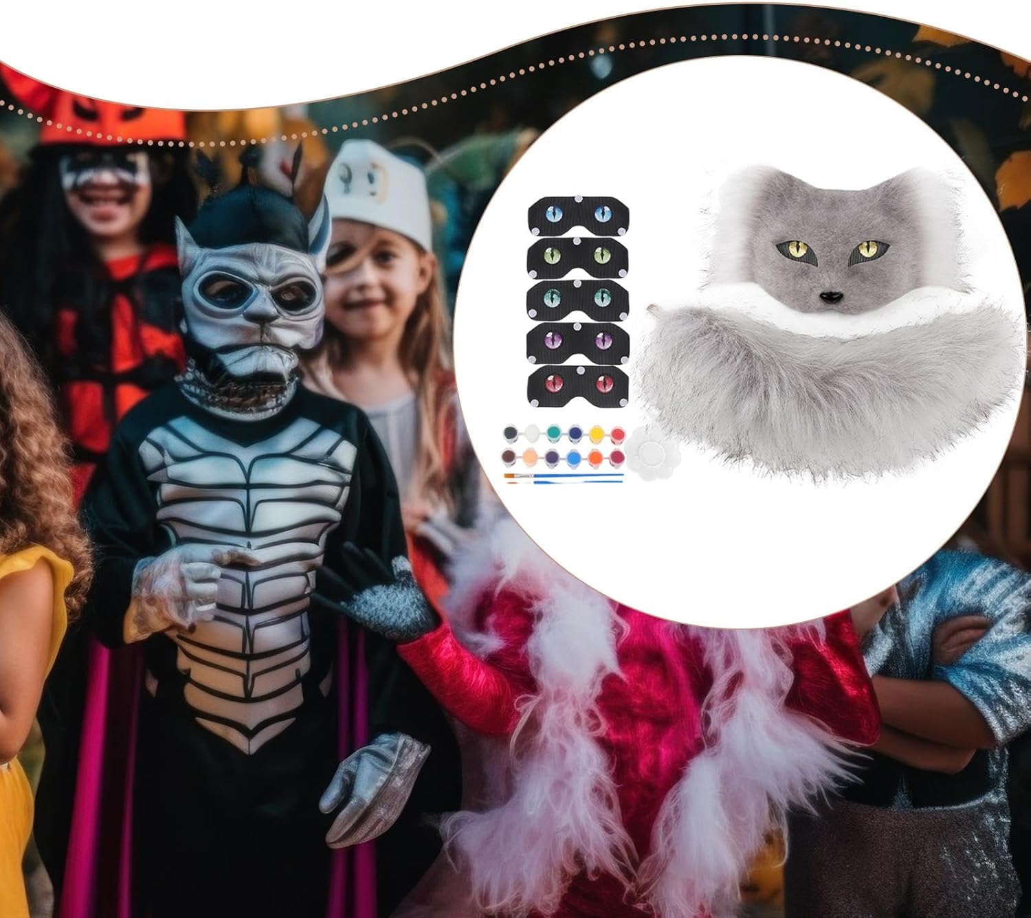 Descrizione prodotto Descrizione: - 【Set per giochi di ruolo】: questa mezza maschera include una tavolozza di colori e pennelli, che ti consentono di creare il tuo personaggio . - 【Materiale】: la maschera e la coda di finta sono realizzate in poliestere finemente rifinito per un tocco confortevole e una lunga durata. - 【Accessorio realistico a forma di coda di animale】: completa il tuo costume con la coda di peluche abbinata. Aggiunge un tocco e morbido al tuo look. - 【Versatile per ogni occasione】: Accessori Therian in peluche finto per Halloween, convention di cosplay, balli in maschera, feste a tema, che lo rendono un'aggiunta multiuso alla tua collezione di travestimenti - 【Regalo】: il set cosplay Tail è un regalo ideale per la famia, amici per il compleanno, le vacanze Tabella di formato: - 27 cm x 19 cm x 10 cm/10,63 pollici x 7,48 pollici x 3,94 pollici Il pacchetto Include: 1 Maschera 1 ciondolo a forma di coda Nota: Si prega di considerare lievi errori dovuti alla misurazione manuale diversi . Avviso di sicurezza no