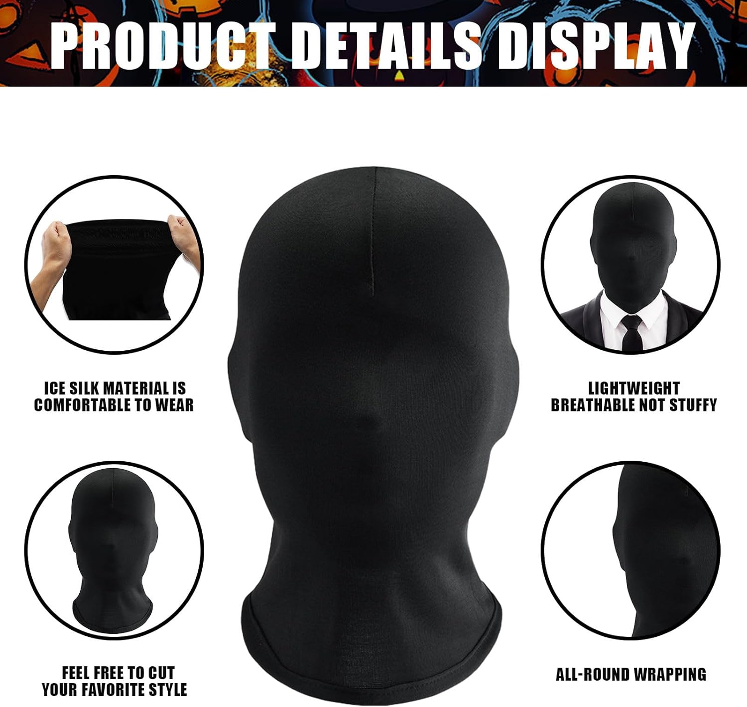 2 mascherine integrali in spandex, colore nero, per Halloween