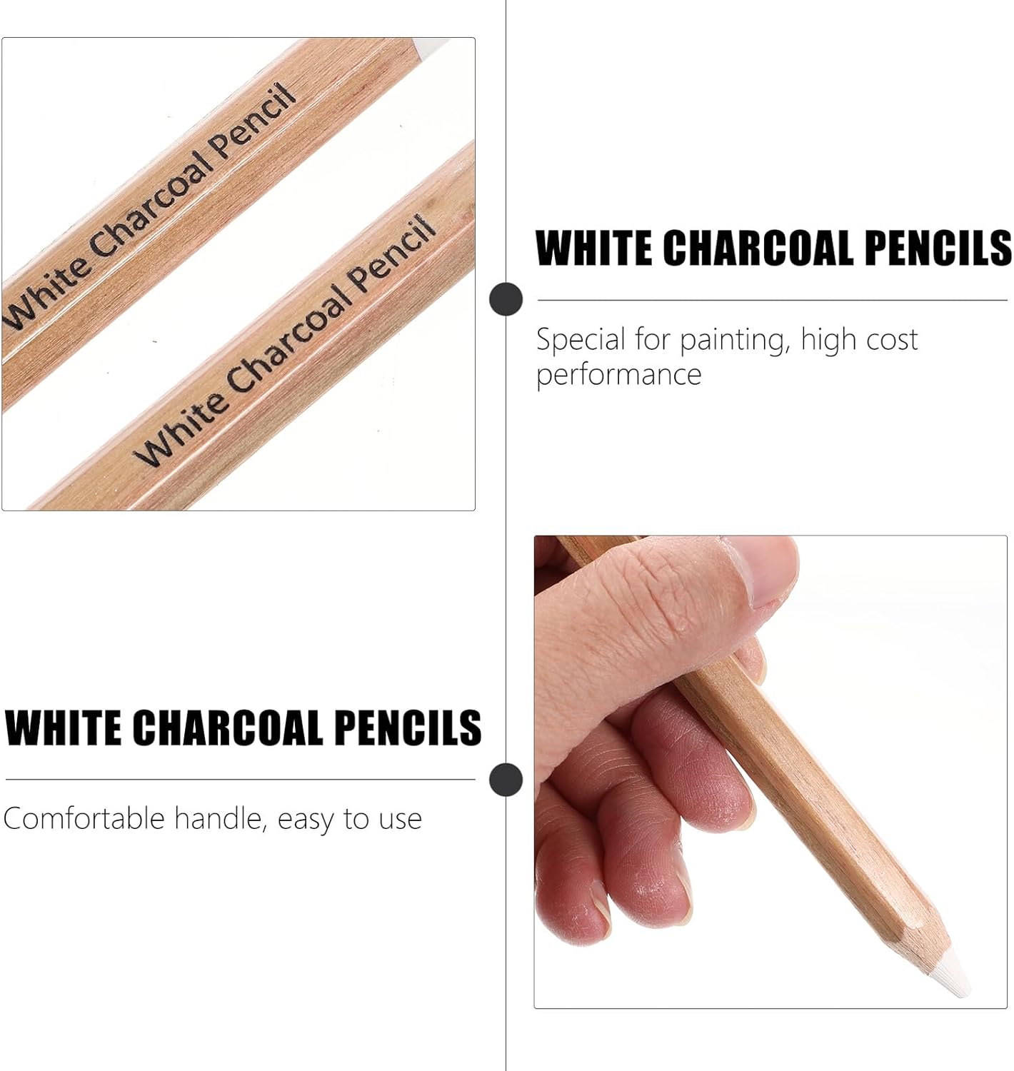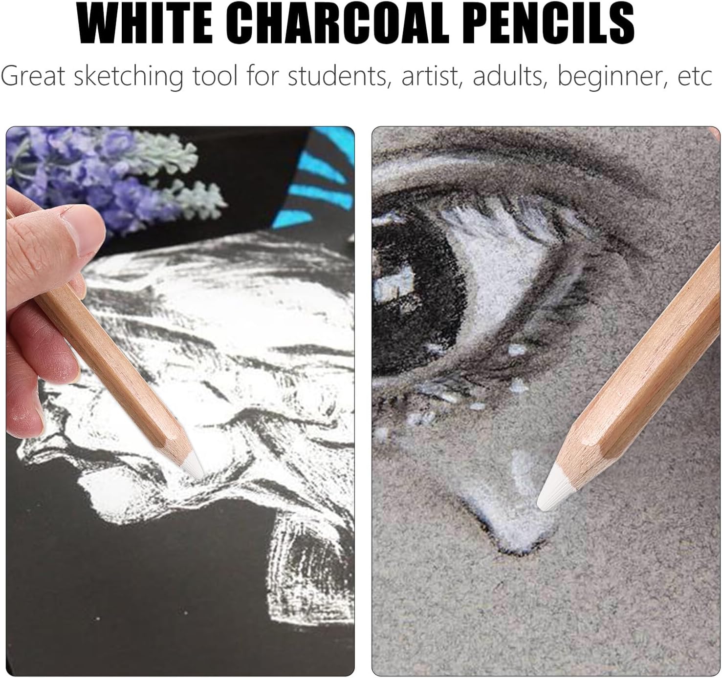 Matite di carbone bianche per disegno: le matite di carbone bianche per schizzi possono essere utilizzate per migliorare la luminosità, creare effetti di luce e ombra, modellare la luminosità locale, agganciare linee, illuminare, aggiungere punti luce, ma funzione di copertura, matite di carbone morbide Matite di carbone: adatte per illustrazioni, diari, disegni fotorealistici, schizzi, sfumature, ombreggiature, sbavature e aggiunta di texture, matita di carbone Matita da disegno: ottimo strumento per schizzi per studenti, artisti, adulti, principianti, ecc., matite di carbone per artisti Matita da disegno: le matite bianche sono un'aggiunta essenziale alla tua collezione, matite bianche a carboncino Matite da disegno a carboncino: la pittura a carboncino per schizzi deve avere questa matita, può dare un forte contrasto al dipinto, evidenziare i punti salienti, matite da disegno a carboncino