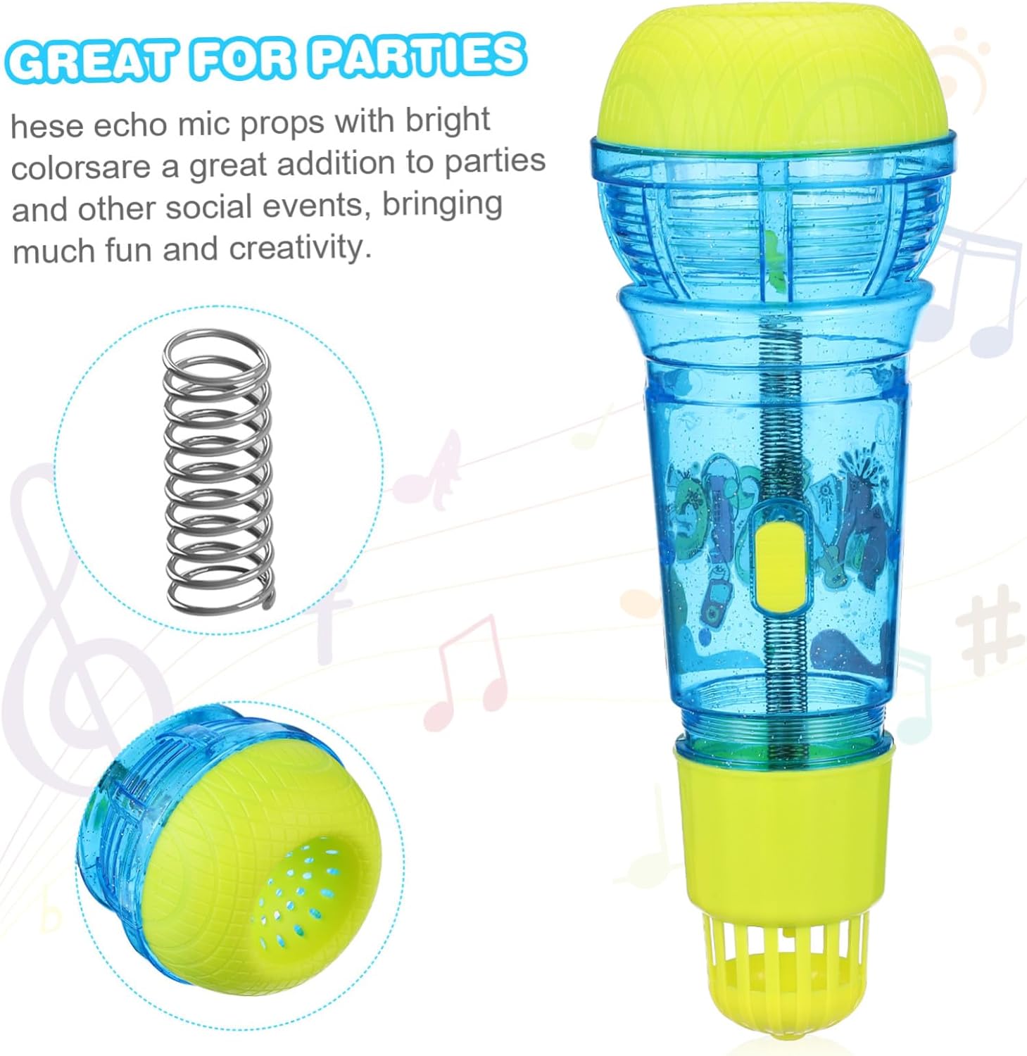 Microfono eco: per microfono sono caratterizzati dal loro effetto eco prodotto da molle integrate, che miglioreranno il suono bisogno attrezzi, microfono simulato in plastica, supporto per microfono per Festa divertente: gli oggetti per microfono sono accessori per feste musicali e altri , perché sono in grado un'atmosfera divertente e coinvolgente, microfono simulazione, del microfono presente Costruzione robusta: il microfono è realizzato con materiali robusti, che garantiscono che possa resistere all'usura utilizzato più volte, bomboniere per feste musicali, oggetti per microfono retrò Ottimi per feste: questi oggetti per microfono eco con colori vivaci sono un'ottima aggiunta a feste e altri , portando molto divertimento e creatività, giocattoli per parlare, oggetti per cosplay Aspetto adorabile: il loro design utilizza uno retrò simulato per i microfoni, rendendoli visivamente accattivanti e unici, macchina per karaoke per , giocattolo per microfono per