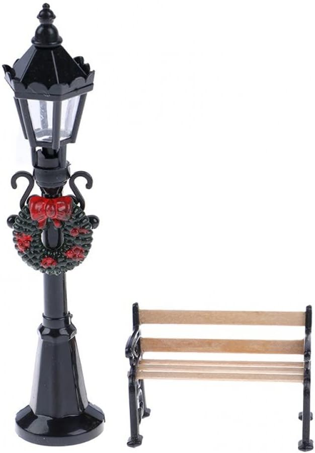 Dimensioni: la dimensione del modello del lampione è di ca. 4,72 pollici/12 cm. che può essere utile per la casa delle bambole in miniatura 1:12 e . Crea una vita colorata. Il pacchetto include: riceverai un ornamento stradale decorativo (senza illuminazione) e un modello di panchina in questo pacchetto a tema natalizio. Decorazioni natalizie: il lampione con la decorazione della panca aggiungerà un'atmosfera natalizia che porterà gioia ai tuoi ospiti in questo festival, farà sentire calorosi i tuoi amici e gli ospiti uniti. Grandi applicazioni: le panchine natalizie sono una bella aggiunta a vari luoghi, passerelle, più modelli di case, anche bei regali da inviare alla tua famiglia o ai tuoi compagni di classe. Accessori natalizi: il design del modello mini lampada da banco di simulazione è perfetto per decorare il modello mini paesaggio. È decorativo per abbinarsi alla decorazione della tua mini casa.