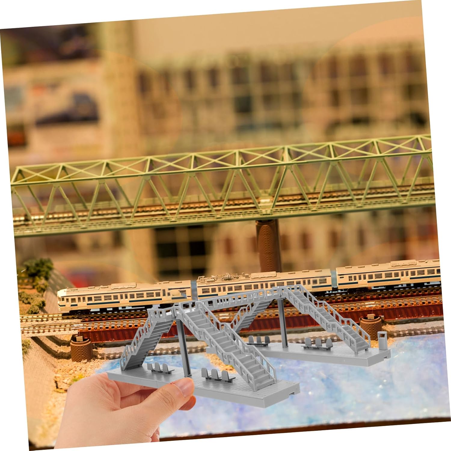Design compatto: il mini modello è poco ingombrante, facilitando l'integrazione nel tavolo di sabbia o nella decorazione della casa delle bambole senza sovraccaricare il layout, modellismo ferroviario, accessori ferroviari Costruzione durevole: realizzato in plastica, i componenti in plastica garantiscono longevità e durata, ideale per esposizioni o allestimenti interni, modellino in plastica, modellismo ferroviario, strutture ferroviarie in miniatura, rendendolo un'aggiunta ai modelli di tavoli di sabbia o alle case delle bambole, progetti di costruzione di giocattoli in miniatura, modello architettonico, modello in miniatura Scene coinvolgenti: il modellino del ponte ferroviario aggiunge profondità alla decorazione del paesaggio ferroviario, rendendolo uno straordinario nel ponte ferroviario o nella sabbia composizioni per la decorazione della tavola, forniture per modellini di tavoli di sabbia, modellini di edifici. Uso versatile: per allestimenti ferroviari in miniatura, questo prodotto funge anche da supporto da giardino o diorama per la casa delle fate, aggiungendo fascino a varie scene, tavolo di sabbia per decorazioni modello, modello fai-da-te