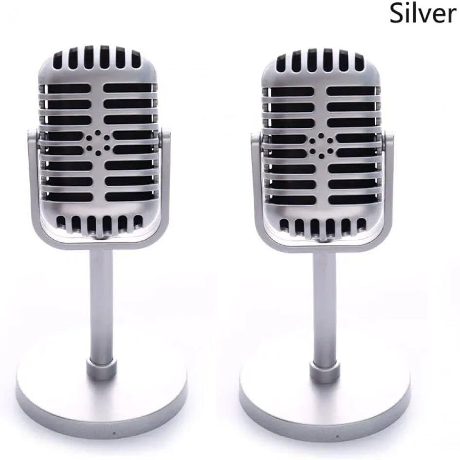 Microfono perfetto per accessori retrò su microfoni da palco di registrazione, feste senza far cadere il microfono. Questo microfono vecchio stile leggero è realizzato in plastica di buona qualità con un design in metallo per vibrazioni retrò. Design retrò, rendilo più chic e creativo. Ottimo per temi vintage, look rocker, feste di Natale, feste di Halloween, feste in maschera o giochi fantasiosi. Il microfono ad alte prestazioni in stile retrò aggiungerà sicuramente un'eleganza vecchio stile. Un simpatico strumento microfonico vintage retrò per cantare al karaoke. Questo microfono vintage è ottimo per fingere per tutti.