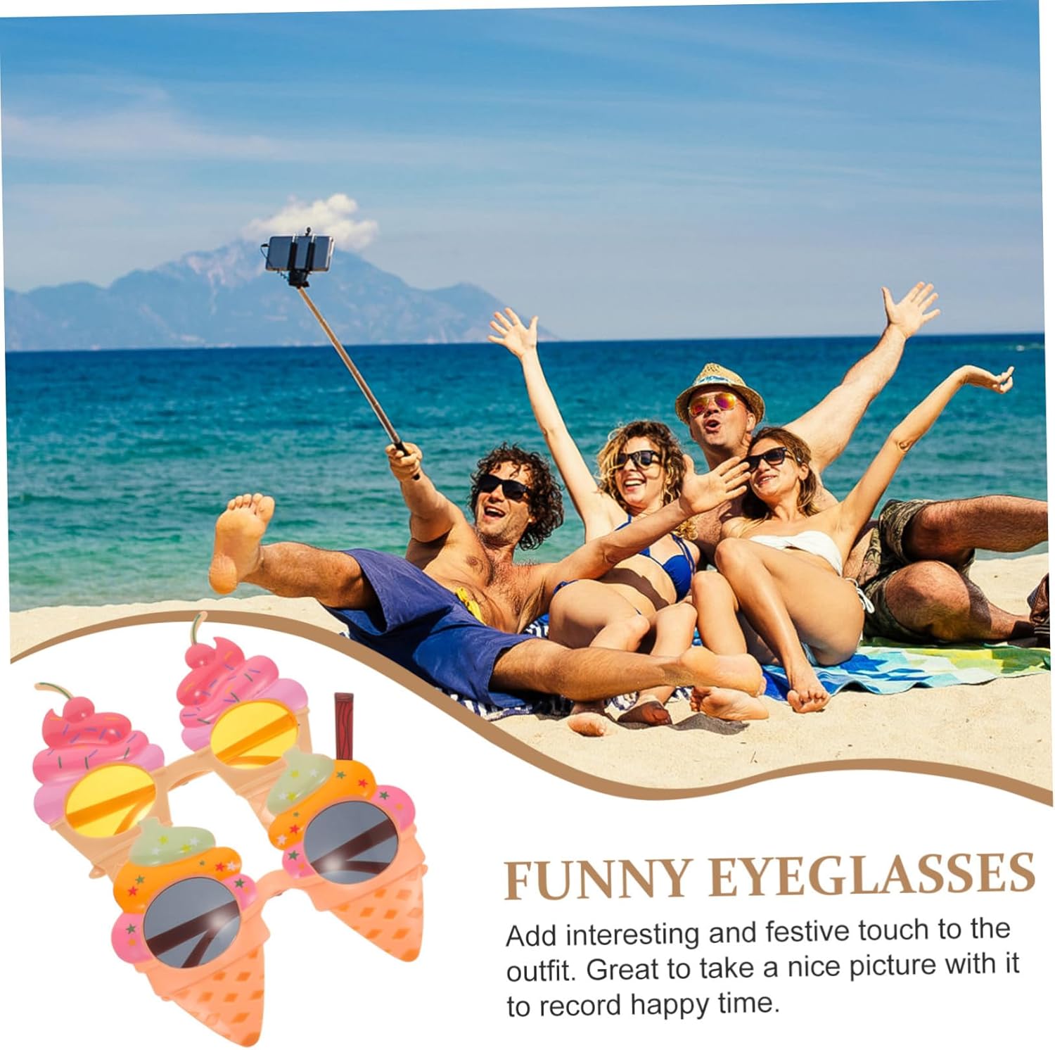 Bomboniere per feste con occhiali da sole: realizzati in materiale plastico, garantiscono la sicurezza e possono essere utilizzati con sicurezza, occhiali da festa Decorazioni per feste luau: il design del gelato dei cartoni animati lo rende unico e attira l'attenzione, regala un po' di divertimento e risate alla festa, occhiali da sole divertenti Bicchieri per feste in spiaggia: ideali per feste in maschera, festival musicali, giochi di ruolo, spettacoli di danza, carnevale, ecc., bicchieri per feste per adulti Accessori fotografici: forma unica e personalità completa, adatti a tutti i tipi di ballo, festa, ti renderanno il centro dell'attenzione di tutti, occhiali da spiaggia estivi Divertenti occhiali da festa: un pratico accessorio per feste che rende il tuo look unico, design divertente a tema hawaiiano, molto alla moda e squisiti, delicati occhiali da foto