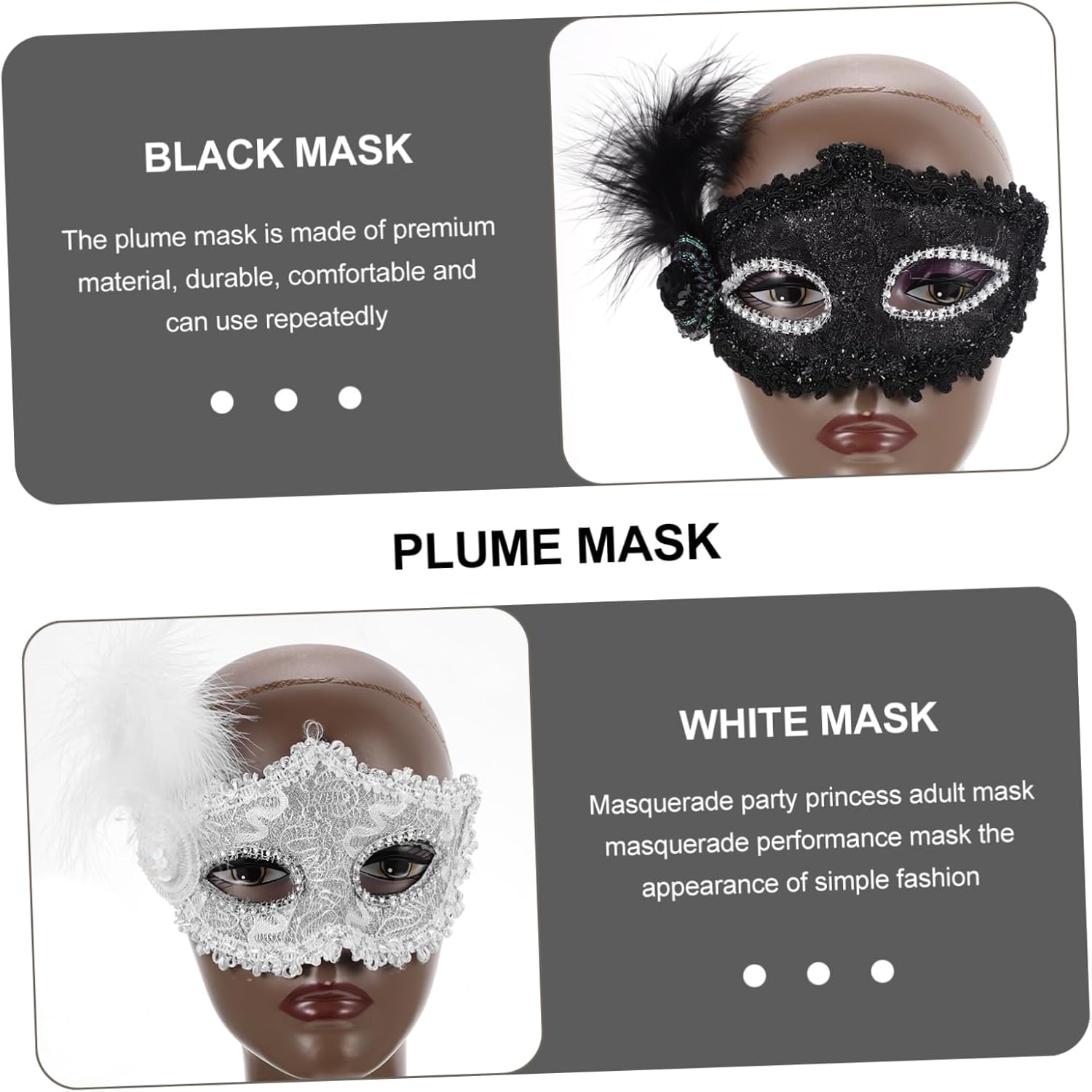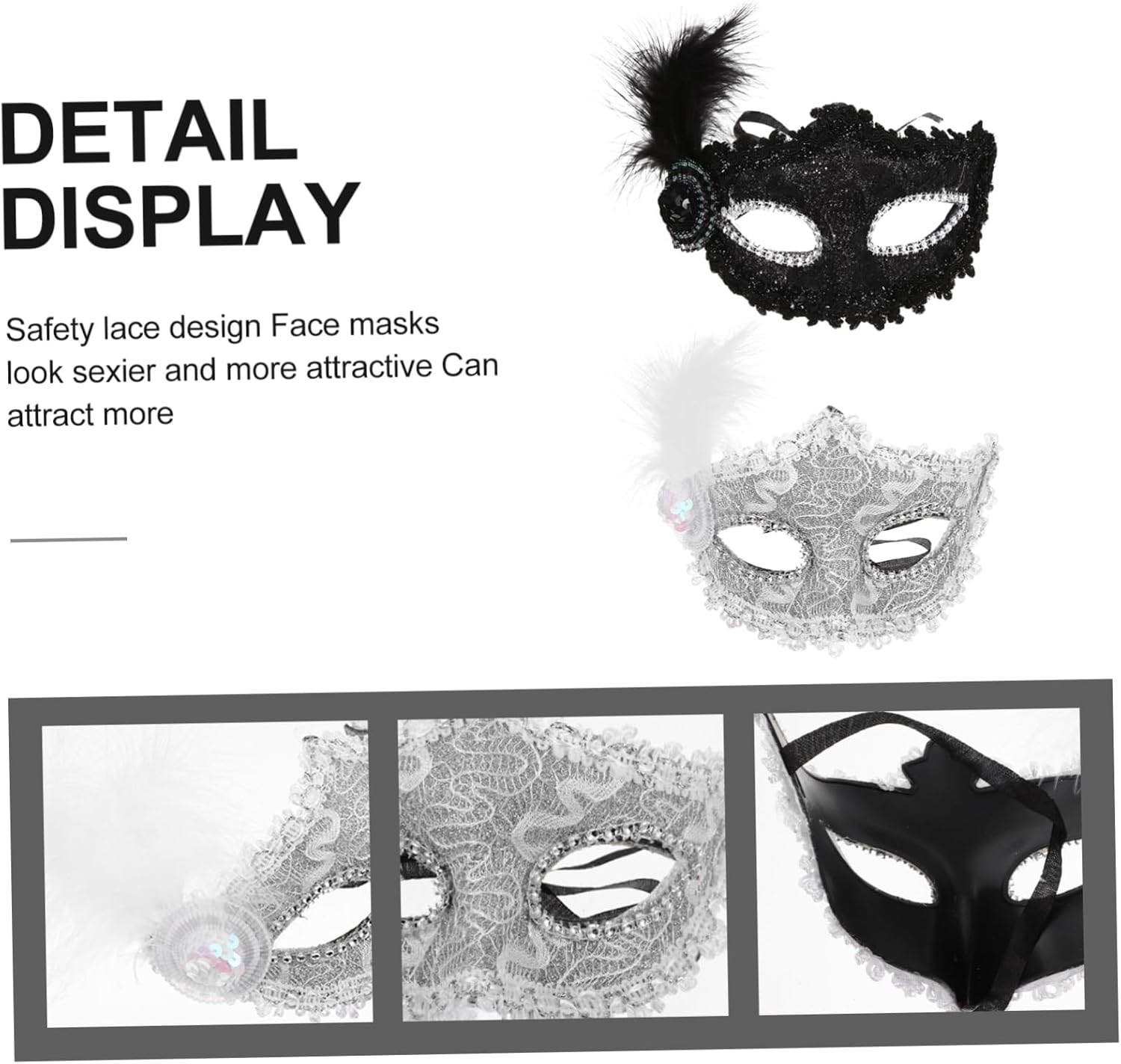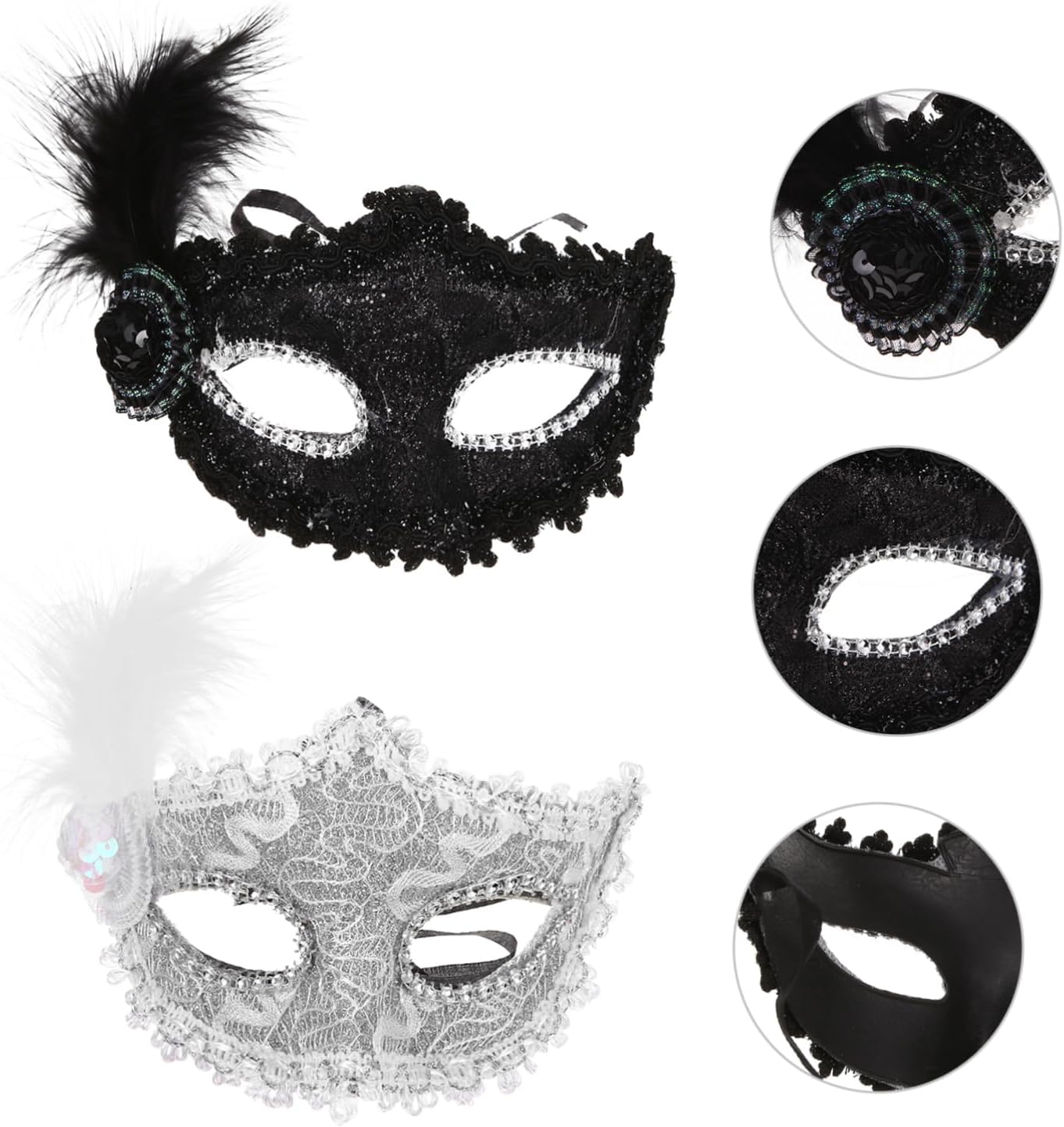dei pacchetti 2 maschere Caratteristiche -Materiale: plastica, stoffa, maschera con motivo a pennacchio -Colore: maschere bianche e nere -Dimensioni: circa 25,50X15,50X8,50 cm/10,02X6,09X3,34 pollici maschera costume -Ottimi accessori fotografici per scattare e scattare foto con la famiglia e gli amici: elegante maschera di carnevale per le donne. -Una meravigliosa maschera da cosplay per donne e ragazze, perfetta per Halloween, carnevale, feste in maschera, balli in maschera, ecc. -Questa maschera è adatta alle feste: puoi giocare quanto vuoi dopo averla indossata come maschera decorativa per gli occhi. -Realizzata in plastica, tessuto e materiali piumati di alta qualità e resistenti, la maschera Delicate Plume è comoda da indossare. -Un'ottima scelta come per i tuoi amici, colleghi, familiari, ecc. Questa maschera ornamentale piacerà moltissimo. Informazioni sulle merci Vuoi indossare una maschera personalizzata per un ballo o una festa in maschera? Questa mezza maschera sarà un'ottima scelta! Un'adorabile decorazione per distinguerti alla festa. Maschere decorative. Una meravigliosa maschera da cosplay per donne e ragazze, perfetta per Halloween, Carnevale, feste in maschera, balli in maschera, ecc.
