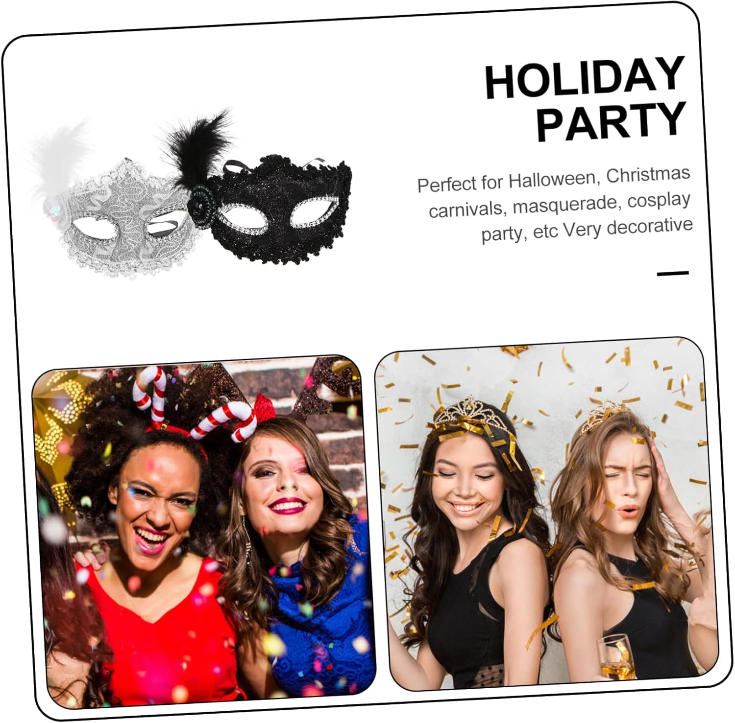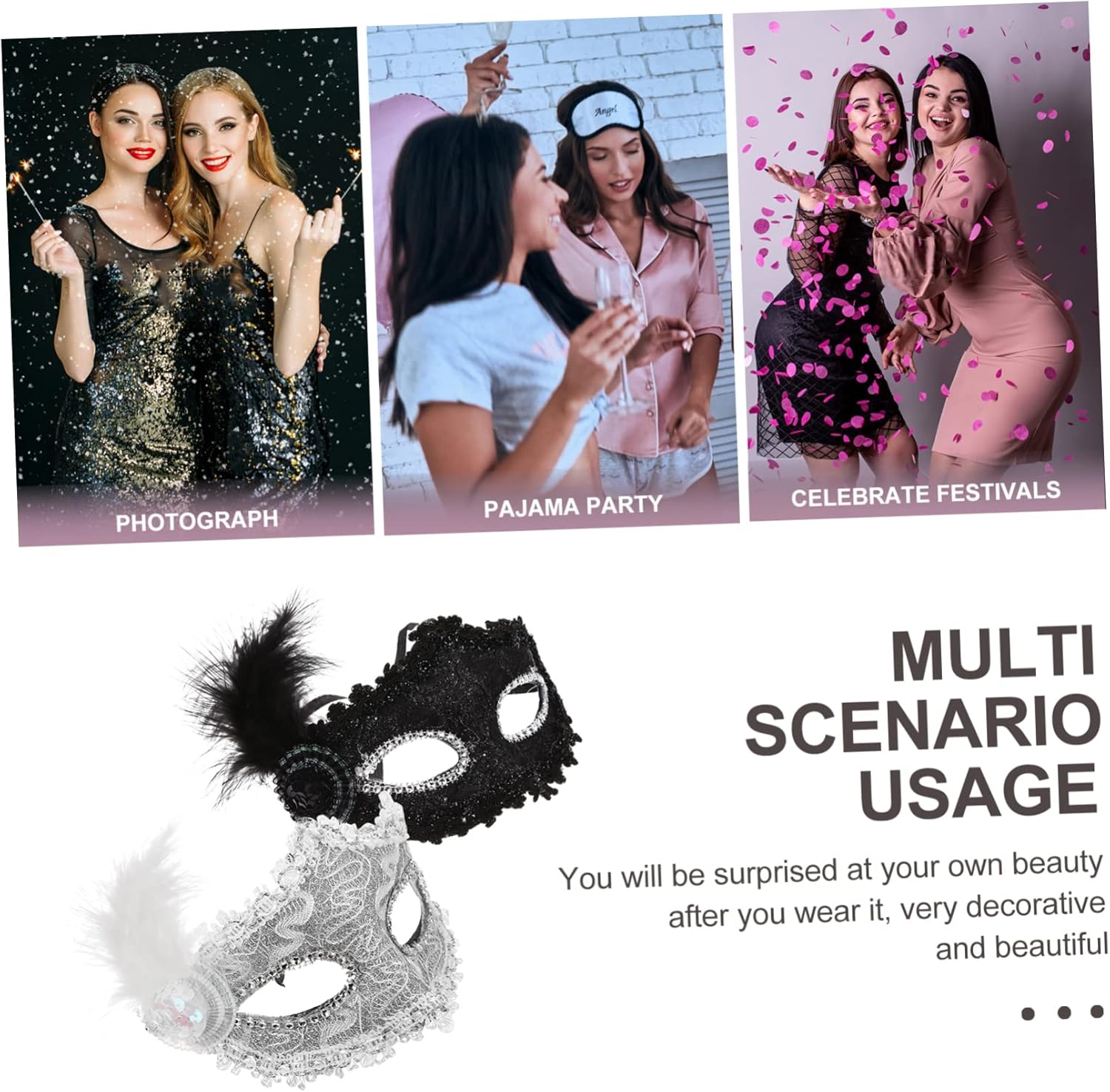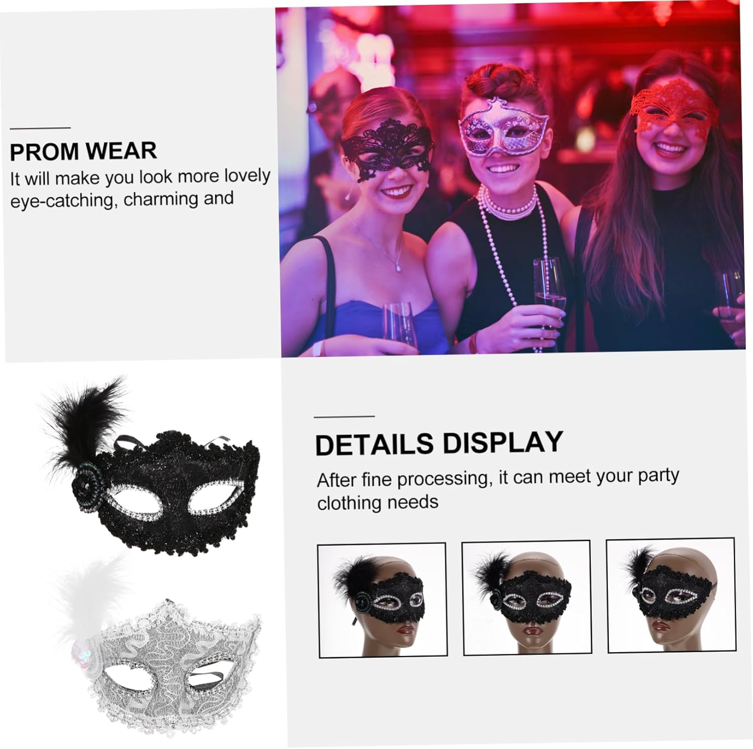 dei pacchetti 2 maschere Caratteristiche -Materiale: plastica, stoffa, maschera con motivo a pennacchio -Colore: maschere bianche e nere -Dimensioni: circa 25,50X15,50X8,50 cm/10,02X6,09X3,34 pollici maschera costume -Ottimi accessori fotografici per scattare e scattare foto con la famiglia e gli amici: elegante maschera di carnevale per le donne. -Una meravigliosa maschera da cosplay per donne e ragazze, perfetta per Halloween, carnevale, feste in maschera, balli in maschera, ecc. -Questa maschera è adatta alle feste: puoi giocare quanto vuoi dopo averla indossata come maschera decorativa per gli occhi. -Realizzata in plastica, tessuto e materiali piumati di alta qualità e resistenti, la maschera Delicate Plume è comoda da indossare. -Un'ottima scelta come per i tuoi amici, colleghi, familiari, ecc. Questa maschera ornamentale piacerà moltissimo. Informazioni sulle merci Vuoi indossare una maschera personalizzata per un ballo o una festa in maschera? Questa mezza maschera sarà un'ottima scelta! Un'adorabile decorazione per distinguerti alla festa. Maschere decorative. Una meravigliosa maschera da cosplay per donne e ragazze, perfetta per Halloween, Carnevale, feste in maschera, balli in maschera, ecc.