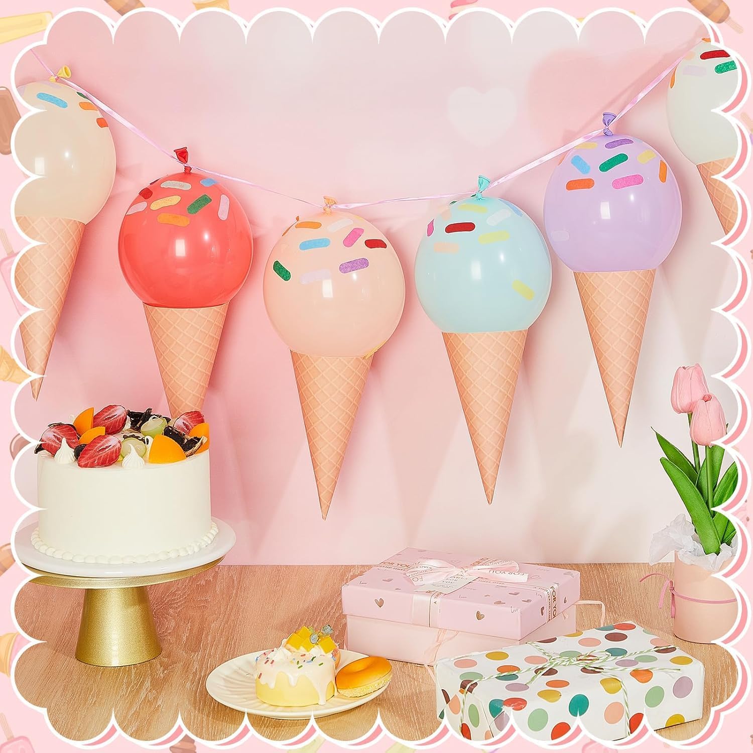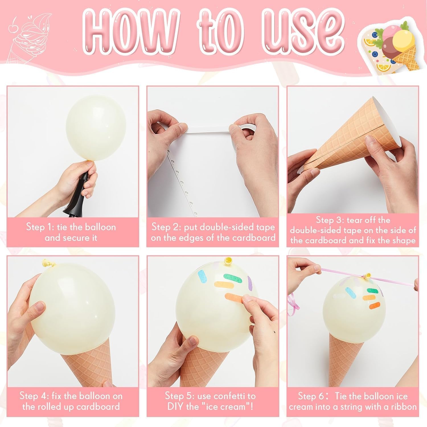 【Contenuto della confezione】Il kit di palloncini gelato ghirlanda è composto da 12 palloncini in lattice di circa 15 pollici e 12 cono gelato di carta, include anche 1 rotolo di nastro biadesivo, 1 rotolo di nastro e alcuni coriandoli colorati, con cui puoi creare 2 striscioni gelato palloncini unici. 【Sviluppa le capacità manuali dei bambini】Puoi assemblare i tuoi palloncino gelato preferiti con i tuoi bambini, incoraggiandoli a pensare in modo diverso, migliorando la creatività, le capacità motorie fini e il pensiero innovativo. 【Facile da usare】Il nostro palloncini a forma di gelato è facile da installare: 1. Gonfia il palloncino. 2. Incolla il nastro biadesivo sull'anello esterno curvo della carta a forma di cono. 3. Strappa il nastro sul lato e sull'anello esterno curvo della carta a forma di cono. 4. Fissa la carta a forma di cono. 5. Fissa il palloncino gonfiato sul cono. 6. Incolla i coriandoli colorati a piacere. 7. Lega l'estremità del palloncino al nastro e il tuo striscione gelato sarà completo. 【Divertimento fai da te】Con il nostro set di palloncini compleanno gelato, puoi assemblare il gelato della dimensione e del colore che desideri, il che ti offrirà un'esperienza fai da te immersiva e ti permetterà di immergerti completamente. 【Occasioni applicabili】I nostri set di palloncini tema gelato sono accessori decorativi ideali per feste, adatti per feste estive a tema gelato, feste di compleanno per bambini, festa dei bambini, battesimi e altre occasioni, che contribuiscono ad aggiungere un tocco di colore speciale ai tuoi eventi o altre attività, creando un'atmosfera gioiosa e creativa.