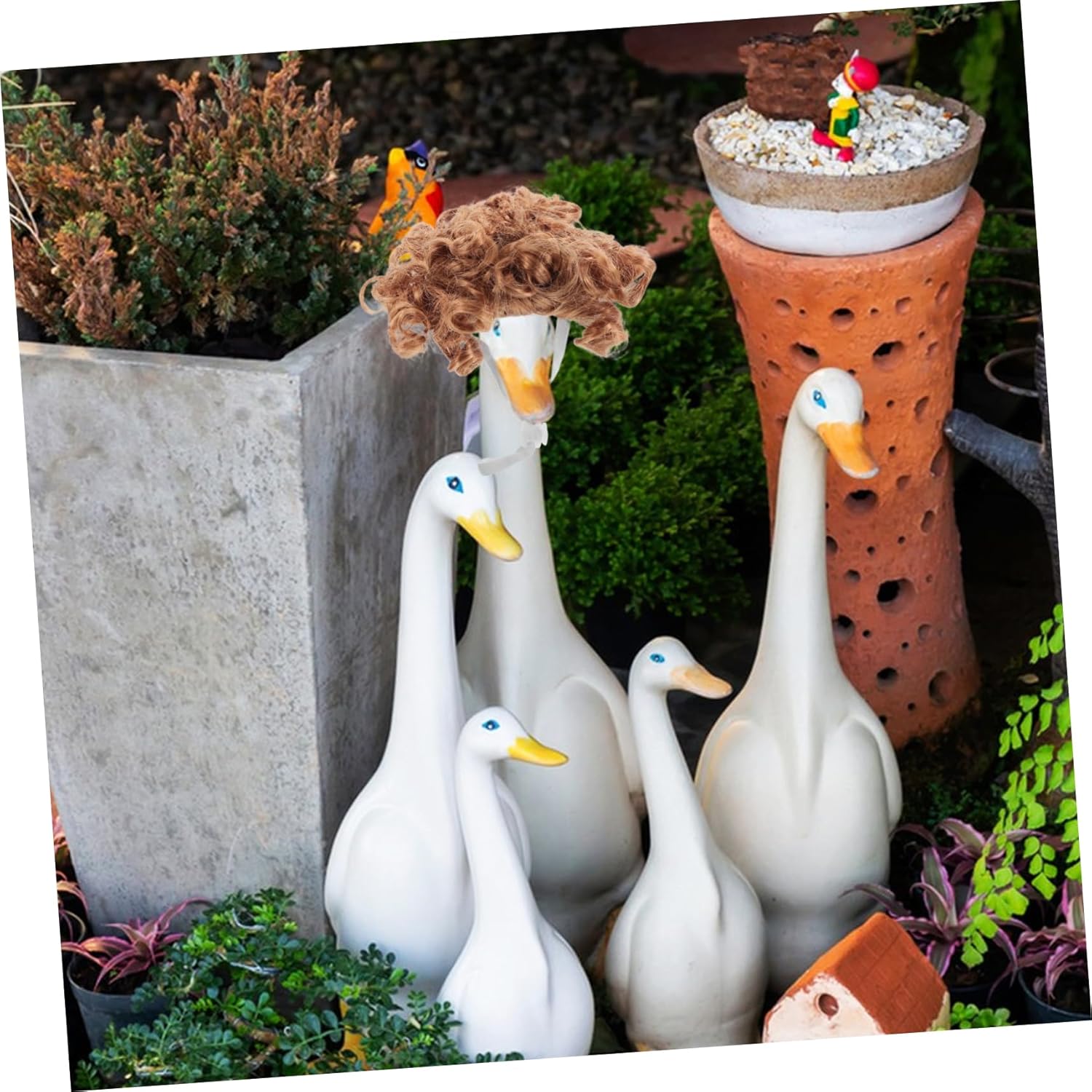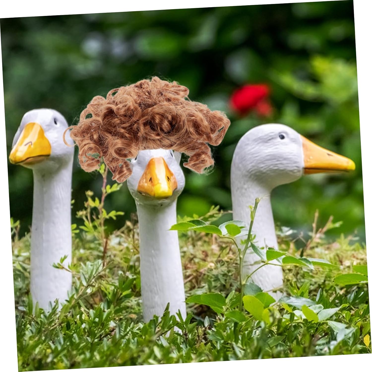 Porta gioia nel tuo cortile: usa queste divertenti parrucche d'oca per creare un'atmosfera vivace e accogliente, rendendo il tuo giardino o prato un luogo preferito per le riunioni, fermagli per parrucche d'oca, d'oca da portico Qualità duratura: realizzate in fibre sintetiche, queste parrucche sono durevoli, realistiche e resistenti allo sbiadimento, garantendo che mantengano il loro fascino nel tempo, decorazione dell'oca, divertente decorazione del cortile Regolabile per la vestibilità: dotate di elastici e clip regolabili, queste parrucche si adattano saldamente a oche di tutte le taglie, offrendo un aspetto elegante e confortevole, decorazione per oche da portico, oca da portico anteriore Vestibilità sicura e regolabile: con elastici e clip regolabili, queste parrucche offrono una vestibilità comoda e adatta a oche di tutte le taglie, rimanendo saldamente in posizione, statua dell'oca del portico, abbigliamento dell'oca del portico Arredamento: la tua oca da giardino con acconciature uniche, trasformandola in un elemento distintivo che riflette la tua personalità e il tuo stile, costume da oca, costume da oca da veranda per il ringraziamento