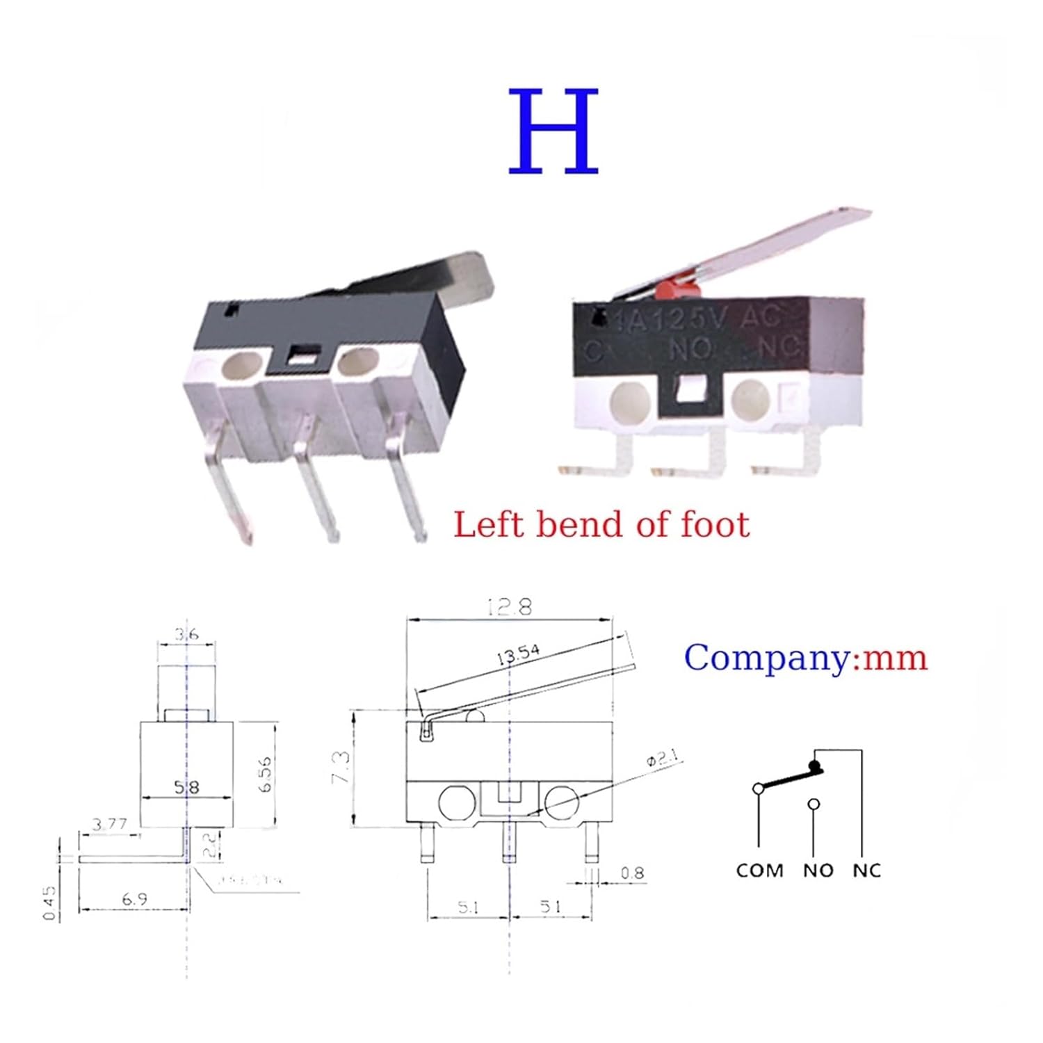 2 pezzi piccolo microinterruttore maniglia meno interruttore a chiave a contatto con finecorsa di corsa 1a125v a tre pin