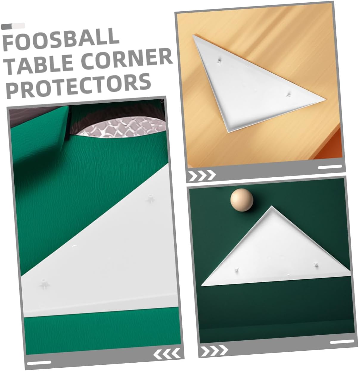 Aspetto estetico: la protezione angolare aggiunge un aspetto pulito ed elegante al tuo tavolo da calcio balilla, completando qualsiasi arredamento della sala giochi, protezioni per i bordi del calcio balilla, coperture per angoli del tavolo da calcio balilla Design intuitivo: la protezione angolare del tavolo è facile da installare e rimuovere, offrendo praticità agli utenti, protezioni angolari, parti per calcio balilla Vestibilità versatile: la protezione per gli angoli del tavolo è progettata per adattarsi a un'ampia gamma di tavoli da calcio balilla, offrendo flessibilità e praticità, angolo del tavolo triangolare, sostituzioni per tavoli da calcio balilla Materiale resistente: la protezione angolare del tavolo da calcio balilla è realizzata in materiali plastici pp che offrono durata e un aspetto elegante, protezioni per bordi di ricambio per tavolo da calcio balilla, accessori per calcio balilla Ampia applicazione: le protezioni angolari sono compatibili con la maggior parte dei tavoli da calcio balilla, offrendo una soluzione flessibile per vari modelli, protezioni angolari per tavoli da calcio balilla, copertura angolare