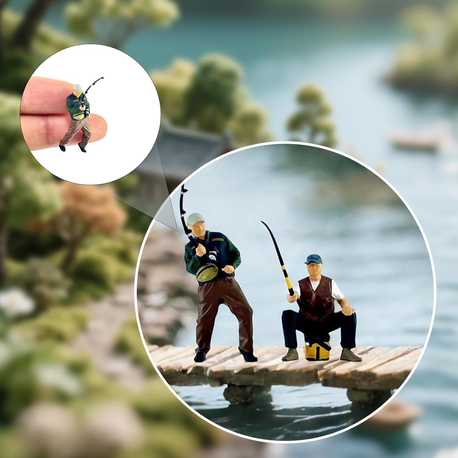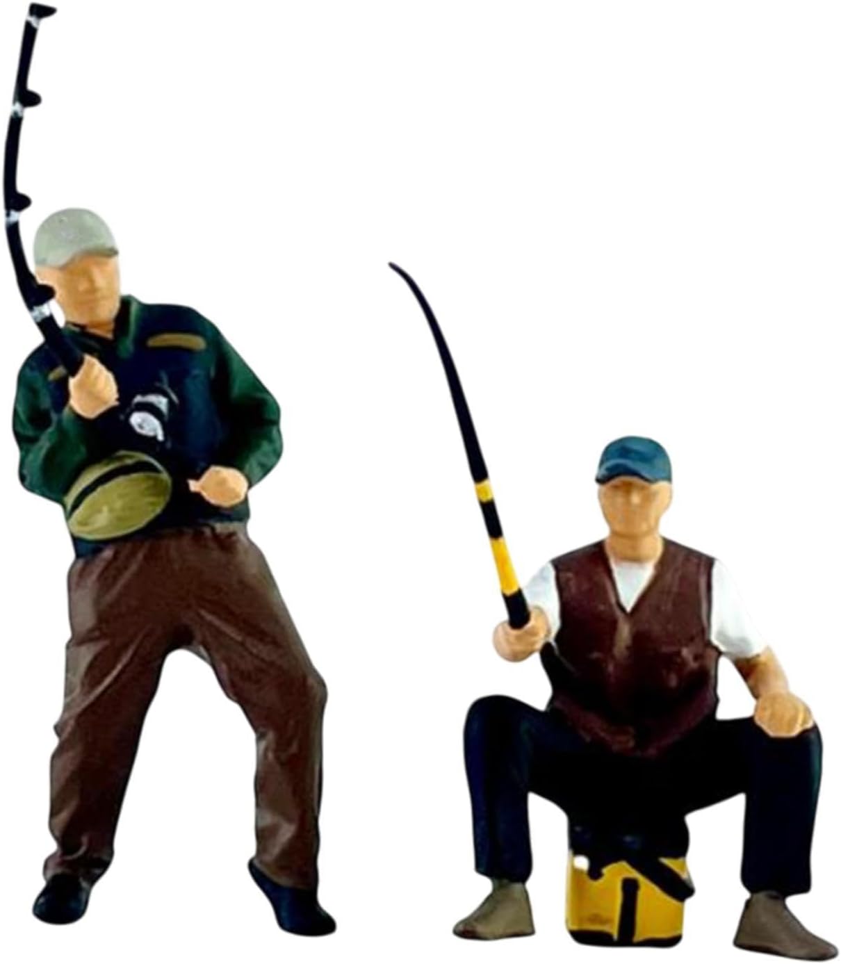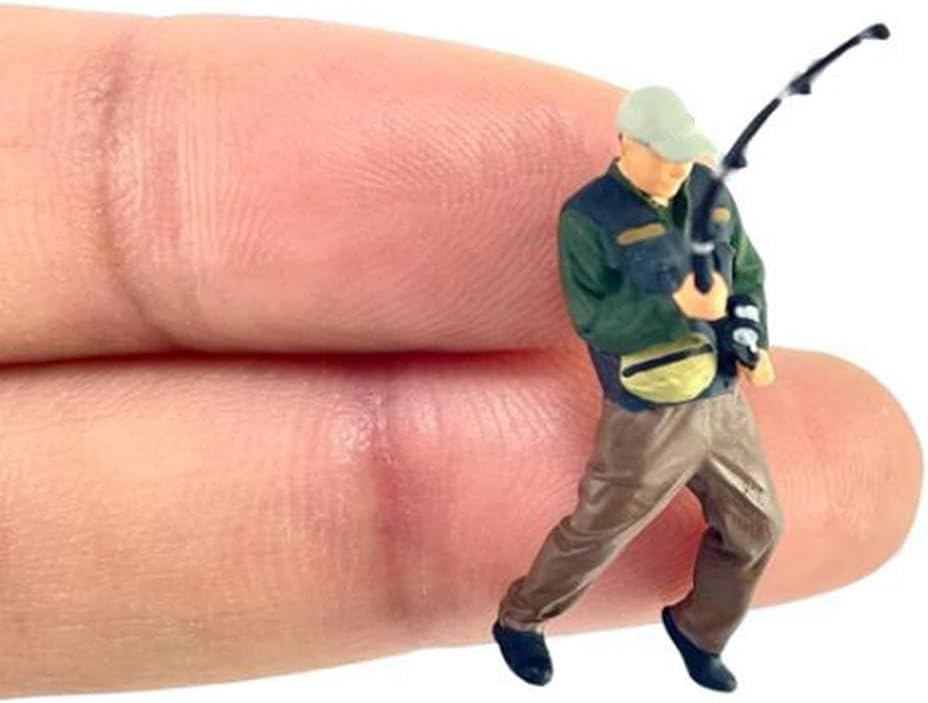 Ideale per scene in scala 1/64: migliora la visualizzazione delle miniature con queste figure da pesca dal design complesso, per diorami, configurazioni fotografiche e modellini ferroviari Materiale in resina di alta qualità: realizzate in resina di qualità, queste figure di pescatori in scala 1:64 sono di alta qualità e finemente dettagliate, assicurando che si distinguano in qualsiasi collezione o esposizione Lavorazione raffinata: ogni figura in scala 1/64 è meticolosamente dipinta a mano da abili artigiani, offrendo un livello di dettaglio e unicità, ideale per la tua collezione Dimensioni compatte: con altezze che vanno da circa 1,8 cm a 3,4 cm, queste miniature da pesca sono perfettamente dimensionate per adattarsi perfettamente ai tuoi ambienti esistenti in scala 1/64 Include due figure da pesca: la confezione contiene due figure maschili distinte con canne da pesca, fornendo opzioni dinamiche per composizioni o collezioni di scene