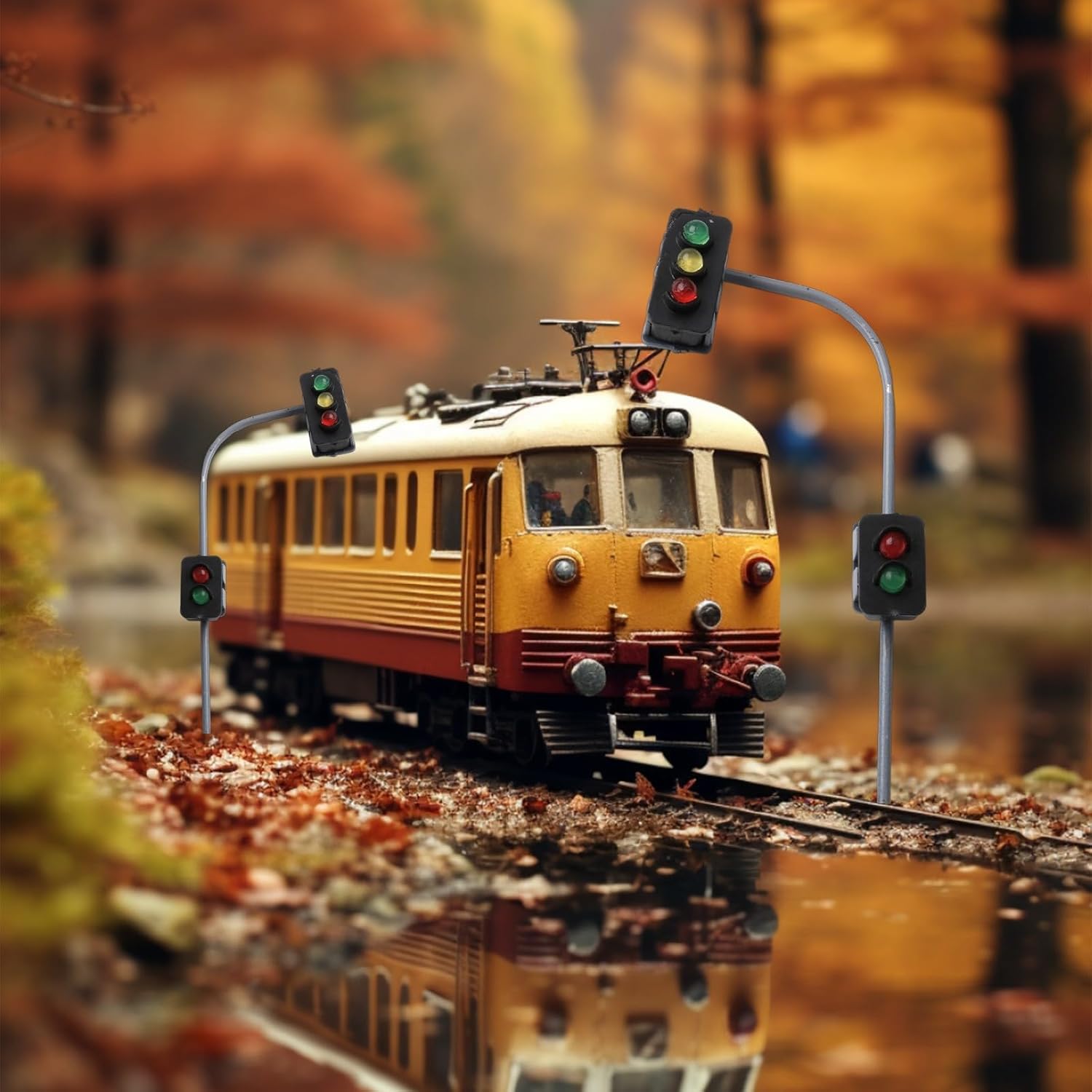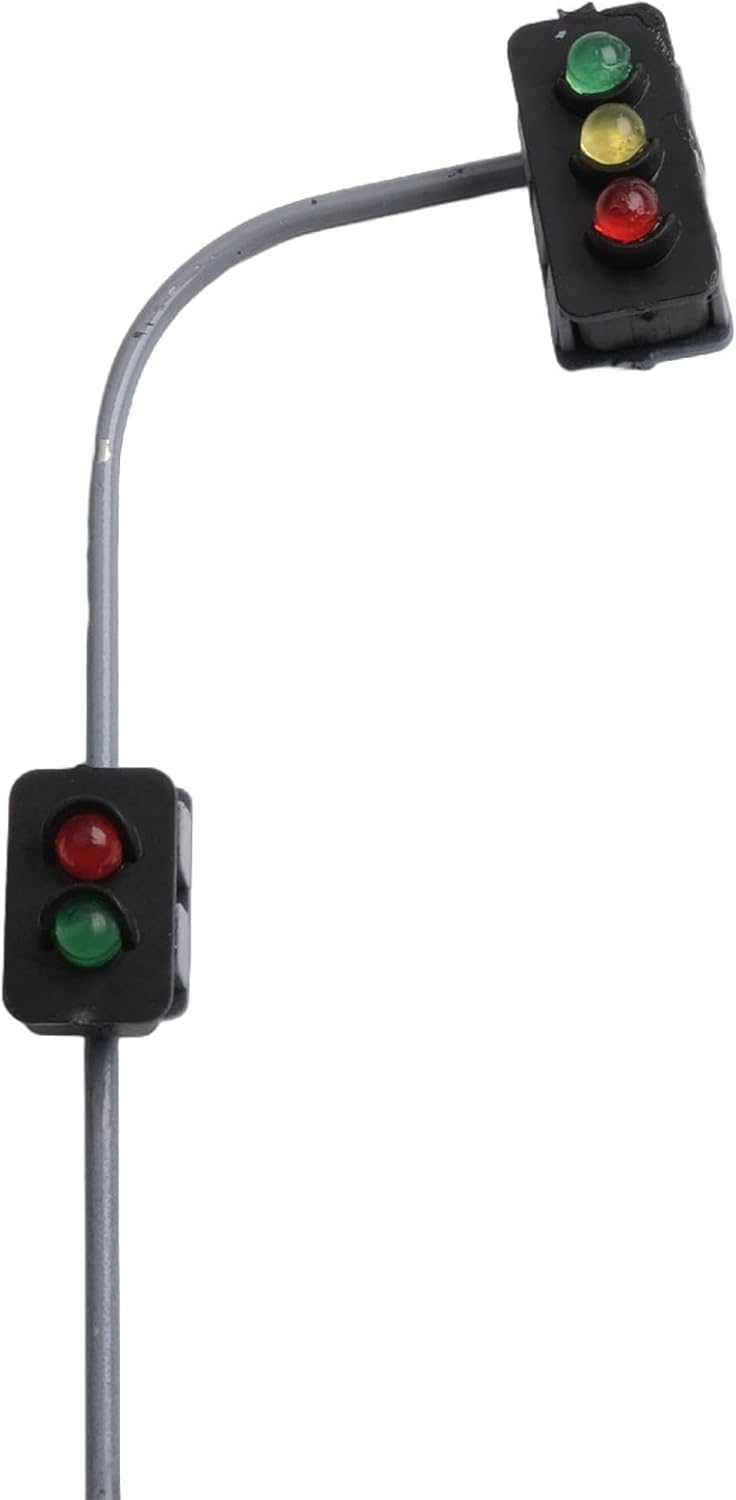 [DESIGN REALISTICO N-MASSABLE]: Questi semafori stradali e transizioni pedonali sono appositamente progettati per i layout N-track e offrono un autentico paesaggio urbano per il tuo modello ferroviario. [ILLUMINAZIONE LED DI ALTA QUALITA']: dotato di LED di lunga durata che producono un'illuminazione realistica senza diventare eccessivamente caldo. Tensione d'esercizio: 3 V DC per prestazioni ottim [FACILE INSTALLAZIONE]: i semafori sono dotati di una base filettata per un facile montaggio e manutenzione. Ideale per i modellisti che apprezzano i dettagli. [Struttura resistente]: le colonne sono realizzate in metallo, che garantisce durata e stabilità. I fili neri fungono da anodo comune, mentre gli altri fili fungono da catodi. [SET COMPLETO]: Nella confezione sono inclusi 2 semafori completamente verniciati, 2 viti e 5 resistenze. Tutto ciò che serve per l'integrazione con il layout del modello track.