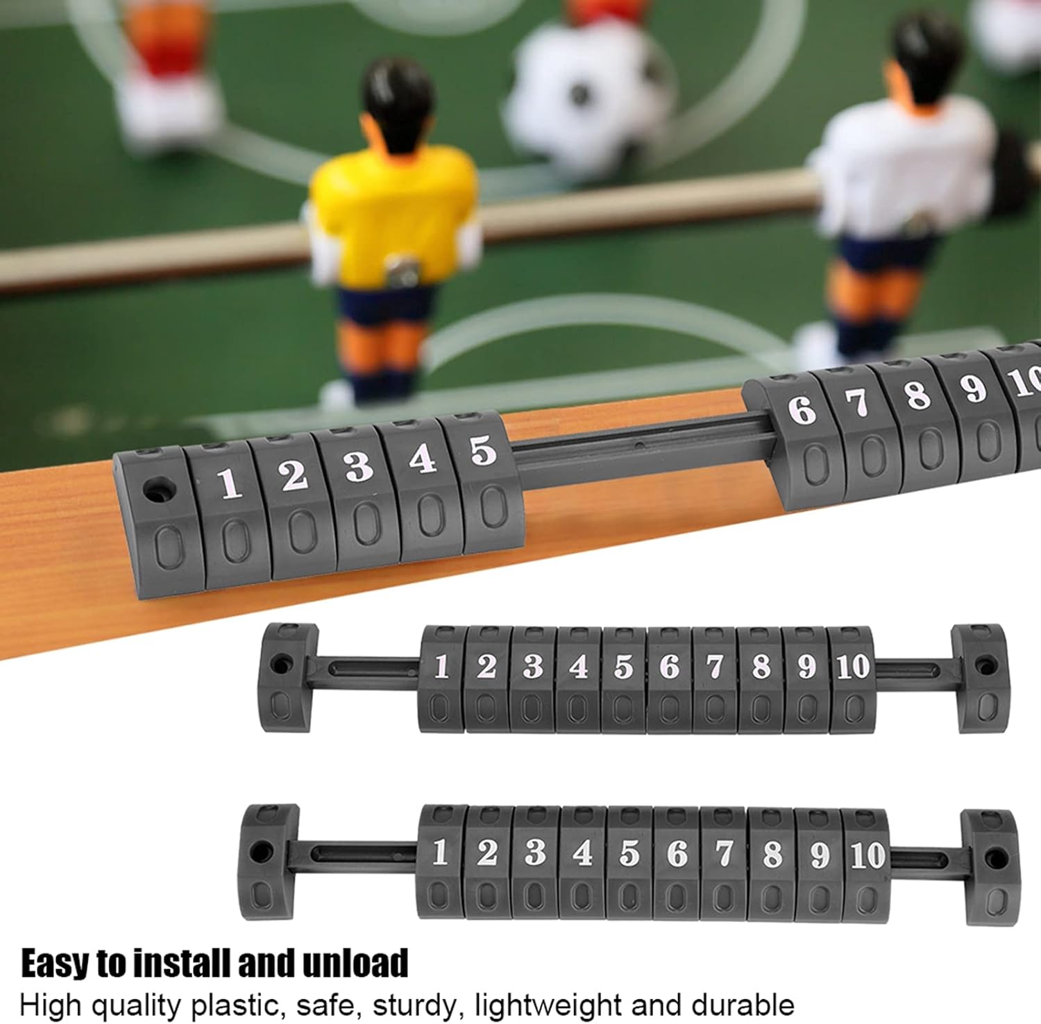 Realizzato in plastica di alta qualità, sicuro, robusto, leggero e durevole. Facile da installare e scaricare. Pulsanti di punteggio dal design ergonomico. Un set viene fornito con 2 contatori, può segnare per due gruppi. Da 1 a 10, per un totale di 10 numeri, puoi contare un gran numero di punti.