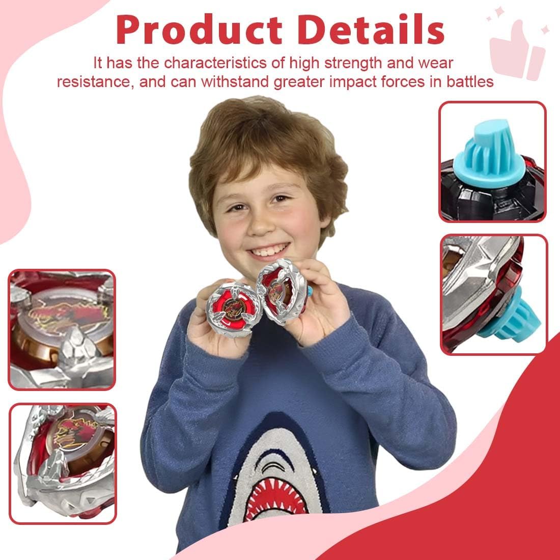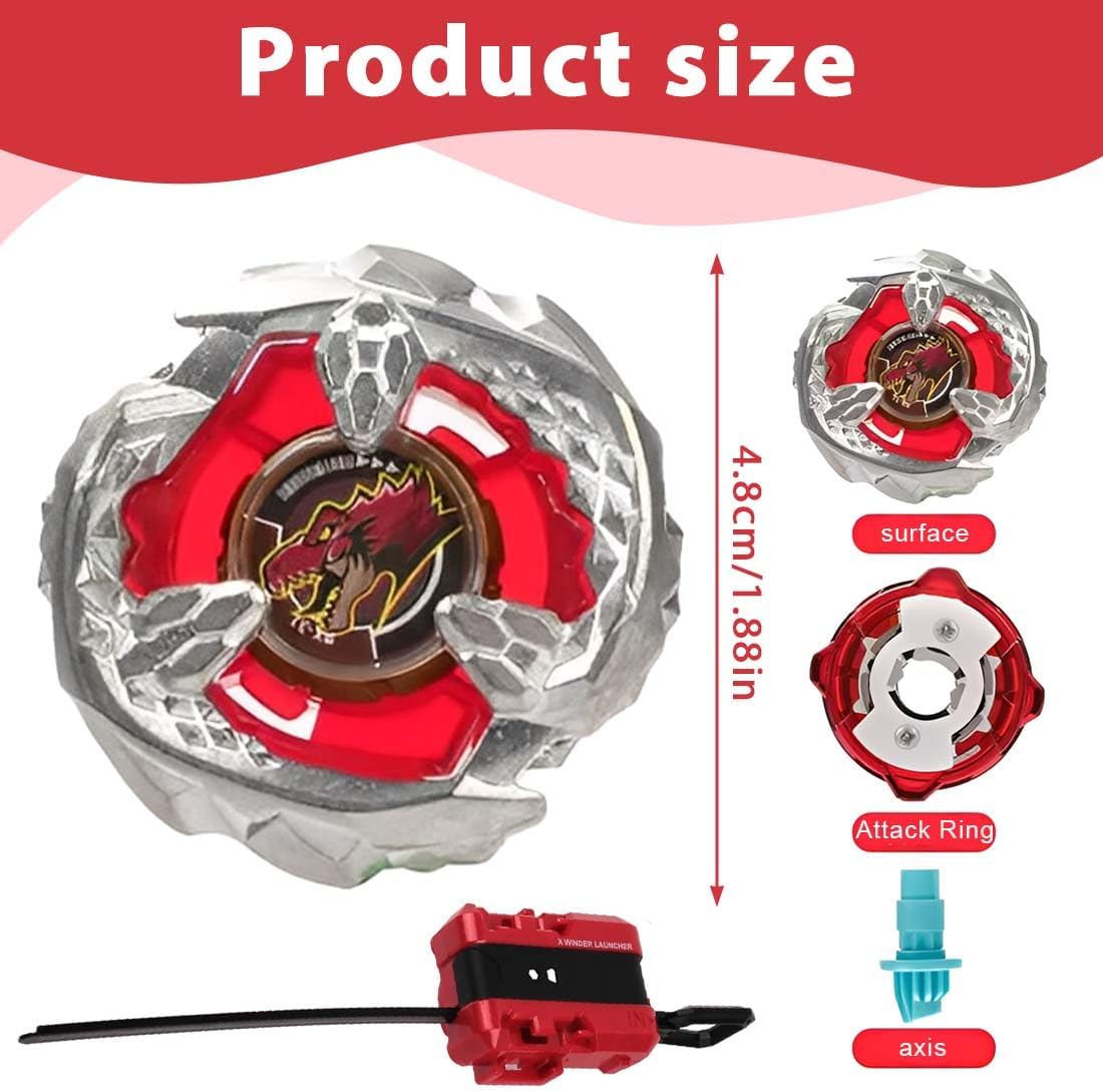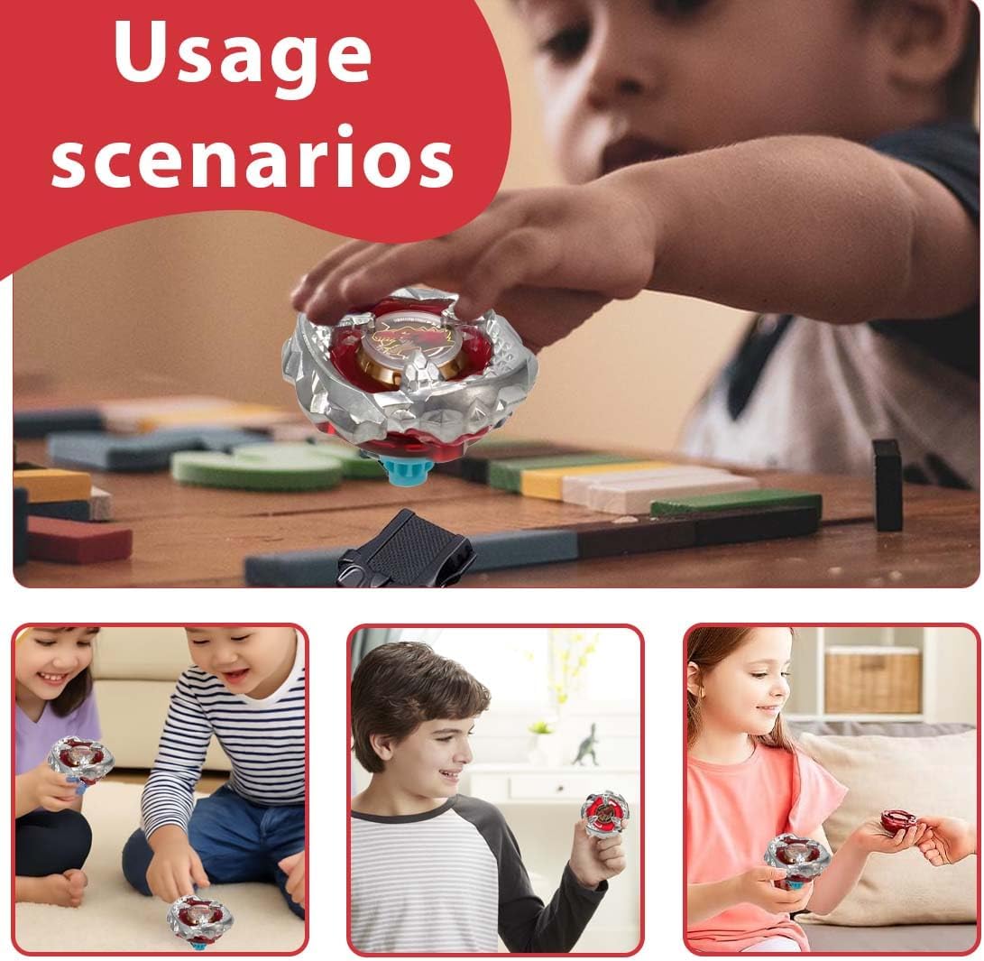 Contenuto della confezione: riceverai 1 lanciatore a corda e 1 trottola giocattolo, realizzati in plastica di alta qualità. Facile da assemblare: basta ruotare rapidamente e cliccare due volte per assemblare la parte superiore intercambiabile (ad esempio lama, ruota dentata e punta), e poi la battaglia può iniziare Binario di accelerazione: grazie al sistema di accelerazione, è possibile passare alla marcia alta. Quando gli ingranaggi della punta entrano in contatto con il binario di accelerazione, il giroscopio rotante genera una velocità estremamente elevata, raggiungendo velocità altissime Potenza di combattimento esplosiva: questo è un giocattolo giroscopico dal ritmo veloce e ricco di emozioni, in grado di sfidare i giocatori che desiderano diventare maestri del giroscopio e aiutarli a migliorare il loro livello di gioco. Montate il giroscopio, inserite il motore di avviamento e siete pronti per partire! Il battle top amplia il potenziale strategico: grazie al design di ogni lama con caratteristiche uniche e alla ridistribuzione del metallo dell'uncino di attivazione sul bordo esterno della lama da combattimento, le possibilità di vittoria nel battle top sono aumentate.