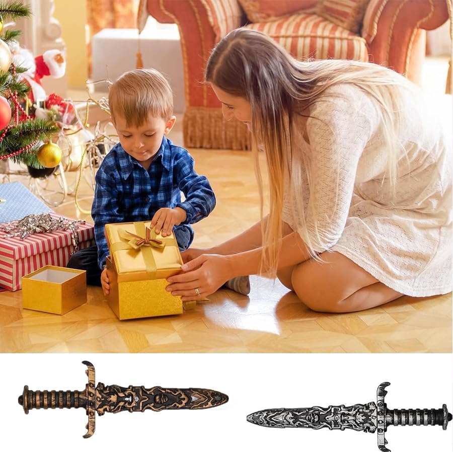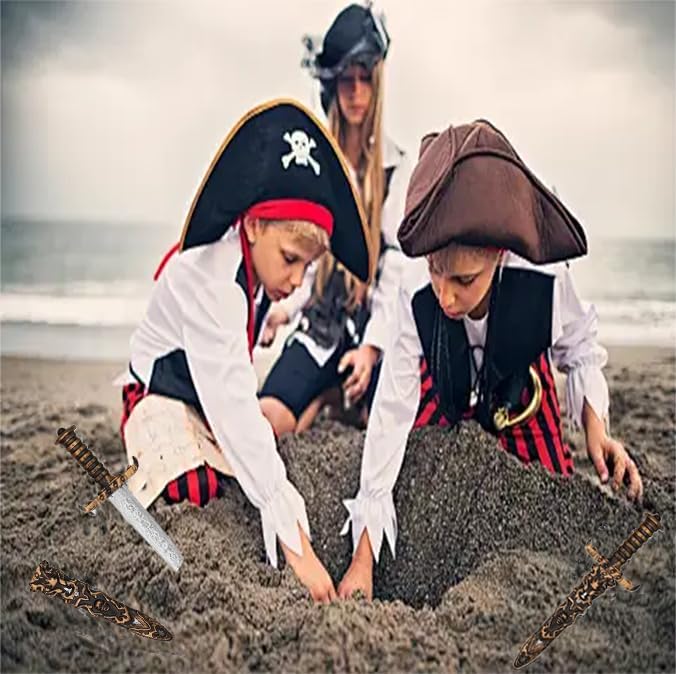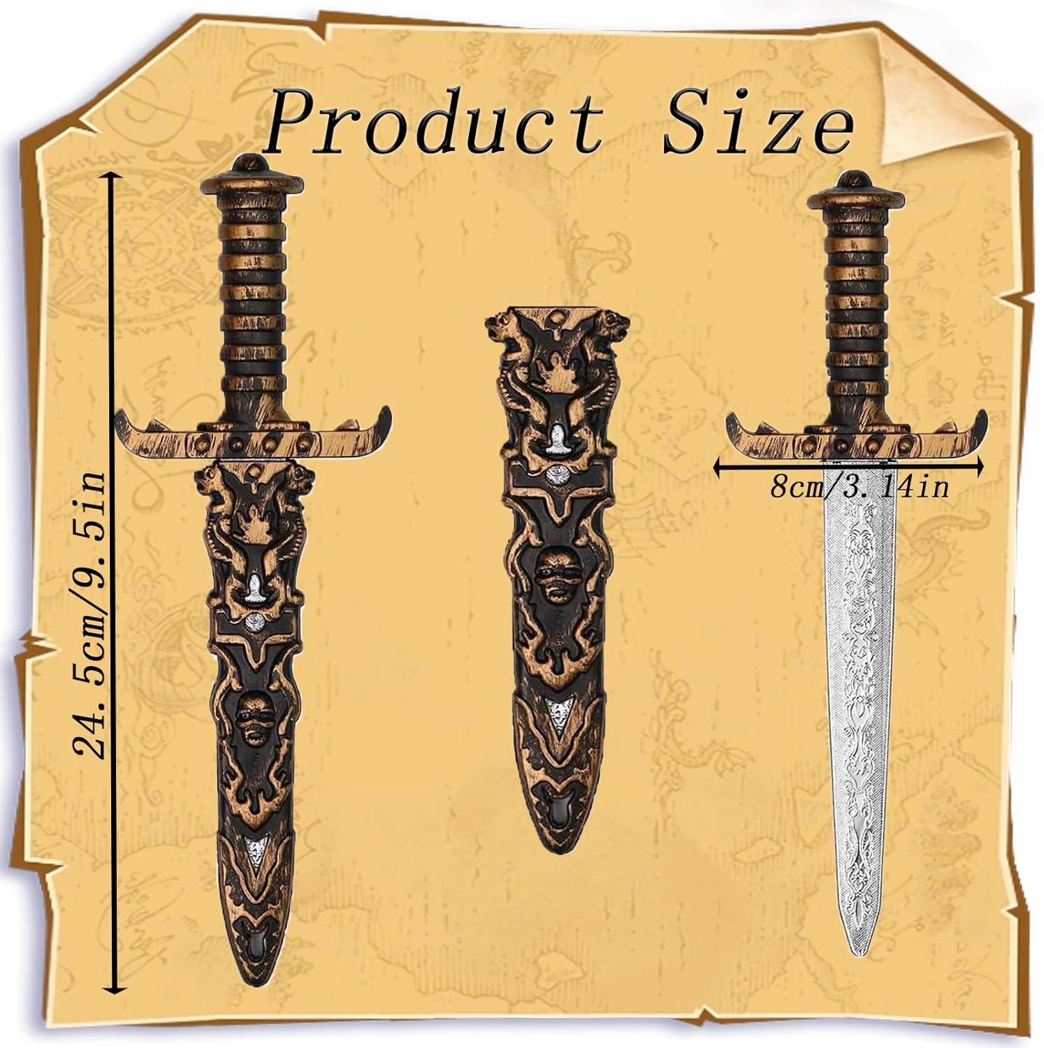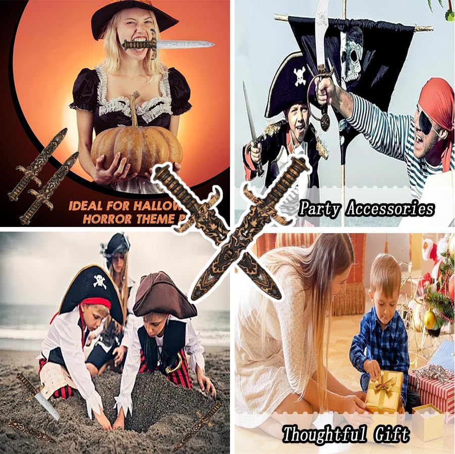 [Materiale e Processo] : Spade di plastica per halloween è realizzata in materiale plastico di alta qualità, dopo un processo di galvanizzazione fine, la superficie mostra una lucentezza e una consistenza metalliche. non solo mantiene la leggerezza e la resistenza alla caduta della plastica, ma conferisce anche corpo della spada un effetto visivo nobile ed elegante. [Design Unico] : Il halloween spade di plastica corpo della spada ha linee morbide e forma realistica, ripristinando perfettamente lo stile delle armi antiche. L'elsa è progettata ergonomicamente ed è comoda da tenere in mano, quindi non ti sentirai stanco anche se la indossi per molto tempo. Facile da trasportare: la nostra spada di plastica è leggera e della giusta dimensione, con un peso totale di 30 grammi e una lunghezza di 24,5 cm, garantendo che non sia né troppo pesante né troppo grande, facile da trasportare e non facile da danneggiare, adatta per tenere le piccole mani dei bambini e non darà peso ai bambini o agli utenti.spada pirata Può essere abbinato a qualsiasi outfit da festa o spettacolo pirata. Design unico: il giocattolo è realizzato in colore oro retrò, con aspetto squisito e unicità.spada pirata Gli intagli e le texture squisiti e la forma realistica del pugnale aumentano il realismo e il valore ornamentale del giocattolo, portano i bambini nel mondo avventuroso dei pirati e stimolano l'immaginazione e la creatività dei bambini, lascia che i bambini lo mettono giù. Regalo perfetto: questo giocattolo con pugnale ha un design unico. Può essere utilizzato come oggetto di scena nei giochi per bambini per aumentare il divertimento del gioco. Può anche essere utilizzato come film, oggetto di scena teatrale, decorazione per feste a tema, giochi di ruolo, spettacoli scolastici e supporto video. È un supporto ideale per Arabian Nights. Accessorio ideale per costumi abbronzati, orientali o da pirata. Una spada da pirata è un regalo speciale per tutti!