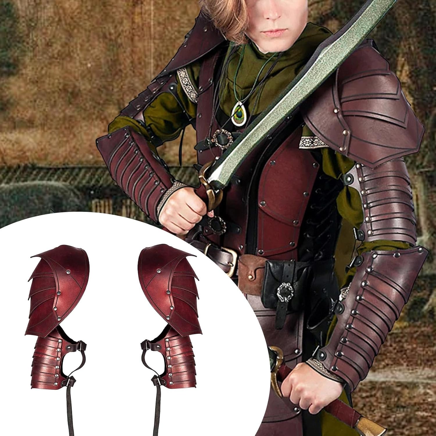 【Design medievale】: realizzate in pelle PU, queste protezioni per le spalle presentano intricate goffrature, rivetti e cuciture che imitano realisticamente l'aspetto e la consistenza delle guardie medievali, aggiungendo un impatto visivo sorprendente a qualsiasi costume 【Ampia gamma di usi】: ideale per feste di Halloween, carnevali, spettacoli teatrali, matrimoni a tema, mostre medievali e altro ancora; questo set è adatto a varie occasioni in cui si desidera un tocco storico. Include 1 paio di protezioni per le spalle 【Comodo da indossare】: le protezioni per le spalle in stile steampunk gotico sono rifinite in modo uniforme per garantire un utilizzo confortevole durante convegni o spettacoli. Lunghezza 40 cm/15,75 pollici 【Chiusura sicura e regolabile】: dotata di robuste fibbie regolabili che garantiscono una vestibilità aderente e mantengono le protezioni per le spalle saldamente in posizione, anche durante le attività energiche, così puoi liberamente senza preoccupazioni 【Integrazione versatile del costume】: ottimo da abbinare ad altri pezzi da guardia come piastre per il petto, protezioni per le braccia o protezioni per le gambe per creare un completo ensemble da guerriero medievale. Migliora l'autenticità del tuo personaggio per eventi LARP o a tema.