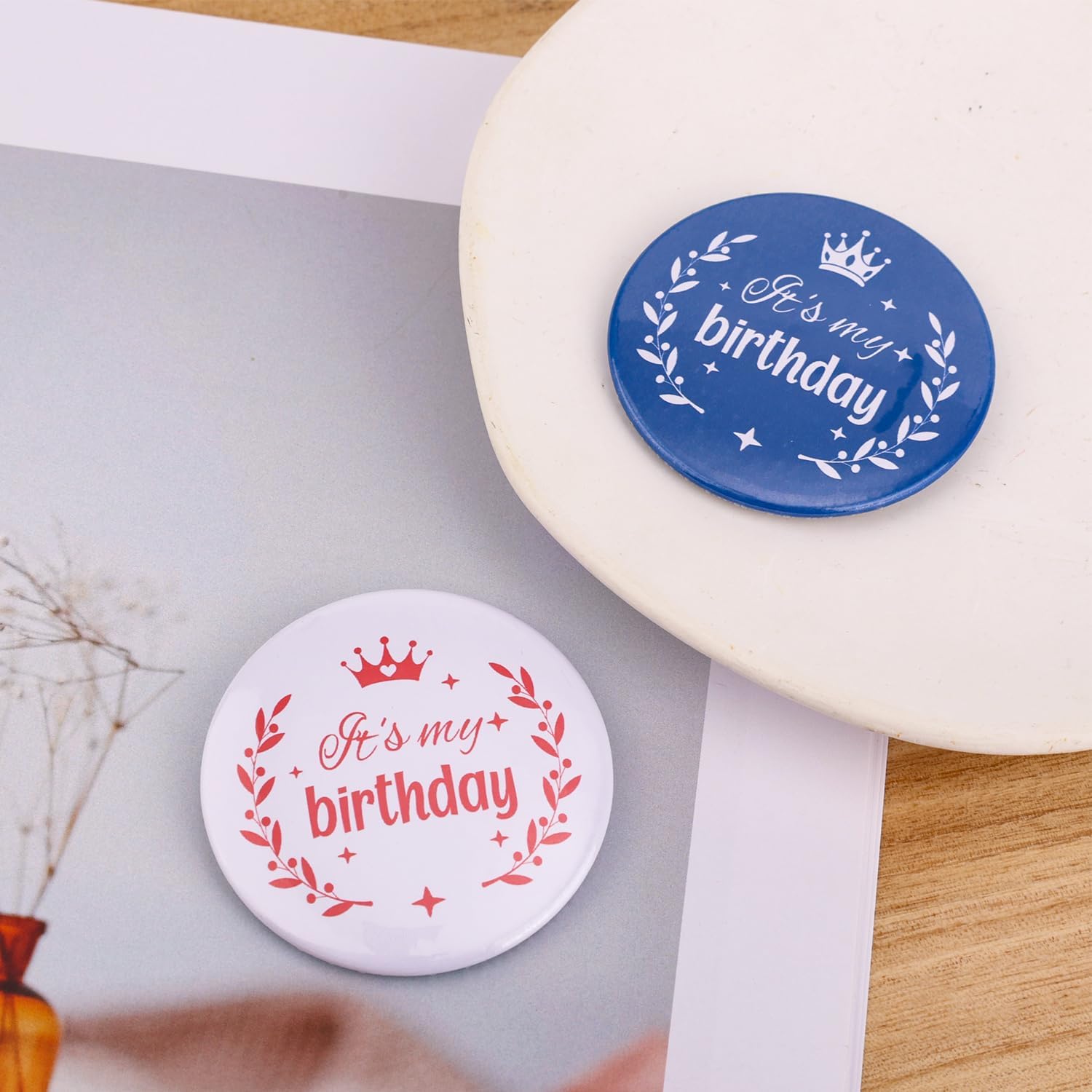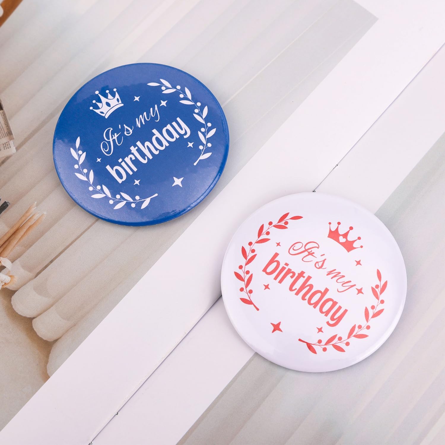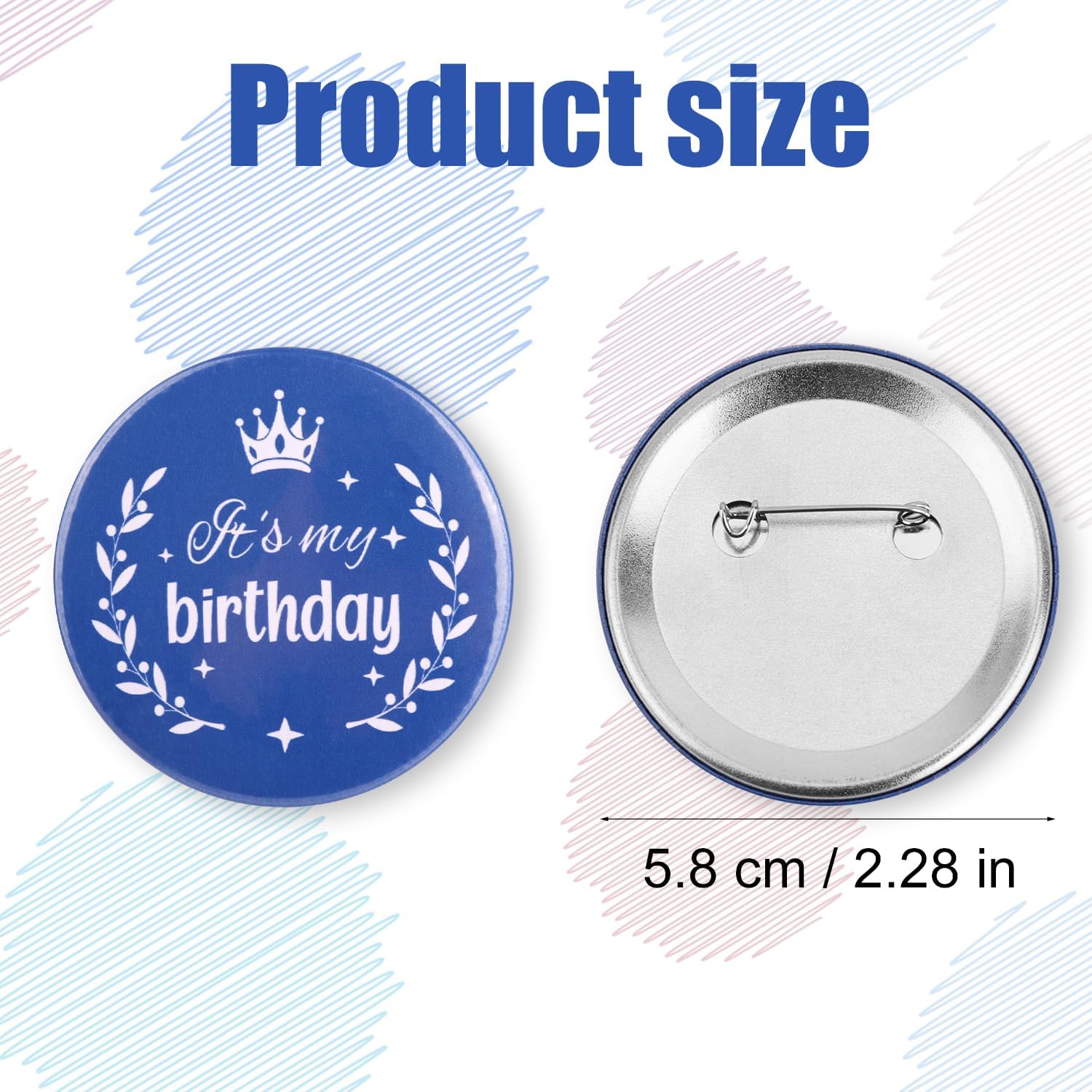 Specifiche: Colore: blu, bianco Materiale: acciaio inossidabile Dimensioni del prodotto: diametro 5,8 cm Dettagli della confezione: 2 spille di compleanno Nota: A causa della misurazione manuale, le dimensioni e il peso potrebbero presentare un certo errore. A causa della differenza tra i monitor, potrebbe esserci una leggera differenza di colore.
