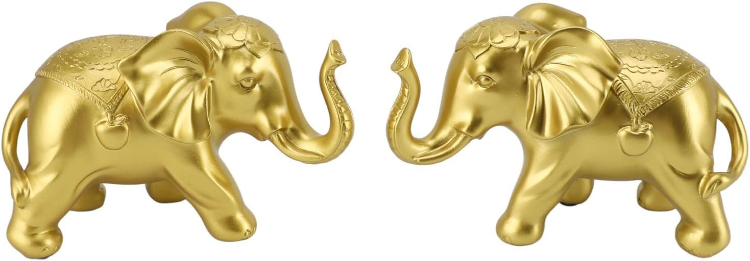 MATERIALE: queste statuette di elefanti sono costruite per durare, garantendo divertimento e ammirazione duraturi. ASPETTO DORATO: l'elegante finitura dorata aggiunge un tocco lussuoso all'arredamento della tua casa, migliorando immediatamente il fascino estetico di qualsiasi spazio con il suo fascino radioso. FATTO A MANO: Ogni statua di elefante dorato è meticolosamente realizzata a mano con un'attenzione squisita ai dettagli, mostrando una superba maestria per un aspetto realistico. APPLICAZIONE VERSATILE: Perfetti per il posizionamento in soggiorno, camera da letto, ufficio, studio o qualsiasi luogo desiderato, questi ornamenti a forma di elefante migliorano l'atmosfera armoniosa di qualsiasi spazio con la loro presenza elegante. REGALO SQUISITO: Caratterizzate da un set di un elefante più grande e uno più piccolo, queste statue rappresentano un regalo unico e delizioso per la famiglia e gli amici, mettendo in mostra la loro individualità e il loro fascino.
