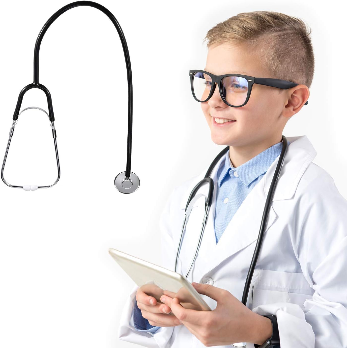 Giocare al dottore può aiutare ad alleviare le ansie riguardo alle prossime visite mediche. Ameranno fingere di essere un medico mentre sviluppano la loro immaginazione e giochi di ruolo e abilità sociali. Facile da imparare ad usarlo veramente, giocando Lo stetoscopio funzionante per far giocare i bambini da dottore; Vestito per bambino di età superiore ai 14 anni. Il miglior regalo per un bambino che sogna di diventare un dottore.