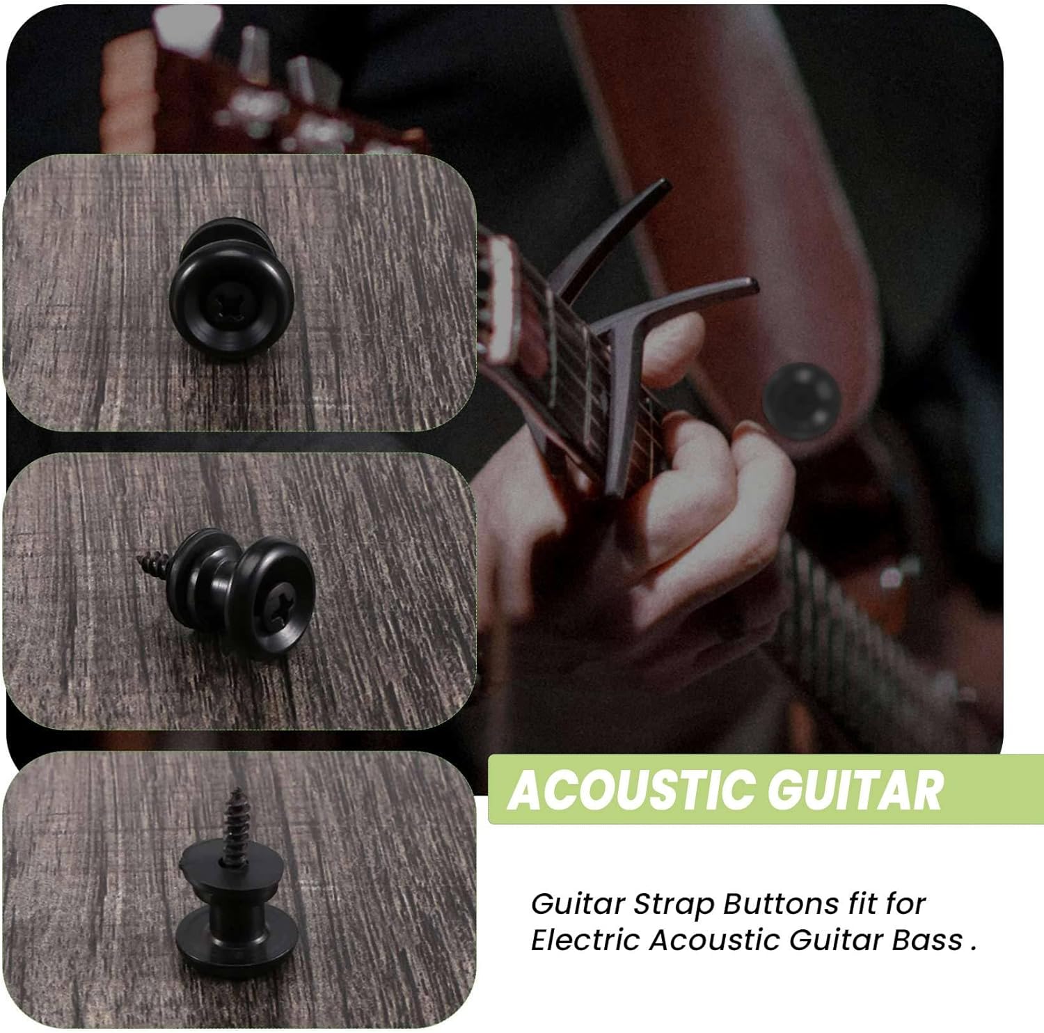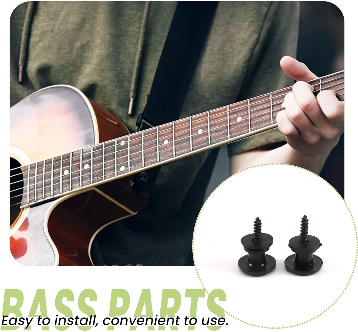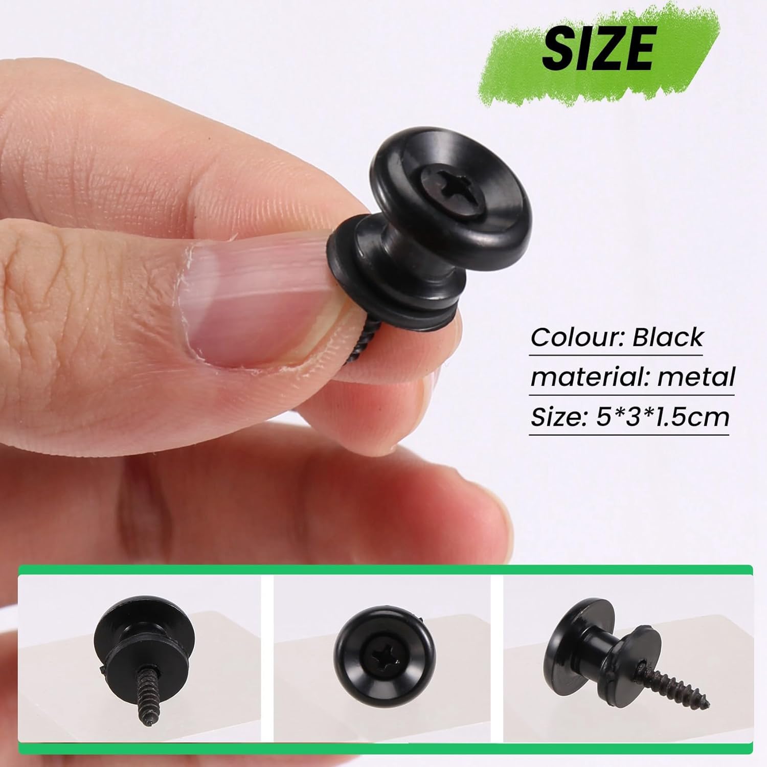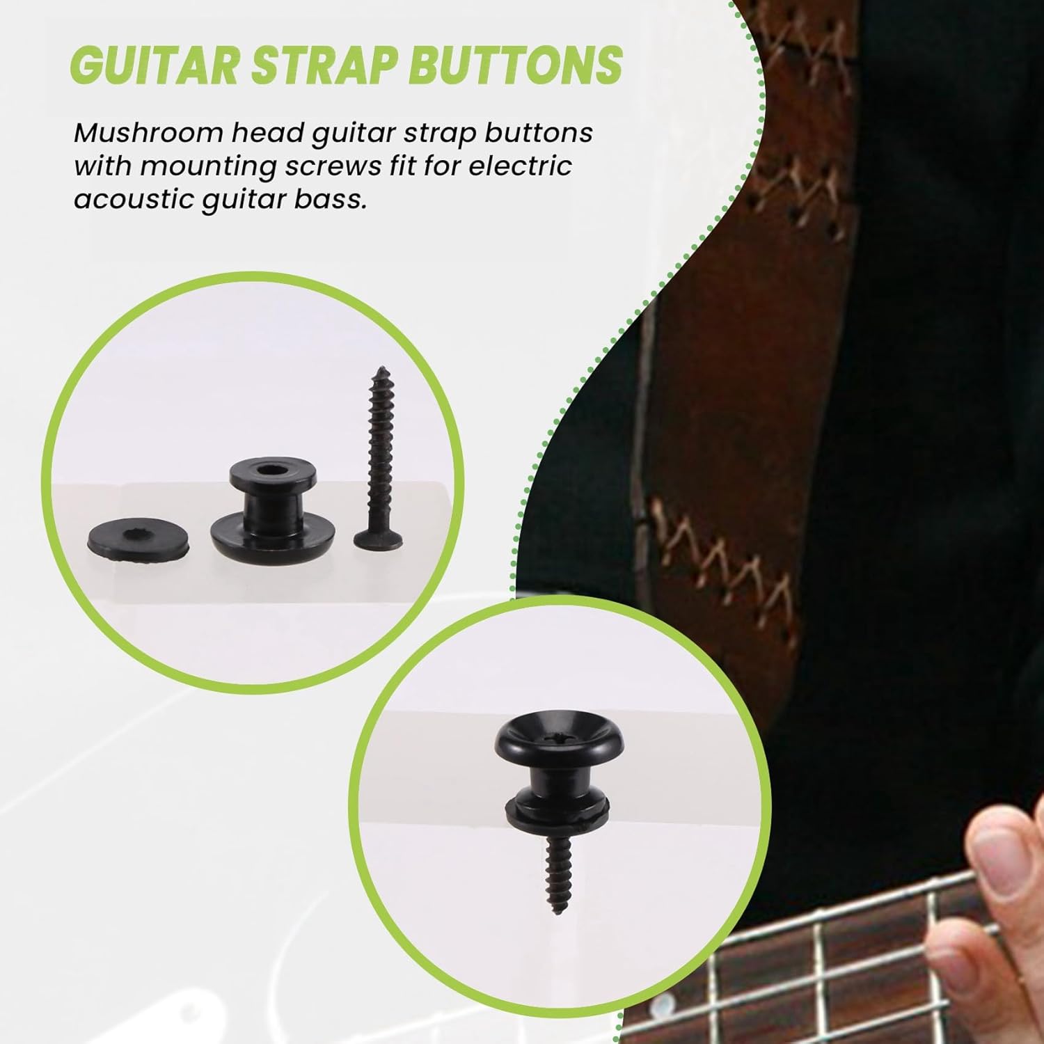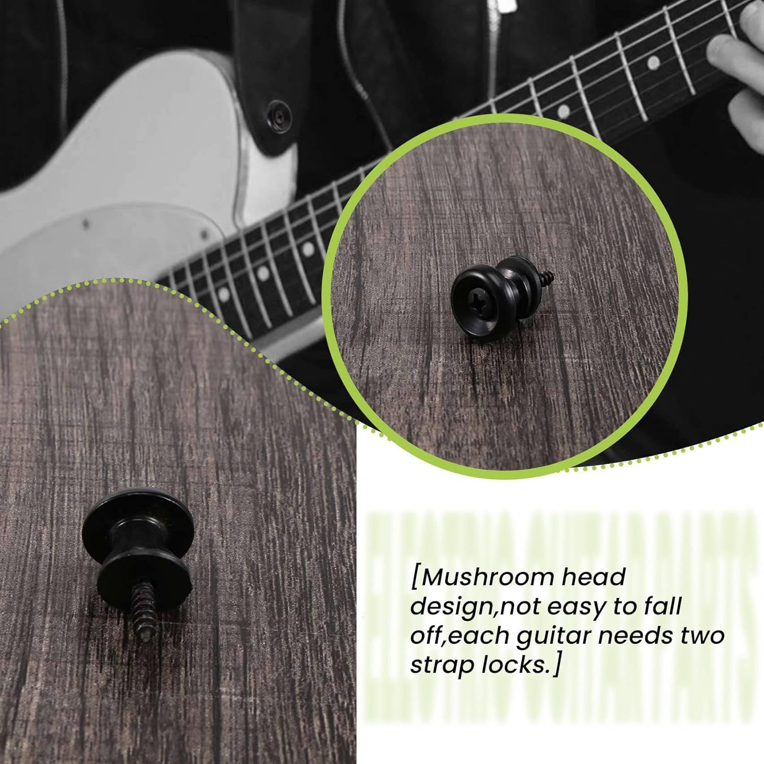Pulsanti per chitarra in metallo di alta qualità adatti per basso elettrico chitarra acustica. Pulsanti per cinturini per chitarra con testa a con di montaggio per basso elettrico per chitarra acustica. Design della testa a , non facile da staccare, ogni chitarra ha bisogno di due chiusure a strappo. Facile da installare, da usare.