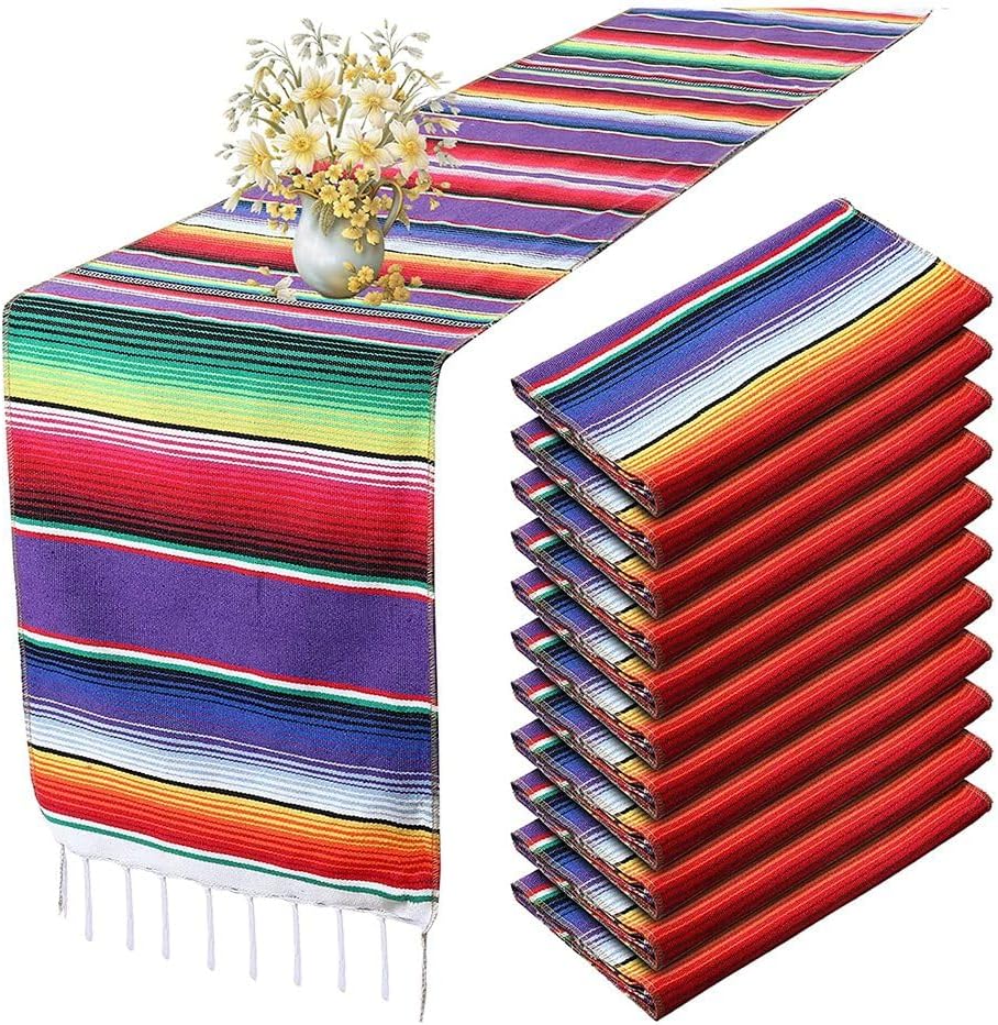 2 Runner da Tavolo Messicani in Cotone con Frange 14 X 108 Pollici per Decorazioni di Nozze per Feste Messicane Tavolo da Pranzo per Picnic All'Aperto