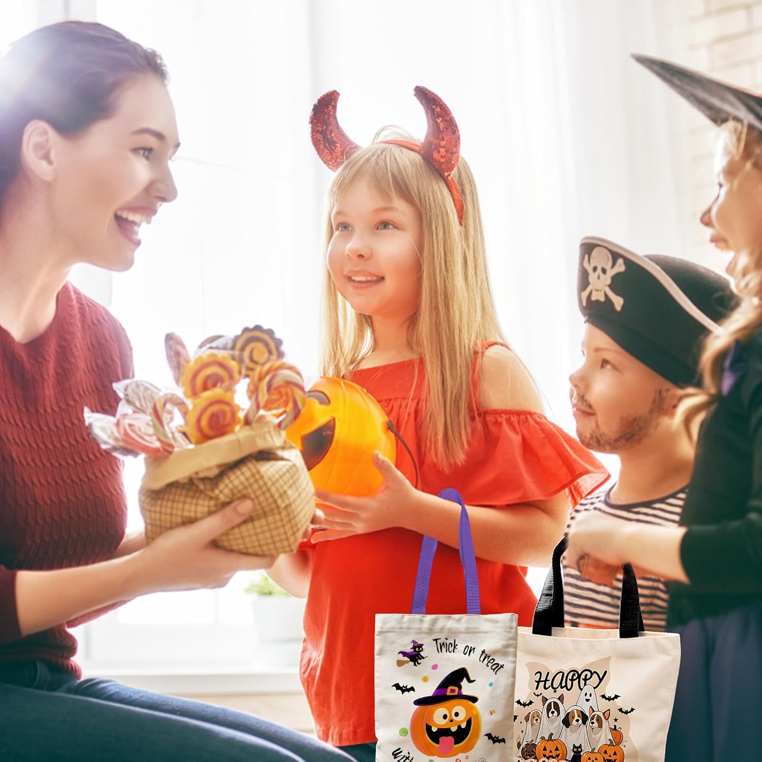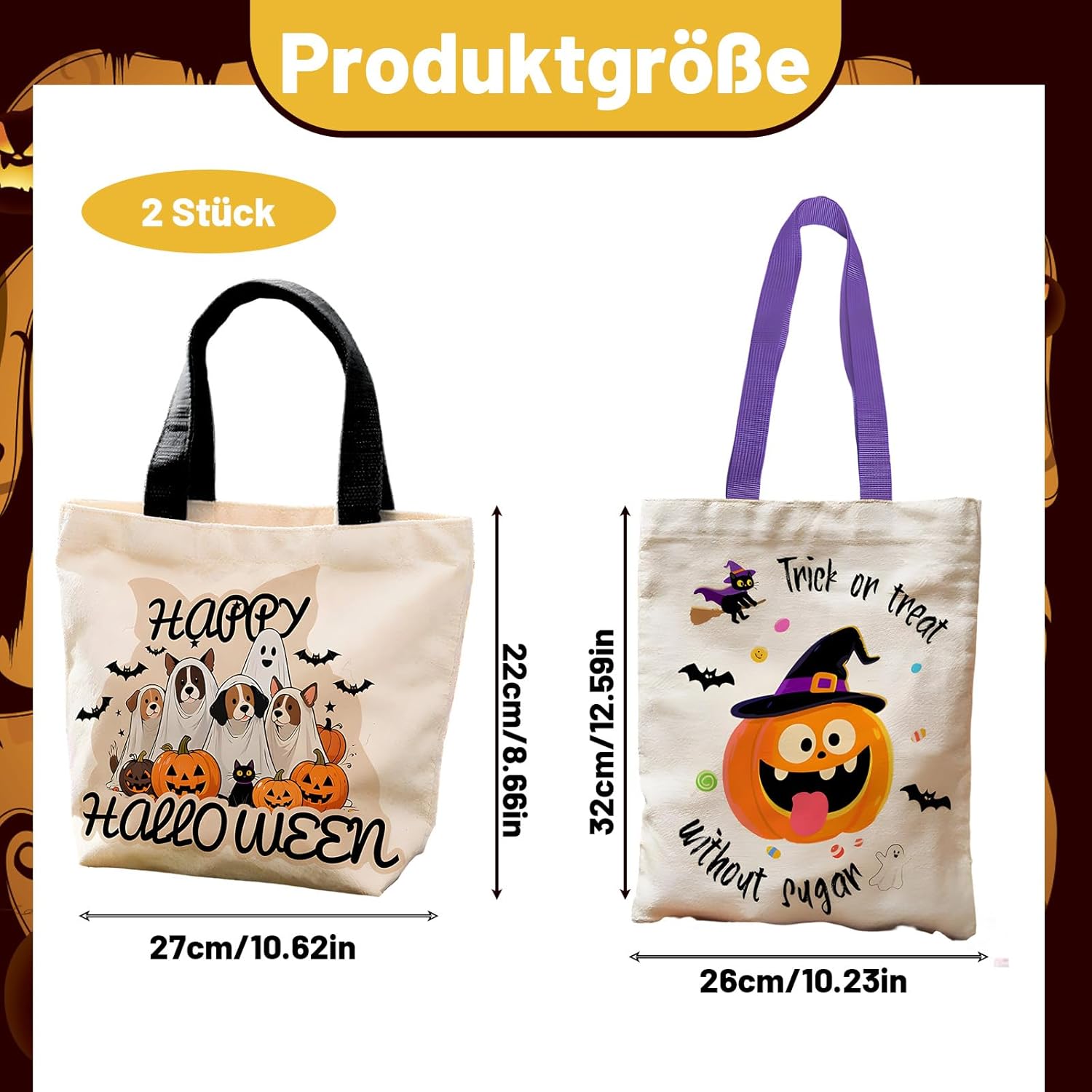 Sacchetti di caramelle di Halloween: ideali per dolcetto o scherzetto e feste di Halloween, questi sacchetti sono perfetti per bambini dai 3 ai 12 anni e possono essere utilizzati per caramelle, snack e piccoli regali. Borsa regalo per varie occasioni: oltre ad Halloween, queste borse sono adatte anche per le attività in classe e per conservare gli spuntini quotidiani. La robusta qualità del materiale garantisce una lunga durata. Sacchetti di caramelle dalle molteplici possibilità di utilizzo: i sacchetti non sono adatti solo per Halloween, ma anche per altre feste e per l'uso quotidiano. Il design è accattivante e adatto ai bambini. Facile da usare e sicuro: le borse sono facili da trasportare e sicure per i bambini, il materiale è durevole e non tossico, soddisfa gli standard di sicurezza dell'UE. Gioia emotiva per i bambini: questi sacchetti di caramelle di Halloween portano gioia ed eccitazione ai bambini durante la stagione di Halloween, sono un'aggiunta perfetta a qualsiasi attività di Halloween.