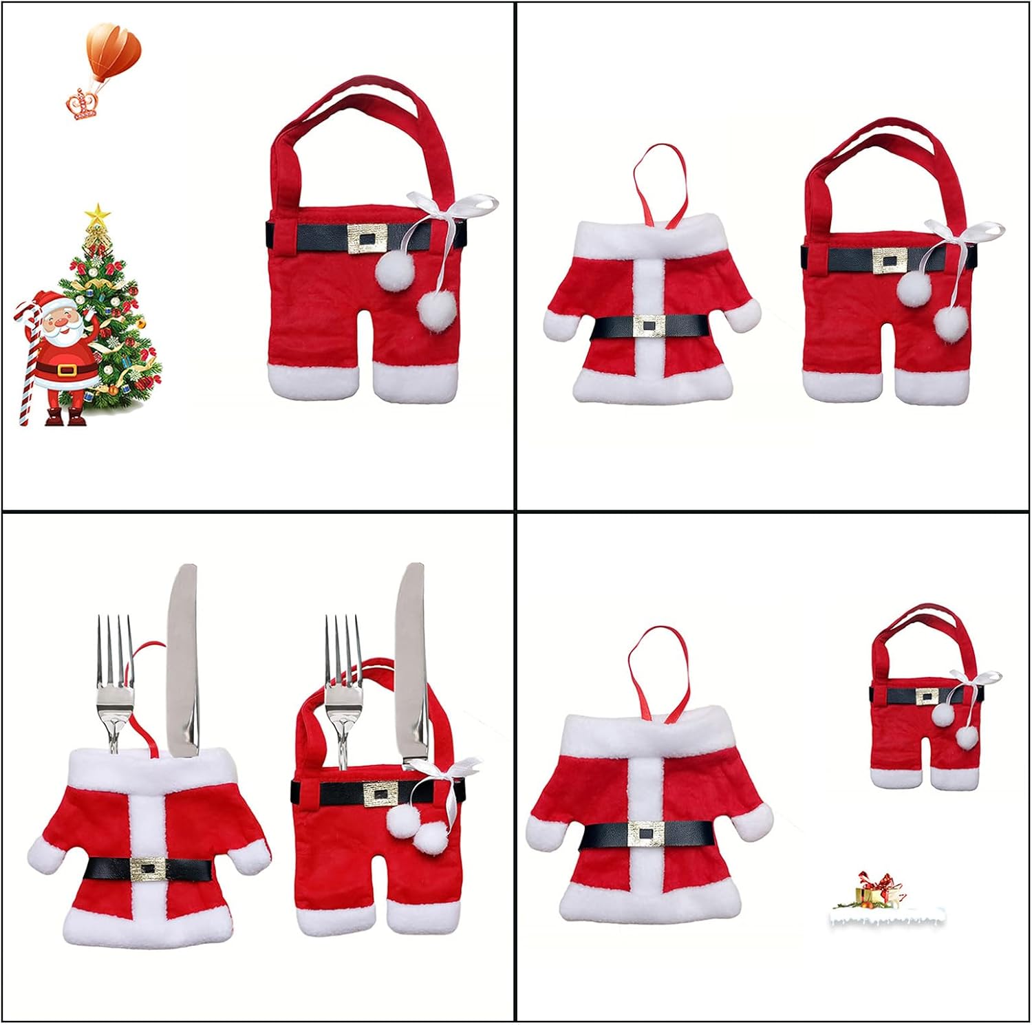Trasforma la cena ordinaria in una festa festiva con questi portaposate, rendendo ogni pasto speciale durante le festività natalizie Adatto per casalinghe, proprietari di ristoranti e individui appassionati di decorazioni natalizie, questo prodotto si rivolge a chiunque cerchi di elevare il proprio stile di vita Realizzati in tessuto non tessuto, questi supporti sono facili da pulire e presentano un motivo natalizio creativo che ospita posate di varie dimensioni Migliora la tua cena di Natale con i nostri portaposate natalizi per vestiti e pantaloni, progettati per aggiungere un tocco festivo alla tua tavola pur essendo pratico e decorativo Perfettamente adatti per riunioni di famiglia di Natale, feste di fine anno aziendale, eventi a tema e allestimenti per vacanze al ristorante, questi portaposate portano un'atmosfera felice in ogni occasione