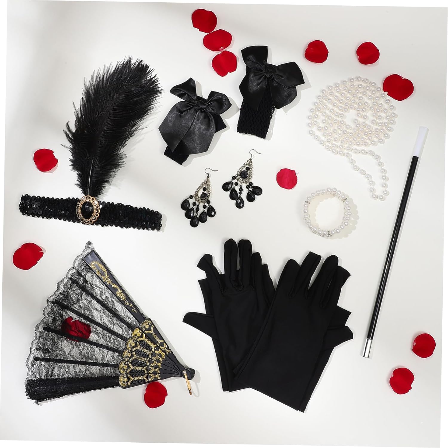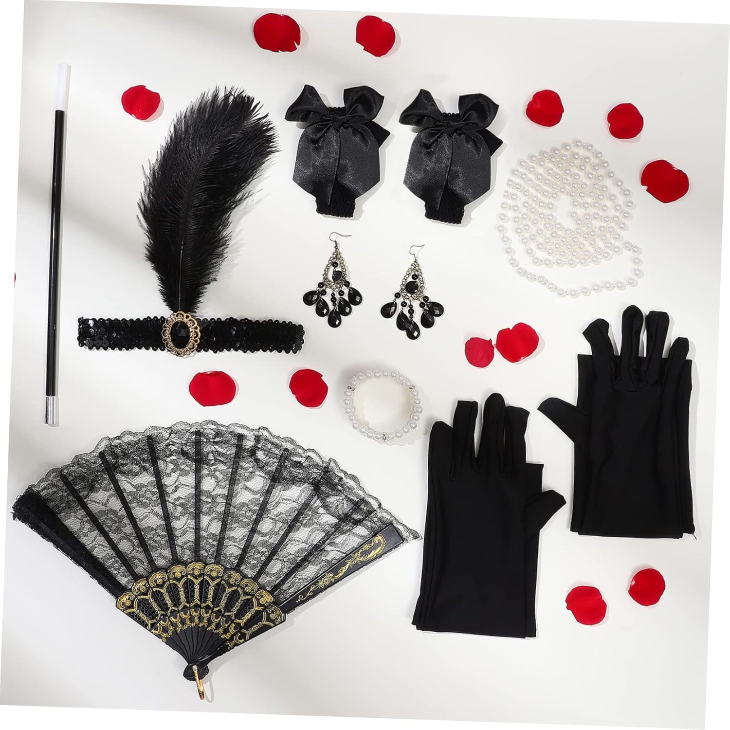1920: ampia applicazione: Adatto per molti tipi di occasioni, come Tea Party, cocktail party, festa a tema degli anni '20, matrimonio e altro ancora. Piatto di pizzo :: questo set elegante è ottimo per tua madre, sorella, fidanzata, amica, aiutandoli a tornare agli anni '20! Orecchini penzolanti: ampiamente: puoi indossare il set in molte occasioni come la festa a tema degli anni '20, il tea party, la festa vintage, il cocktail party, Halloween e tutte le altre occasioni vintage. Orecchini in pietra gemma: guanti di raso: i guanti di raso sono realizzati in tessuto, morbidi ed elastici, lisci come seta e sono adatti per feste serali. Bracciale Prom :: Anche una scelta squisita per la tua ragazza, retrò, per favore non esitare più!