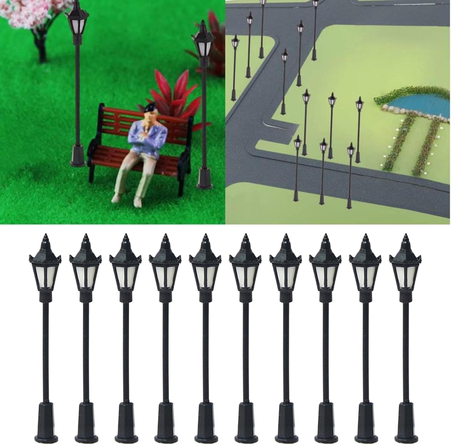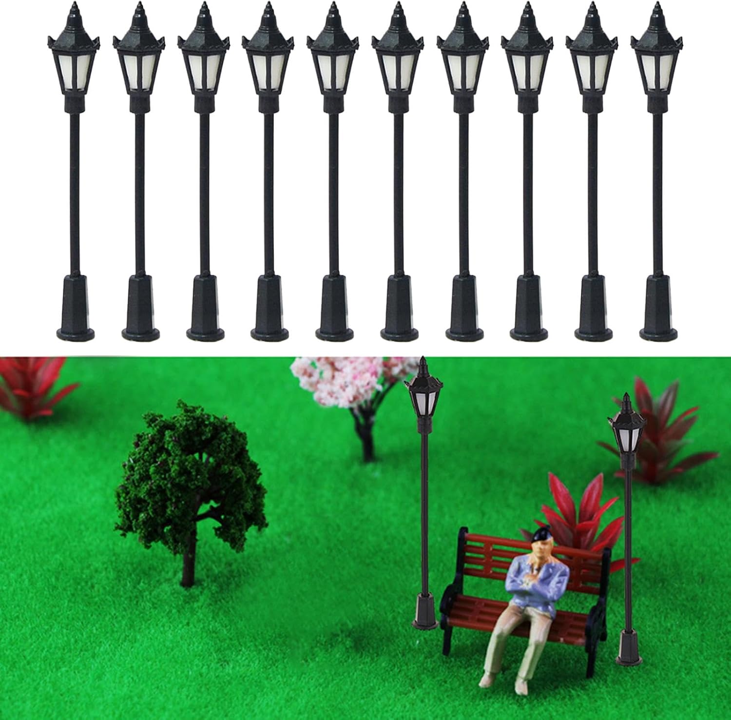 [Modelli decorativi]: modello di costruzione di tavoli di sabbia, adatto per tavolo di sabbia, decorazione da giardino e paesaggio, ecc. [materiale durevole]: modello ferroviario ferroviario luci stradali realizzate in materiale leggero, resistente e alla moda. [pacchetto]: 10 pezzi modello di lampioni stradali in miniatura, modello di treno lampioni, lampioni da giardino in miniatura. [Lampade modello]: 1/100 kit di lampade modello miniatura, ideale per la decorazione di edifici modelli. [ampia applicazione]: modello di luce paesaggistica per decorazione casa delle bambole/accessori architettonici modello tavolo sabbia/sfondo decorazione giardino/intrattenimento per il tempo libero/materiali modello di scena/sfondo micro paesaggio/materiale bottiglia fai da te/parco/ornamenti modello treno.