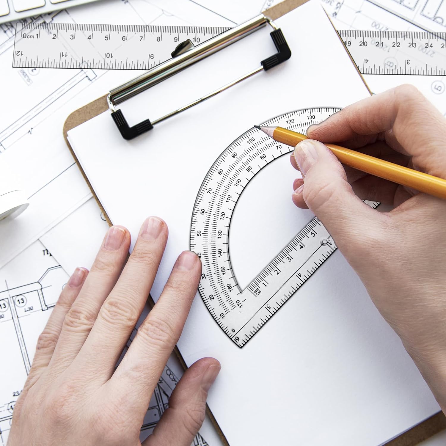 Soddisfa le tue esigenze: riceverai 1 righello in plastica e 1 goniometro in plastica trasparente; possono essere utilizzati per misurare la lunghezza e il grado dell'angolo, in grado di soddisfare le tue esigenze quotidiane e di studio Dimensioni adeguate da trasportare: la lunghezza del righello standard è di circa 30,7 x 3 cm, la lunghezza del goniometro è di circa 15 cm, l'altezza è di circa 8,5 cm. La dimensione è appropriata, facile da trasportare e si può mettere nella scatola di cancelleria o nella borsa Materiale affidabile per te: il set di goniometri è realizzato in plastica trasparente in PVC affidabile, robusto e stabile, non facile da deformare o rompere, porta comodità al tuo studio e lavoro Design trasparente: il design trasparente del set di geometria consente di vedere chiaramente le scale quando le si utilizza, e sono dotati di una doppia scala di scale in pollici e scale centimetriche, adatte per la maggior parte delle persone da utilizzare Ampia gamma di applicazioni: il set di misurazione del righello e goniometro può essere applicato non solo in aule, scuole, uffici, ma anche come un buon strumento di misurazione per studenti, insegnanti, architetti, ingegneri, ecc.