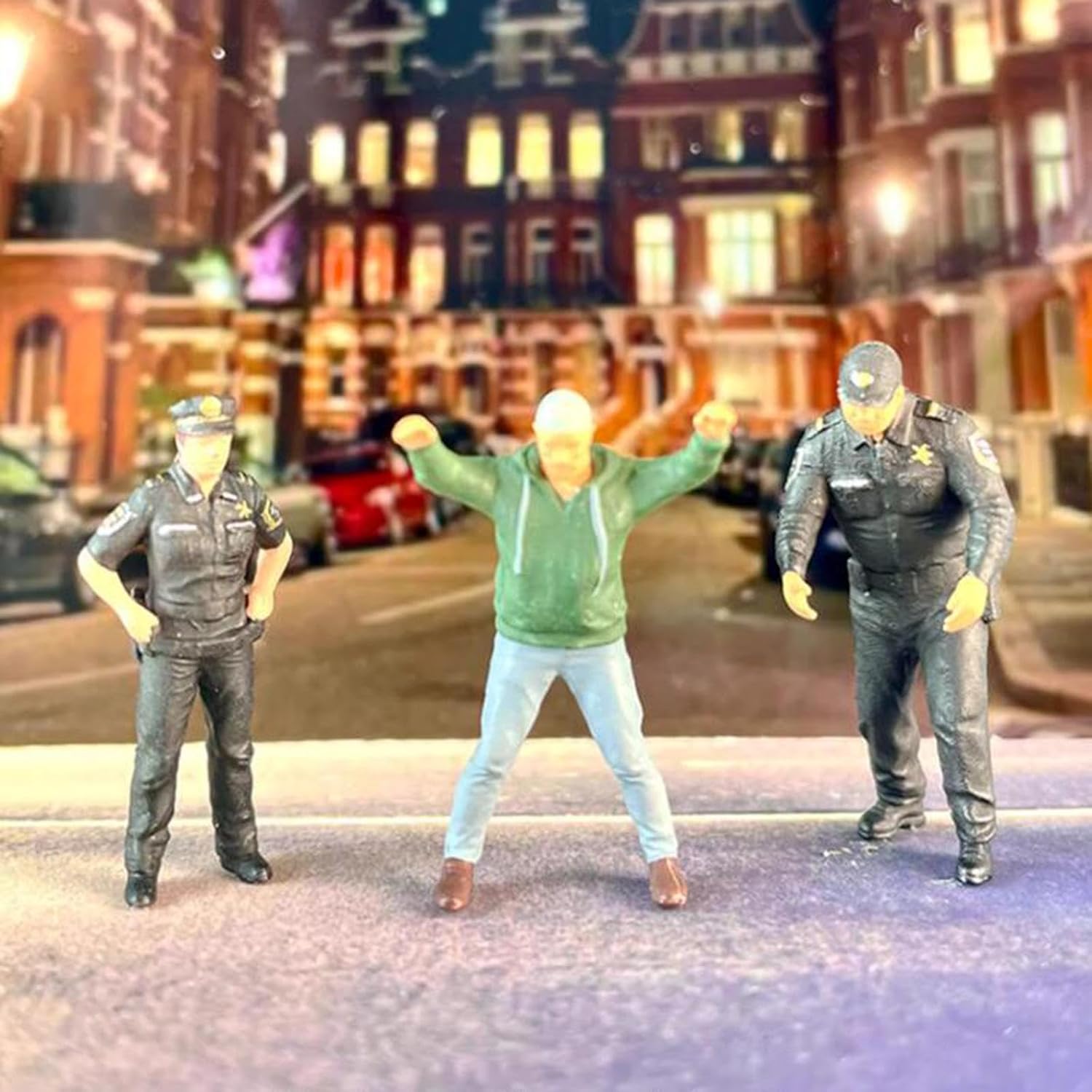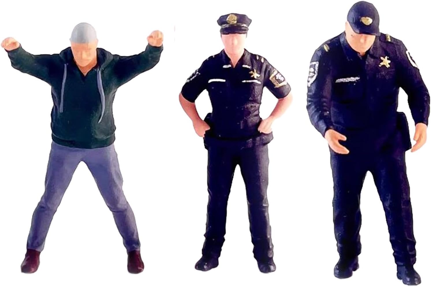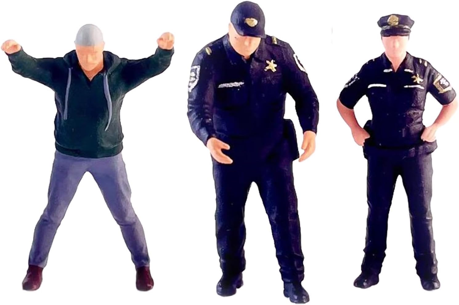 Materiale durevole: modello di figurine di piccole persone in scala 1:64, realizzato in resina, durevole. [Usi]: figura in miniatura modello di persone ideale per visualizzazione, oggetti di scena in miniatura, decorazioni per scene in scala 1:64. [simulazione]: poliziotti e ladro figura modello rendono la scena più realistica. I poliziotti diorami e ladro figura modello scena del design del modello. [pregevole fattura]: statuette in miniatura di poliziotti e ladri, con alta precisione e lavorazione. Le piccole figure sono più fragili, non cadono da un'altezza, prendono delicatamente e proteggono. [ampiamente applicabile]: modello di figura di poliziotti e ladri adatto per layout diorama 1:64, layout di scena in miniatura, decorazione da tavolo di sabbia, decorazione per casa delle bambole in miniatura, modello di scena fai da te, ecc.