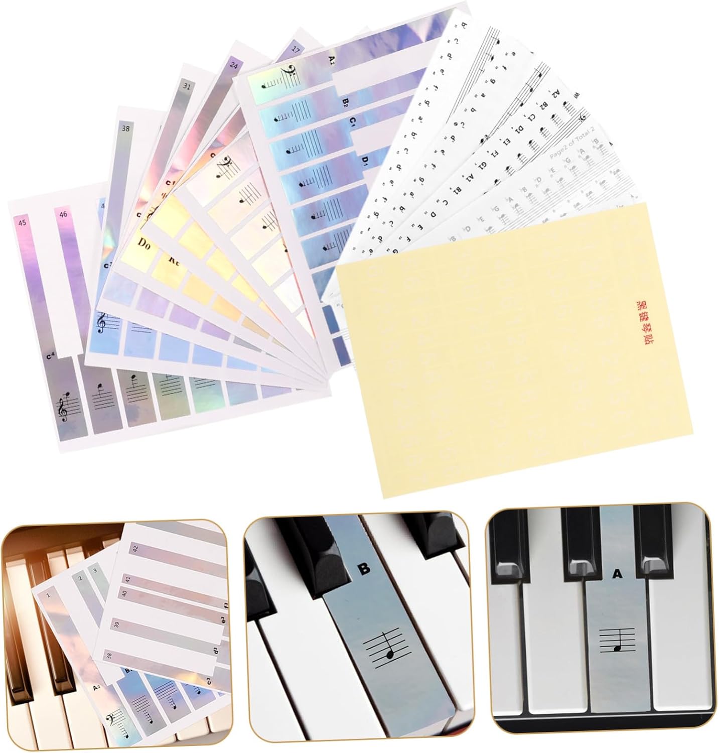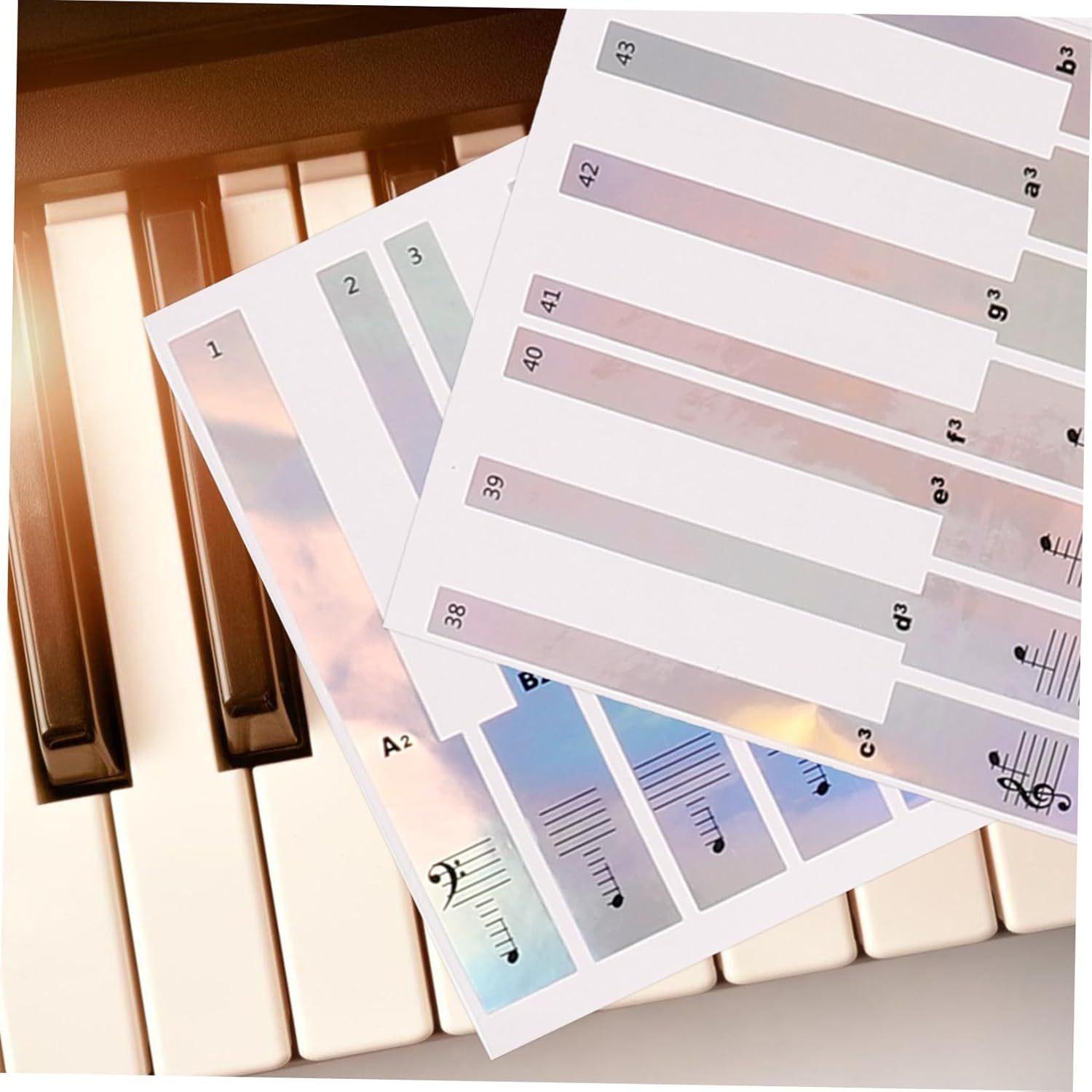 Adesivi per spartiti tasti di pianoforte - Non rimarranno residui appiccicosi dopo aver rimosso gli adesivi dal pianoforte o adesivi per tastiera Strisce per etichette per tastiera di pianoforte - gli adesivi per pianoforte sono realizzati in materiale buono e sicuro, sicuro e durevole e possono essere utilizzati a lungo, Etichette adesive per tastiera di pianoforte per pianoforte - l'adesivo è trasparente e sottile, facile da applicare, la pellicola non sbiadisce né lascia segni appiccicosi quando viene strappata, Adesivi per note rimovibili per tastiera di pianoforte Adesivi per note di pianoforte - Questo adesivo per tastiera di pianoforte è facile da applicare e può essere facilmente rimosso senza lasciare residui. Adesivo autoadesivo per tastiera di pianoforte Adesivi rimovibili per pianoforte - Il design pratico rende la striscia della tastiera di pianoforte adatta per organi elettronici, il che è molto comodo perché è possibile utilizzare adesivi musicali rimovibili per tastiera di pianoforte