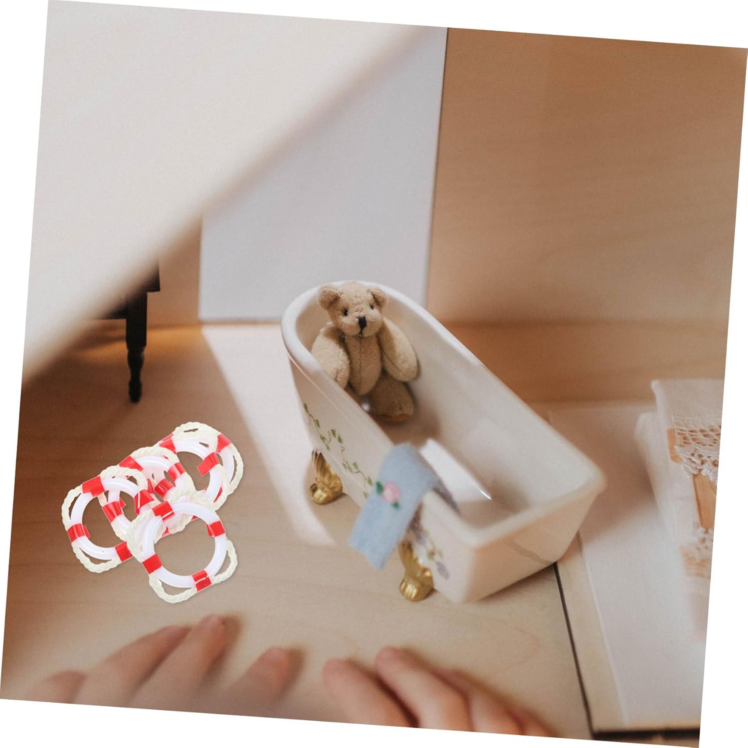 Ornamento della casa in miniatura: è una decorazione di aggiunte al bar, al muro, alla piscina e alla tua casa, ornamenti in stile mediterraneo Decori in stile mediterraneo: realizzati, per uso duraturo, meraviglioso ornamento per la tua scena, ornamenti per anelli di vita Anelli di nuoto: grazia decorazioni per patio, tavolo, scrivanie o qualsiasi progetto di paesaggio fai -da -te, delicati e squisiti decorazioni per feste di squalo Modelli di boa di casa in miniatura: il design è conciso e alla moda, il è diverso e bello, il dettaglio è squisito e realistico e nautico Anelli di vita : può essere usato come proprizzo fotografico, accessorio per la decorazione della casa in miniatura, è molto divertente, ornamenti ad anello di boa