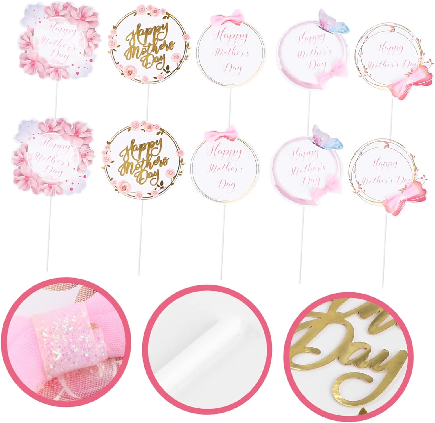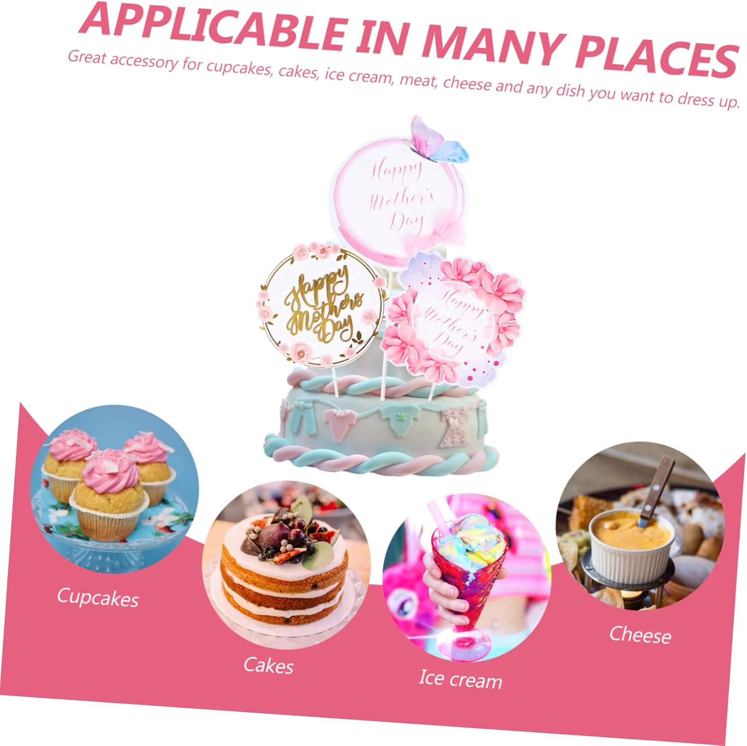 Decorazione per pasticceria per la festa della mamma: può essere utilizzata per muffin, torte, cupcake, ecc. come bomboniere per la festa della mamma. Carta madre: adatta per decorazioni da forno a tema Festa della mamma, decorazioni per torte, articoli per feste. Spiedini di torta al cioccolato - Il set contiene 10 pezzi, grandi per soddisfare le tue esigenze di decorazione, decorazioni per torte per feste. Plettri per cupcake personalizzati: presentano una forma e un aspetto caldo che è una decorazione accattivante per celebrare la festa della mamma e rendere la tua torta speciale e unica, forniture per la festa della mamma. Decorazione per la festa della mamma: questo topper per torta è realizzato in materiale cartaceo di alta qualità, sicuro da usare, decorazione femminile.