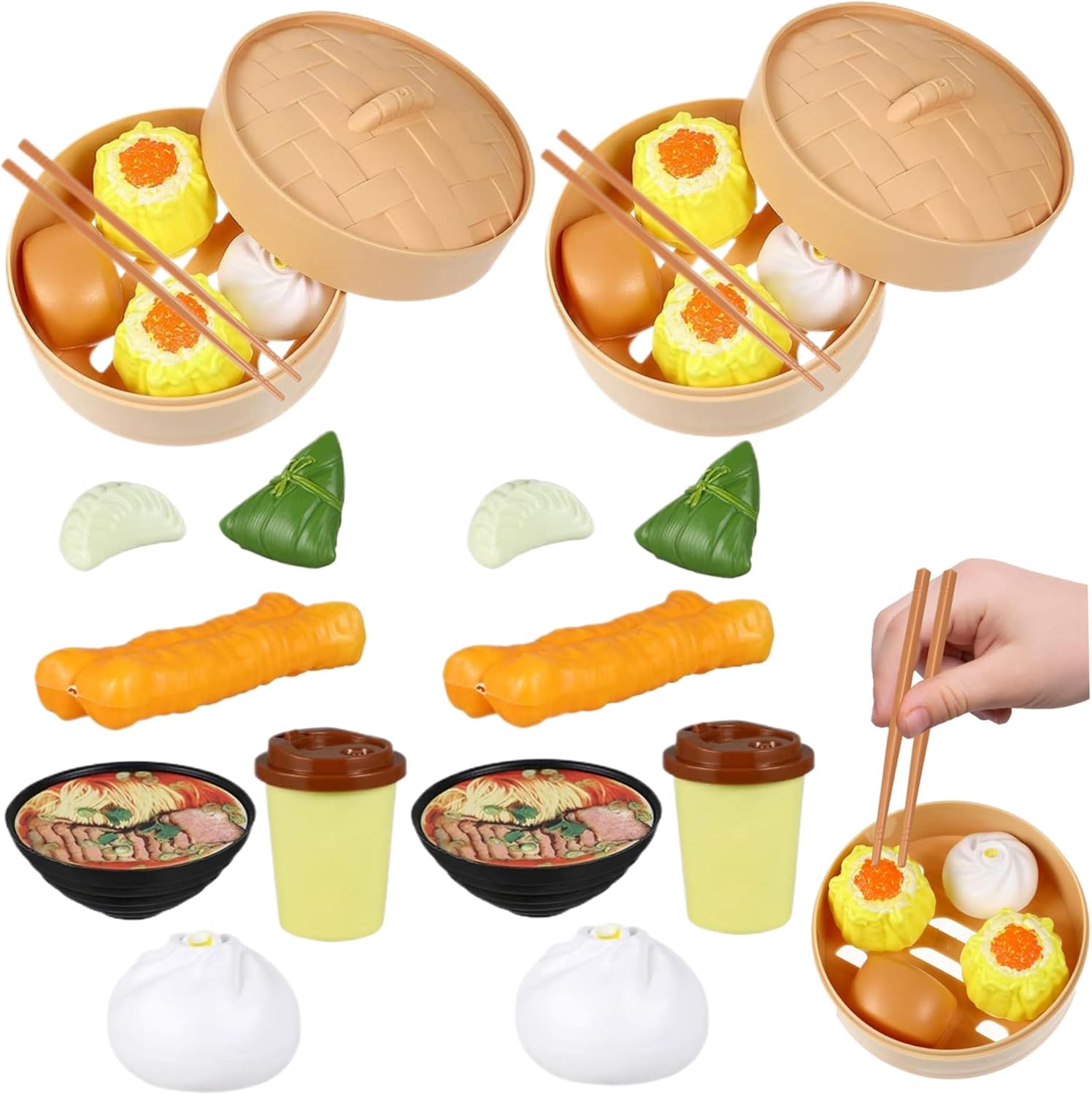 Autentica esperienza Dim Sum: i nostri giocattoli alimentari per bambini includono due set di dim sum cinesi in plastica, offrendo un'autentica esperienza di colazione per i piccoli chef..Questi giocattoli realistici stimolano l'immaginazione e promuovono l'apprezzamento culturale attraverso il gioco divertente e finto. Design realistico per un gioco coinvolgente: ogni pezzo è realizzato in plastica che imita realisticamente l'aspetto di deliziosi oggetti dim sum..I colori vivaci e i dettagli intricati migliorano le esperienze di gioco dei bambini, incoraggiando un'esplorazione più profonda della cucina e dei temi culinari. Ideali per i giovani chef: che tratti di compleanni, vacanze o di una divertente sorpresa, questi realistici giocattoli cinesi per la colazione sono perfetti per gli aspiranti piccoli chef..Ispira la creatività e il gioco interattivo con questo delizioso set che incoraggia l'esplorazione culinaria! Perfetto per fare finta di giocare: questi giocattoli dim sum sono ideali per fare finta di fare colazione, consentendo ai bambini di servire, condividere e creare le proprie avventure culinarie..I bambini possono sviluppare abilità sociali e creatività mentre imitano la cucina e servono il cibo ad amici e familiari. Materiali affidabili e sicuri: realizzati in plastica atossica e priva di BPA, questi giocattoli alimentari sono sicuri da maneggiare per i bambini piccoli..I genitori possono stare tranquilli sapendo che il tempo di gioco è divertente e sicuro e allo stesso tempo incoraggia il gioco fantasioso.