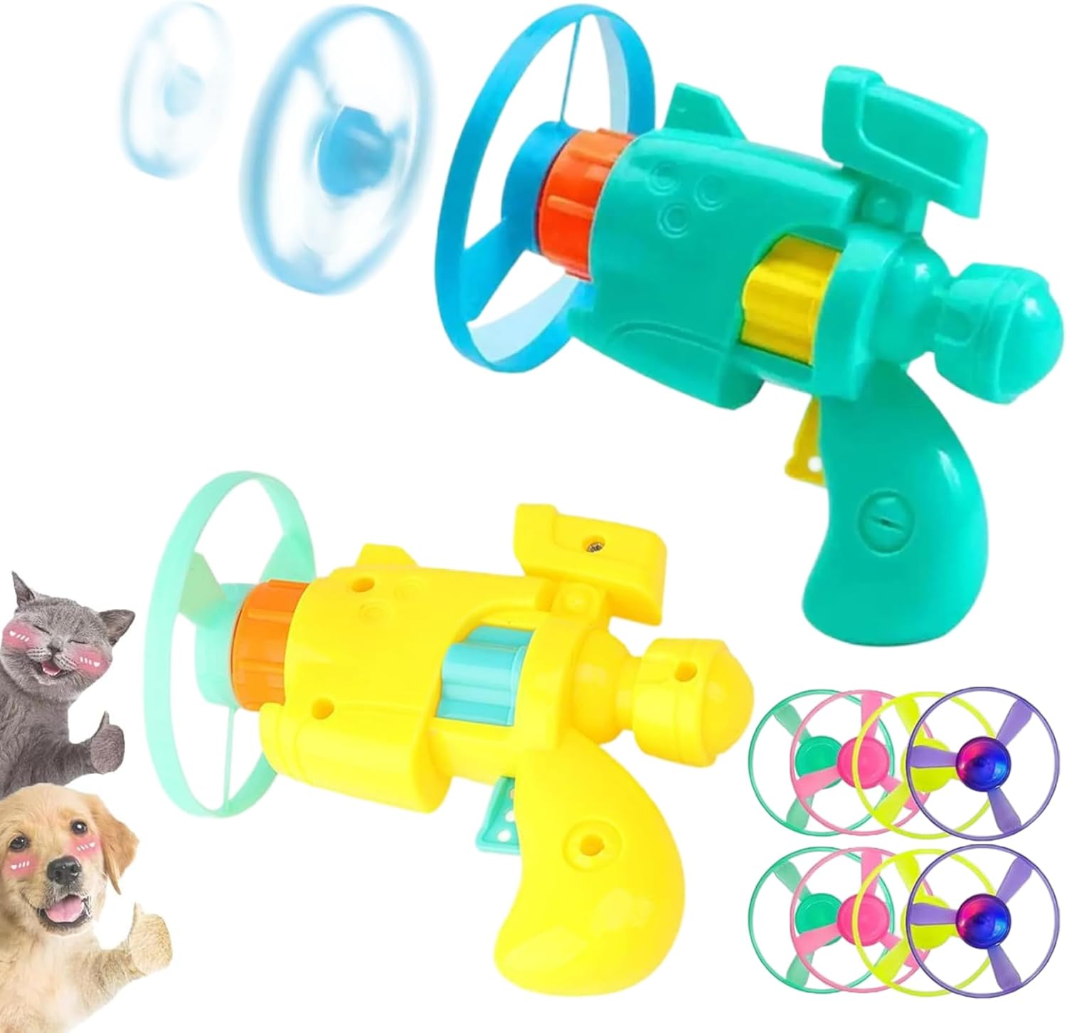 Divertimento interattivo di gioco: accentuare l'istinto di caccia naturale del tuo gattino con il giocattolo di lanciatore di disco volanti, fornendo infinite intrattenimento e attività fisica che mantiene il tuo amico peloso agile e felice. Flying Disc Launcher Toying Cat Gat Toy Eliche colorate accattivanti: equipaggiate con eliche vibranti e colorate che si illuminano durante il volo, questi giocattoli accompagnano l'attenzione del tuo gattino e incoraggiano a inseguire e ballare attivi..Pistola giocattolo giocattolo gatto volante Design sicuro e portatile: leggero e facili da trasportare, questi giocattoli per gatti volanti sono realizzati con materiali per la sicurezza degli animali domestici, garantendo il gioco senza preoccupazioni per i tuoi gattini sia al chiuso che in viaggio..Giocatto Pun di lancio di facile utilizzo: la pistola giocattolo di gatto ergonomico lancia dischi volanti senza intoppi e accuratamente, rendendo il gioco interattivo semplice e divertente sia per i proprietari che per i proprietari e per i gattini..Giocattoli gatti giocattoli Set di gattini perfetto: include 2 giocattoli per il lanciatore a disco volante, ideali per più animali domestici o condivisione con gli amici, fornendo ore di gioco gioioso e rafforzando il tra te e il tuo gattino..Giocattoli da gattino