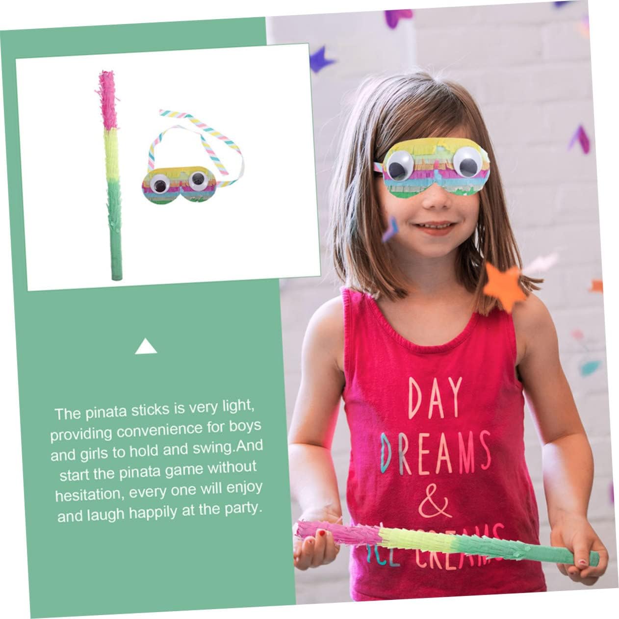 Giocattoli per feste per: bastoncini di piñata abbastanza colorati, possono essere utilizzati nei giochi di piñata e come accessori per giochi di società. Bastoncini Piñata: molto adatti per feste, feste di compleanno e festival o celebrazioni, oggetti di scena. Regali per feste: questi bastoncini da piñata e i bicchieri da piñata per i giochi della piñata sono apprezzati da ragazzi e ragazze, i ragazzi si divertiranno, bastoncini da piñata per feste di compleanno Sensoriali per: il bastoncino da piñata e i bicchieri da piñata sono fatti di carta che non è né troppo leggera né troppo pesante, dimensione perfetta per molte età, bastoncino da piñata per ragazzi Bastoncino da piñata multicolore: design divertenti e accattivanti sono meravigliosi per tutte le età e portano gioia alla tua festa, come la festa di compleanno, per ragazzi