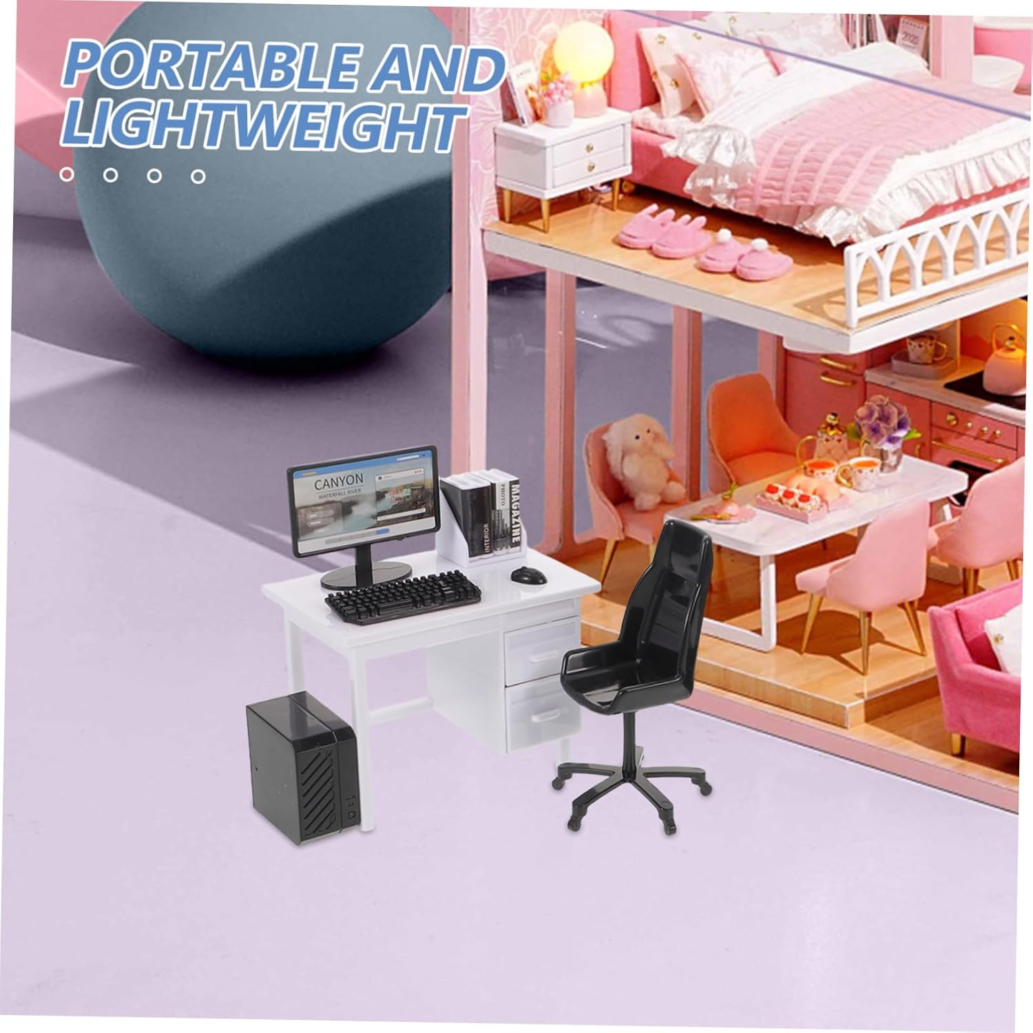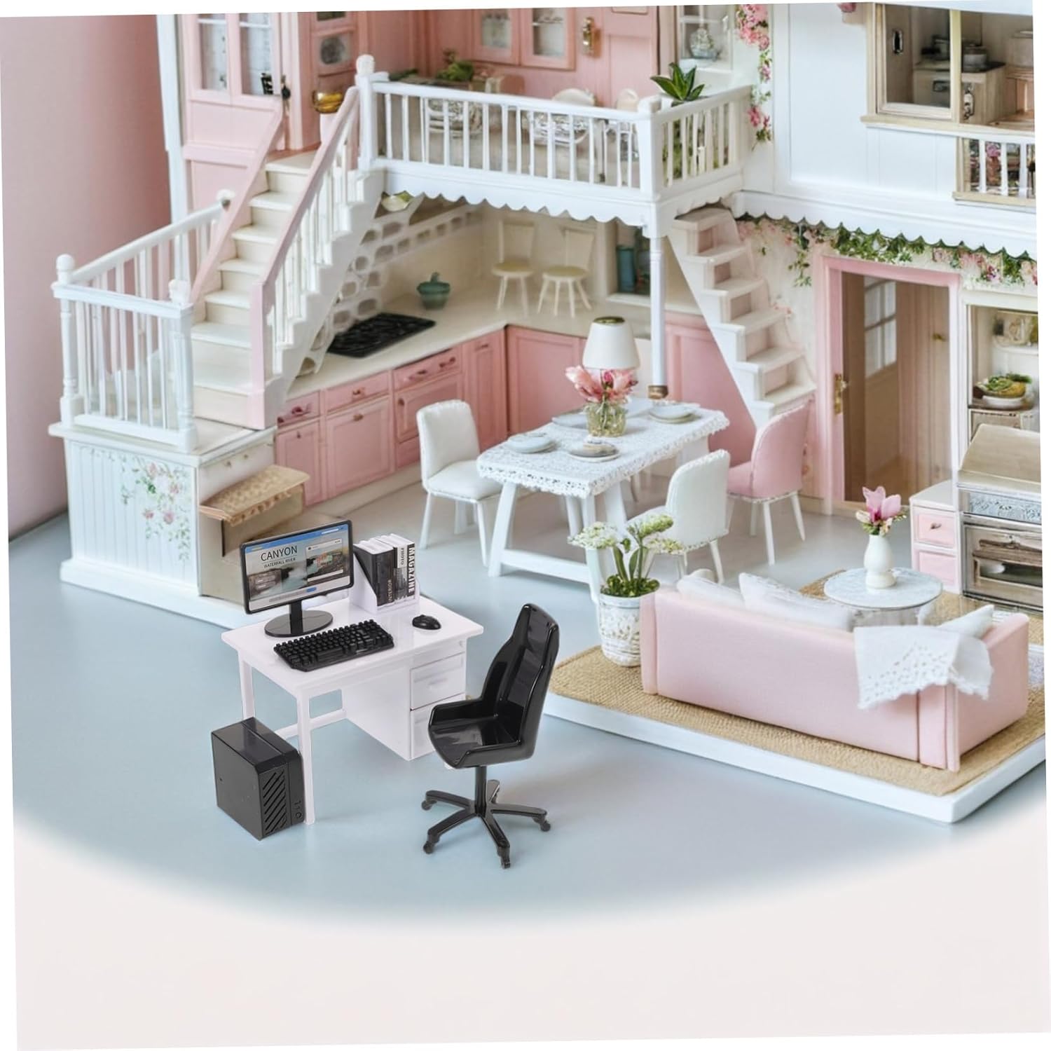 Gioco di ruolo migliorato: l'allestimento realistico dell'ufficio consente ai bambini di esplorare diversi ruoli, migliorando le loro capacità sociali e cognitive, sedia per giochi di ruolo, accessori da scrivania per la casa delle bambole Affascinante opzione di decorazione: questo set funge da adorabile pezzo decorativo e aggiunge carattere a qualsiasi stanza o casa delle bambole, tastiera in miniatura, piccolo accessorio per computer Uso versatile: ideale per giochi di ruolo, come decorazione domestica o come oggetto da collezione, aggiunge carattere a vari scenari fascino e funzionalità, tastiera mouse per casa delle bambole, computer in miniatura Autentica scena in miniatura: il set realistico di mobili per ufficio crea un ambiente realistico, perfetto per il gioco di ruolo e narrazione, tavolo per i mobili della casa delle bambole, tavolo per il computer della casa delle bambole Interattivo: i set sono ideali per favorire la collaborazione, incoraggiare il lavoro di squadra e rafforzare il rapporto genitore-figlio. computer in miniatura per case delle bambole, piccola scrivania per computer