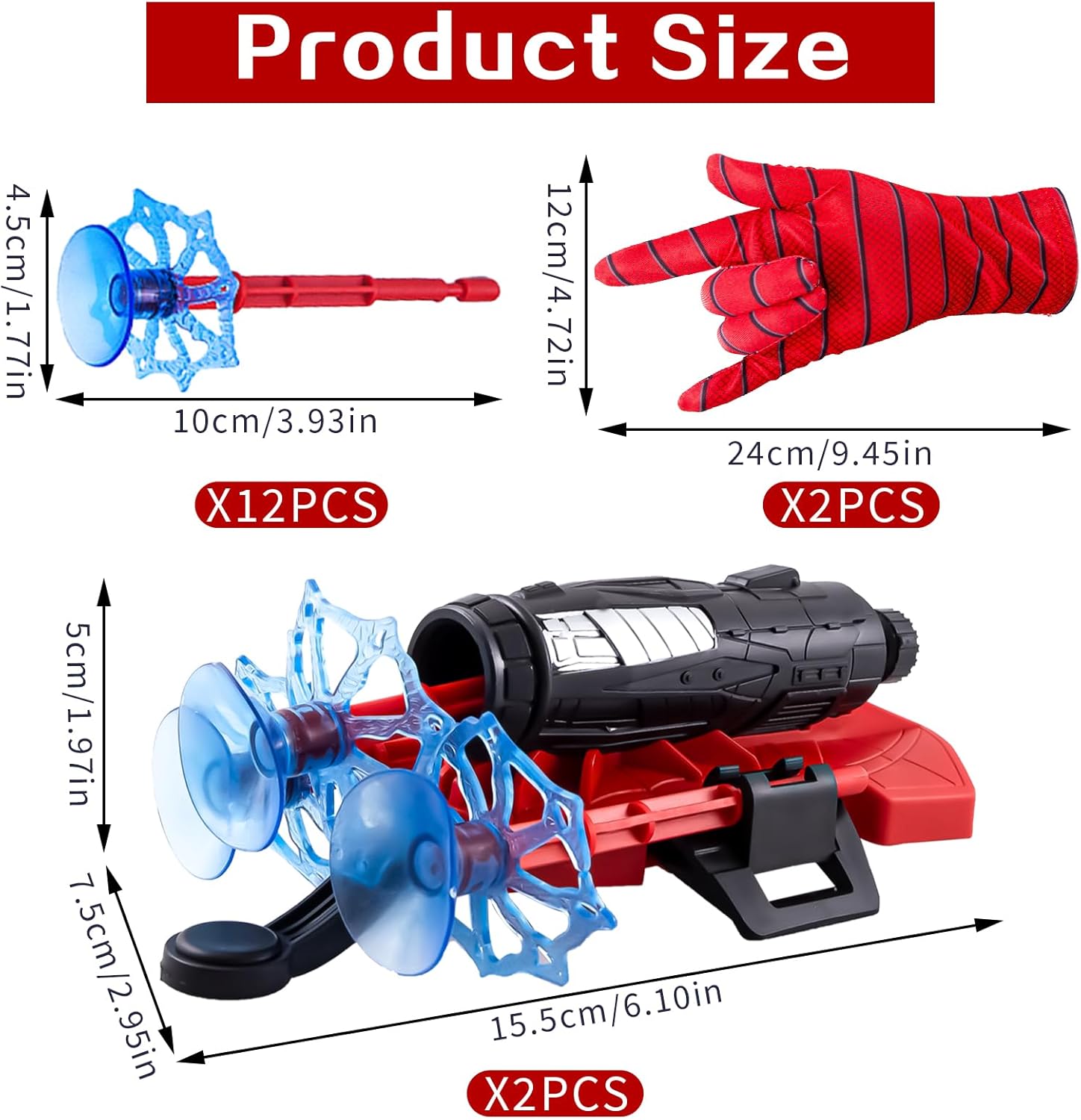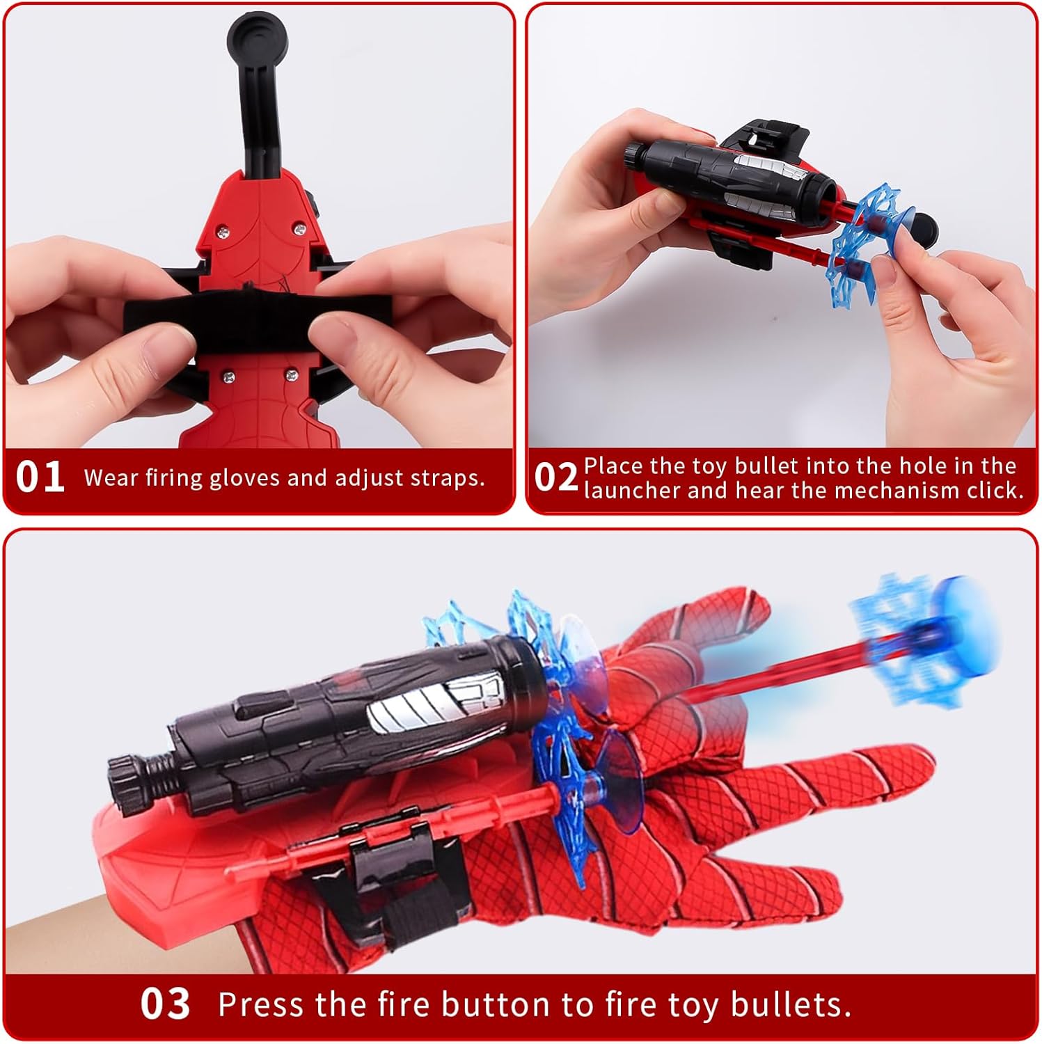 🕸【Spara Ragnatela】Il set di guanti ragno comprende 2 lanciatori, 2 guanti e 12 palline con ventose. Indossando questo spara-ragnatele puoi imitare l'eroe ragno del film, un must per gli appassionati di cinema. 🤟【Facile da usare】Il funzionamento del giocattolo del ragno è molto semplice. Dopo aver trasportato il lanciatore, inserisci la pallina nel foro del lanciatore e senti il clic del meccanismo. Quindi premi il pulsante di avvio ed è il momento di giocare. 🕷【Design Raffinato】Il design dello sparatutto della ragnatela è ispirato all'eroe ragno del film, quindi lo sparatutto della ragnatela utilizza la stessa combinazione di colori, che è molto bella e bella. Con i guanti da ragno ragnatela puoi imitare le scene dei film. 🎯【Materiali di alta qualità】Il lanciatore di ragni è realizzato in plastica di alta qualità, che non è facile da danneggiare e la portata può raggiungere i cinque metri. La testata sferica è realizzata in silicone, che può assorbire bene gli oggetti. 🎁【Regalo perfetto】Ogni bambino che ama gli eroi ragno adorerà questo regalo. Puoi regalare questo costume da ragno ai bambini durante feste di compleanno, feste a tema ragno, Halloween, carnevale e varie occasioni.