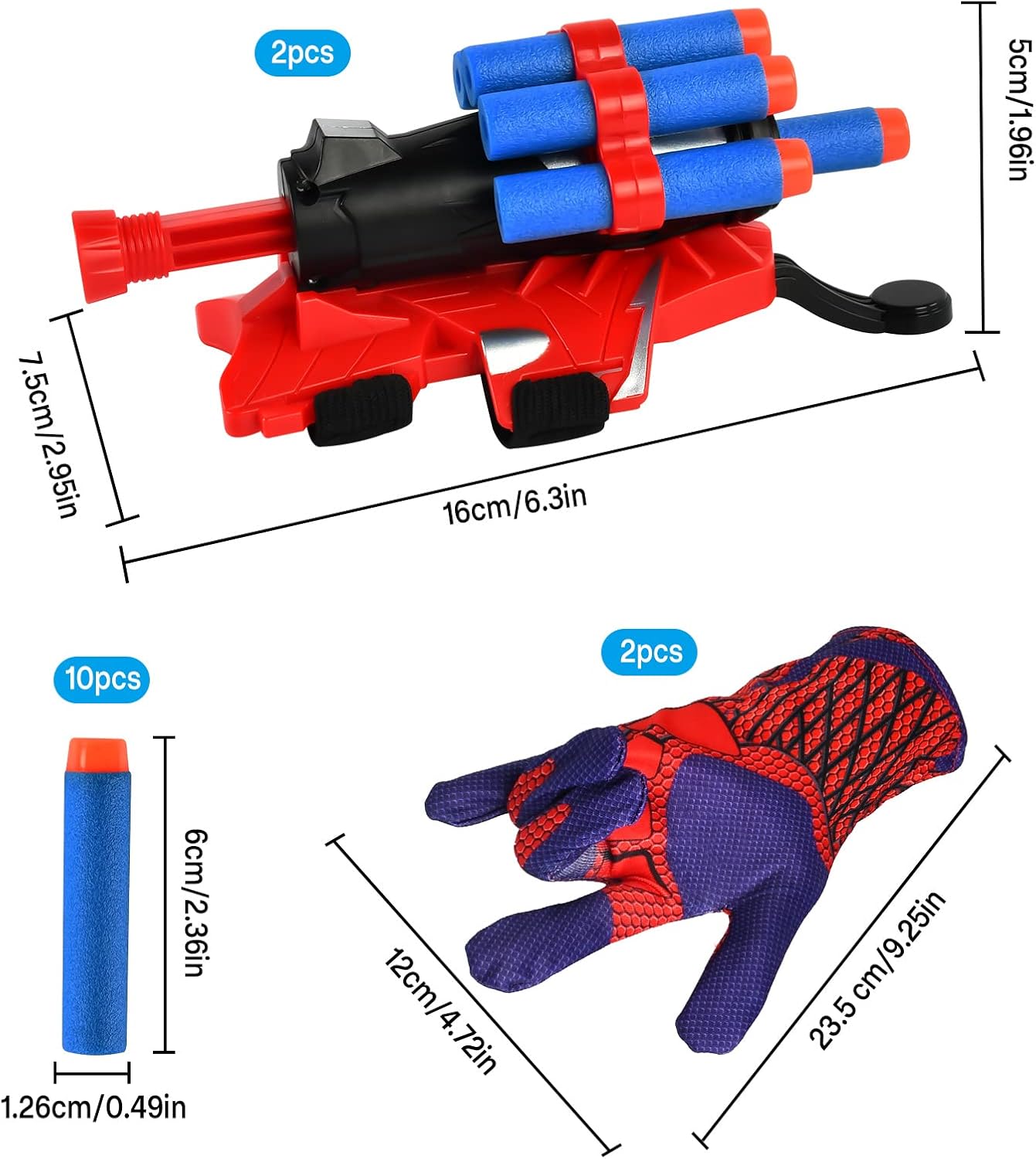 【Giocattoli da polso】Riceverete 2 hero launcher glove, 2 lanciatori di eroi e 10 dardi. Questo lancia eroi blu misura 16 x 7,5 x 5 cm ed è adatto alla maggior parte dei bambini di età inferiore ai 12 anni. 【Materiale di alta qualità】Il nostro lanciatore di eroi è realizzato in plastica di alta qualità, sicuro, non tossico e facile da usare. È possibile indossare un lanciatore per sparare freccette contro il pavimento, le pareti o il vetro, il che è molto divertente. 【Incoraggiali a imparare】Indossando i nostri guanti da cosplay e il lanciatore di eroi, i bambini possono imitare liberamente la scena in cui l'eroe lancia la seta di ragno nel film per salvare le persone. Il lanciatore di ragni offre ai bambini un mondo infantile fresco, li ispira ad ammirare gli eroi, a coltivare e stabilire una corretta visione del mondo. 【Comunicazione e interazione】Questo guanti giocattolo è una stretta connessione emotiva tra voi e il vostro bambino. È possibile giochi di ruolo da fare con il proprio figlio, migliorare l'interazione con i bambini, creare una buona atmosfera familiare e lasciare che i bambini crescano felicemente. 【Regalo ideale】Che sia Halloween, giorno dei bambini, compleanno, Natale o altri festival, i nostri supereroi giocattolo per bambini è il regalo ideale per il tuo bambino. Adatto per cosplay, halloween, feste di compleanno, feste a tema, feste cinematografiche, spettacoli teatrali, interazione quotidiana di gioco o altre occasioni.